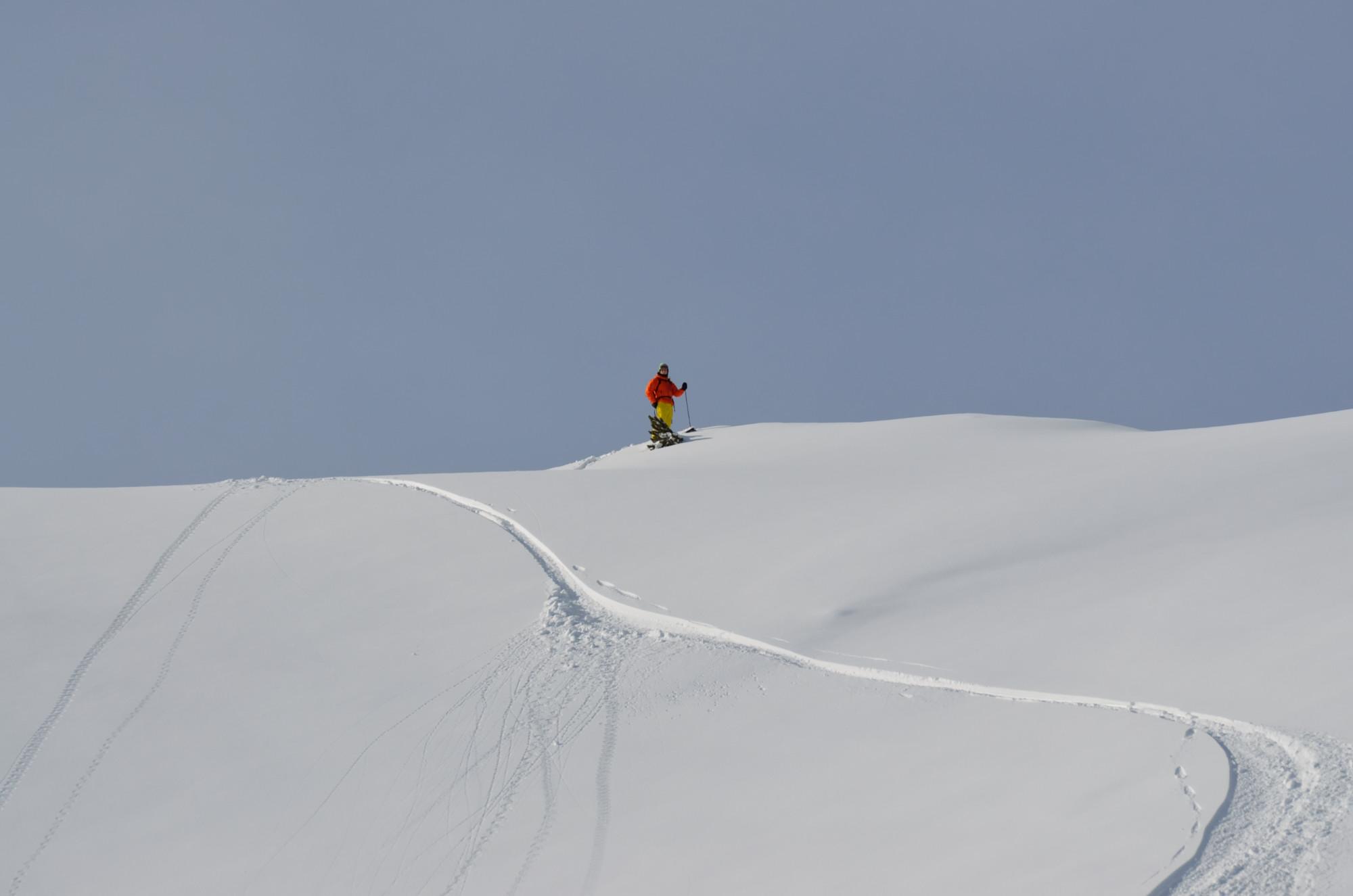 Die Lawinensituation war ziemlich entspannt, ca 20 - 30 cm Neuschnee der sich mit der darunterliegenden Schicht gut verbunden hat und ohne Windeinfluss gefallen ist.