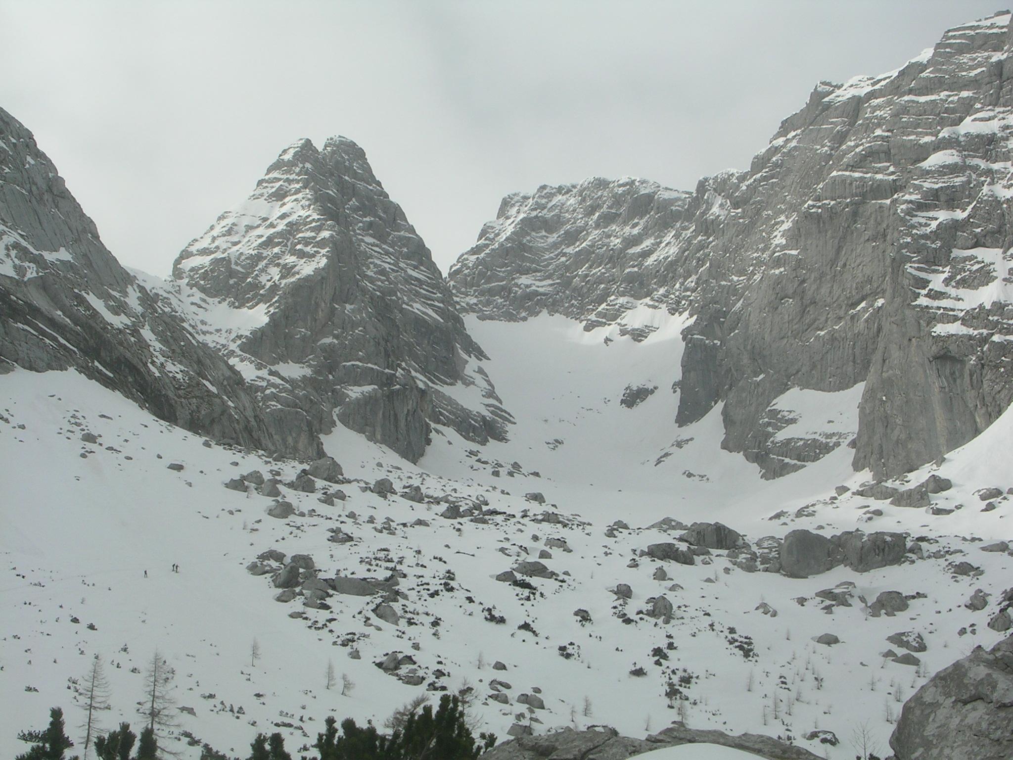 Der Bericht von Gerlinde Starck vom 30.3. motivierte mich zu einer Blaueis-Schitour, weil ich der Meinung war, dass in der Gegend so gut wie gar nichts anderes mehr geht. Zustieg mit dem Radl (Schinderei - jetzt weiß ich, warum Helmut Vogl gern mit dem E-Klapprad unterwegs ist) und dann zu Fuß. Die Schi konnten kurz nach der Querung ins Blaueiskar angeschnallt werden - knapp über 1400 m, die Abfahrt endete schon weiter oben.