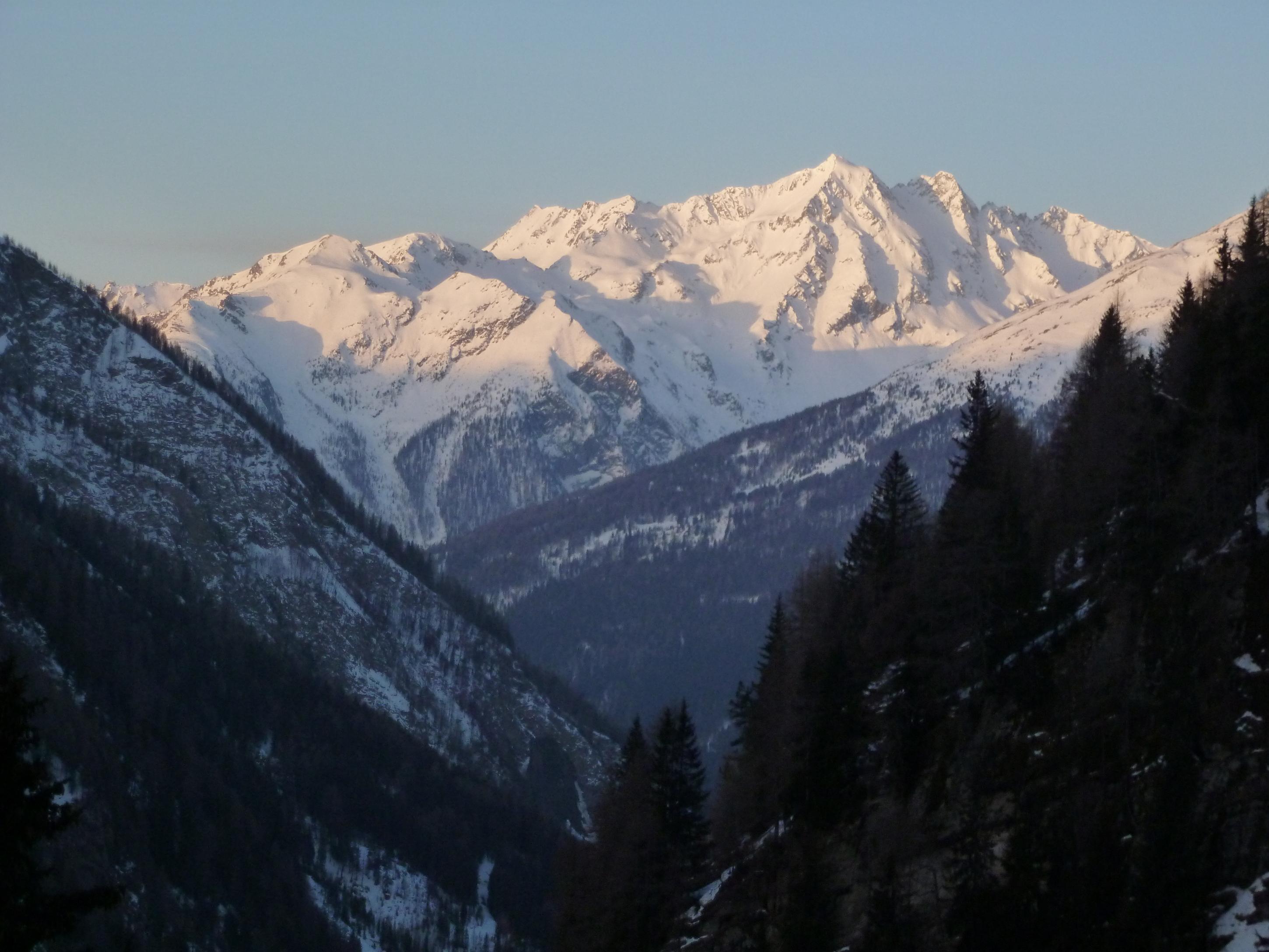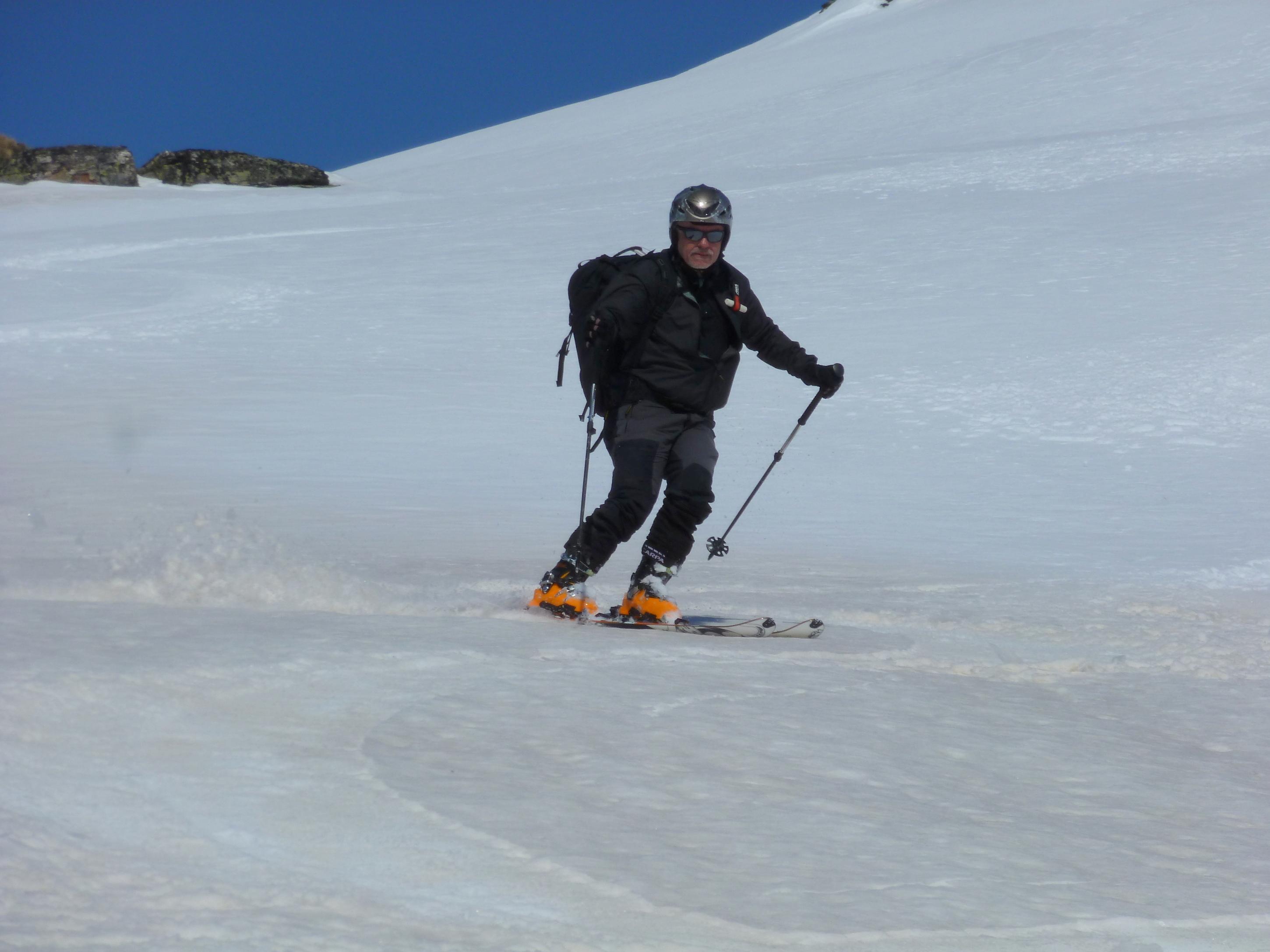 Frühstart dank Sommerzeit noch im Finstern, von Döllach Auffahrt in die Zirknitz bis zum Schranken, der die Weiterfahrt zum Kraftwerk im Kleinen Zirknitztal sperrt. Unser Aufstieg startet zunächst flach ins Große Zirknitztal, doch schon beim Rupitschkaser beginnt ein gut zu verfolgender Sommerweg durch den anfangs recht steilen Waldgürtel, mit dem die vielen Kehren einer flachen Forstautobahn abgekürzt werden, bis man in flacherem Gelände nahe der Waldgrenze zum Färberkaser und von dort über freie SW-Hänge zur Ochsnerhütte gelangt. Da auch im NW-Kar unterm Gipfel kein Pulver mehr lockt, halten wir uns mit unserer Spur auf kompaktem Harschdeckel an den vom Gipfel nach S herunterziehenden Rücken. Auf ca. 2.700 m beginnen einige ausgeaperte Feststufen, wo wir Rast bzw. unser Skidepot machen. Auf gutem Stapfschnee und über einige leichte Kletter-Stellen zum seilversicherten Gipfelfelsen. Für die Abfahrt ins Kleine Zirknitztal hätte man für die obersten Hänge gern noch länger gewartet, aber die Firnqualität auf den nach S drehenden Hängen weiter unten war dafür dann perfekt. Im Talgrund bis zum Kraftwerk nahe der Steineralmen wahlweise auf einer sicher nicht für Skifahrer (!) angelegten Ratrac-Spur inklusive kräftiger Fußmassage - oder aber in bestem Bruchharsch, wobei dieser "Eisenbahner-Pulver" zu allerlei ungewollt lustigen, aber zum Glück folgenlosen Schwungformen verführte. Bei der Rückfahrt ins Tal hören wir in den Nachrichten, weshalb der Hubschrauber schon am Vormittag in Richtung Mölltaler Gletscher unterwegs war - wie auch von der Serie weiterer schwerer Ski- und Tourenunfälle in Kärnten an diesem sonst so traumhaft schönen Tag!