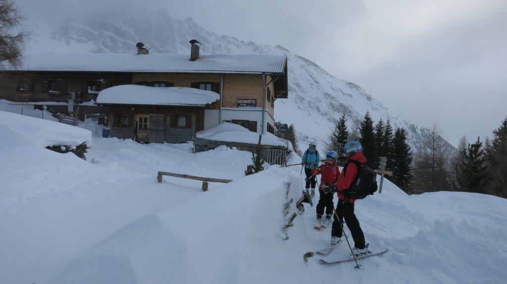 Es fing gut an mit 30 cm Neuschnee in Brennerbad. Eigentlich wollten wir die Enzianhütte nur als Zwischenstopp zur Flatschspitze (2500 m) nutzen, Der Schnee wurde jedoch mit zunehmender Höhe immer pappiger und dann kam noch ein netter Wind auf.Wir waren froh die Enzianhütte zu erreichen.