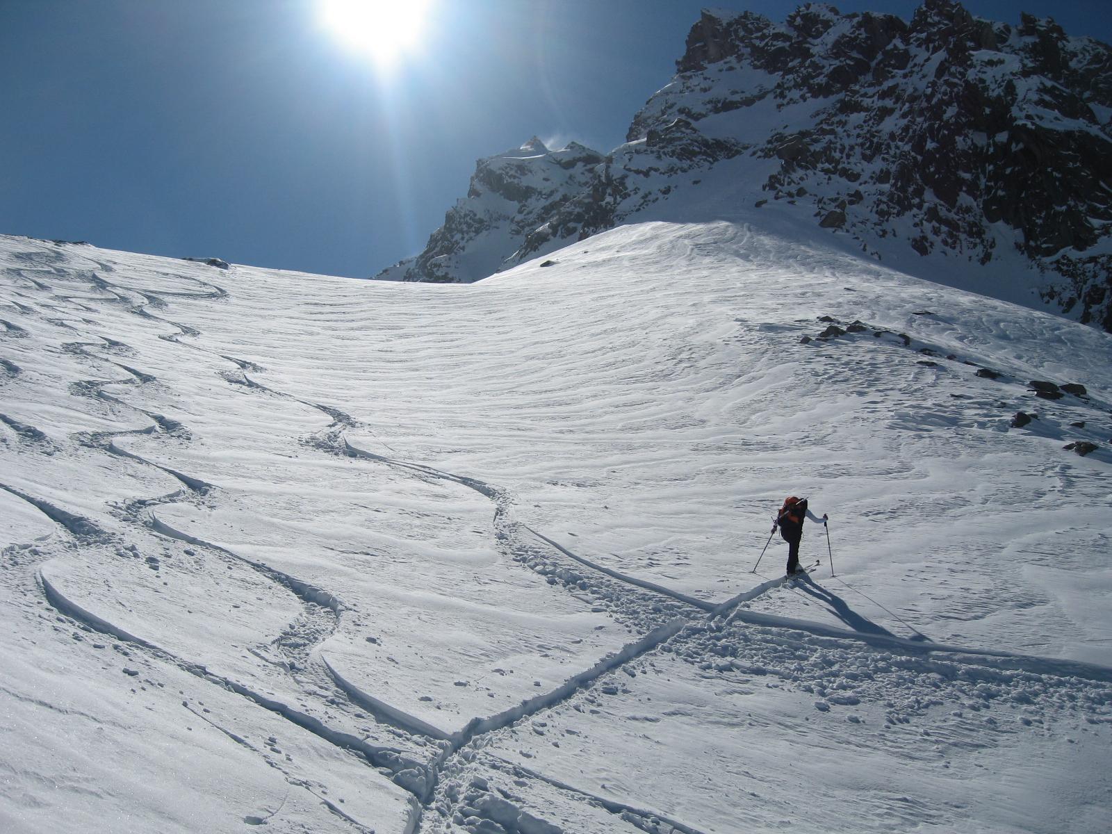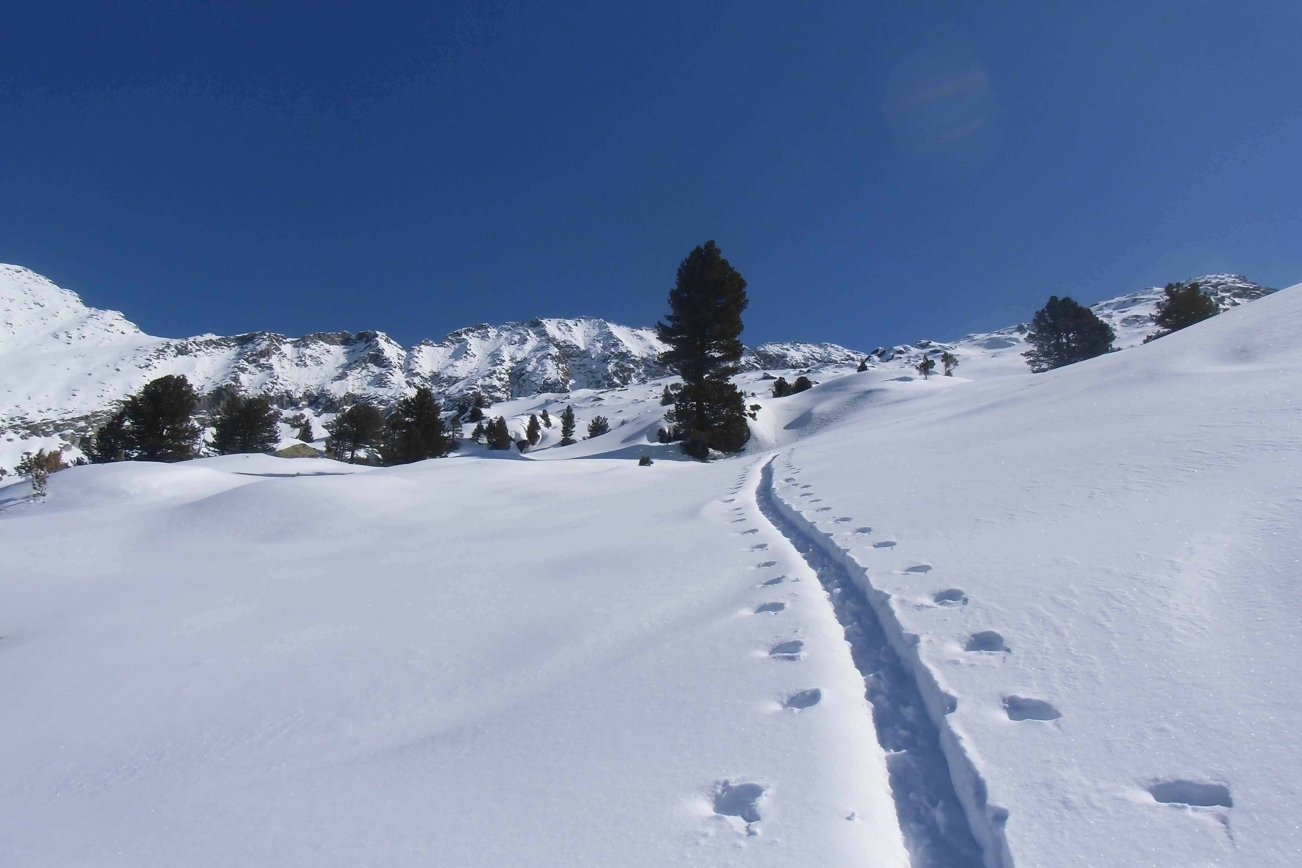 vom Ausgangspunkt Finkau eine Tour, die an diesem Tag alles bietet! Die Steilstufe durch den Wald gut zu gehen und fahren, oben 1000 hm Pulvertraum!