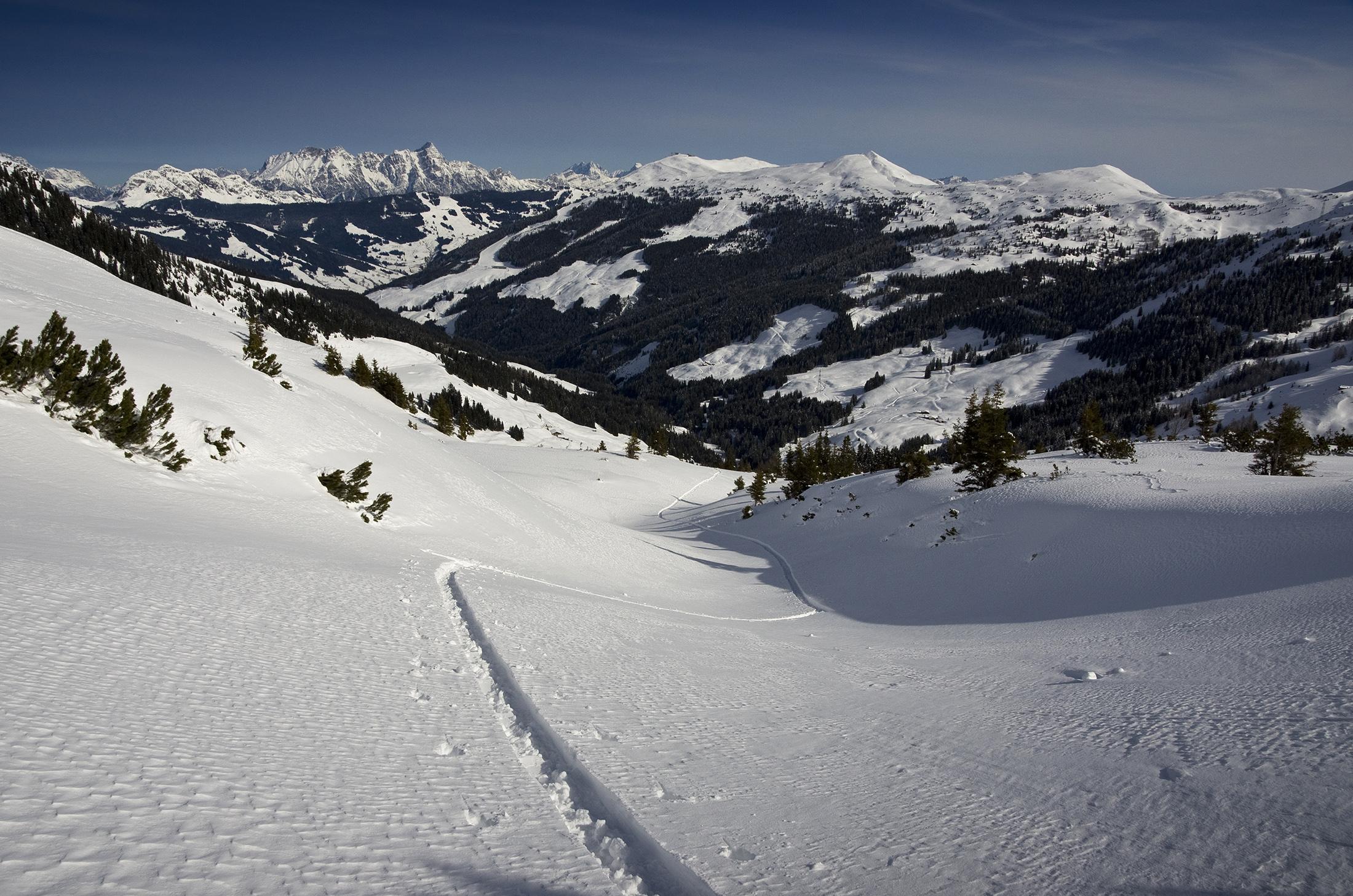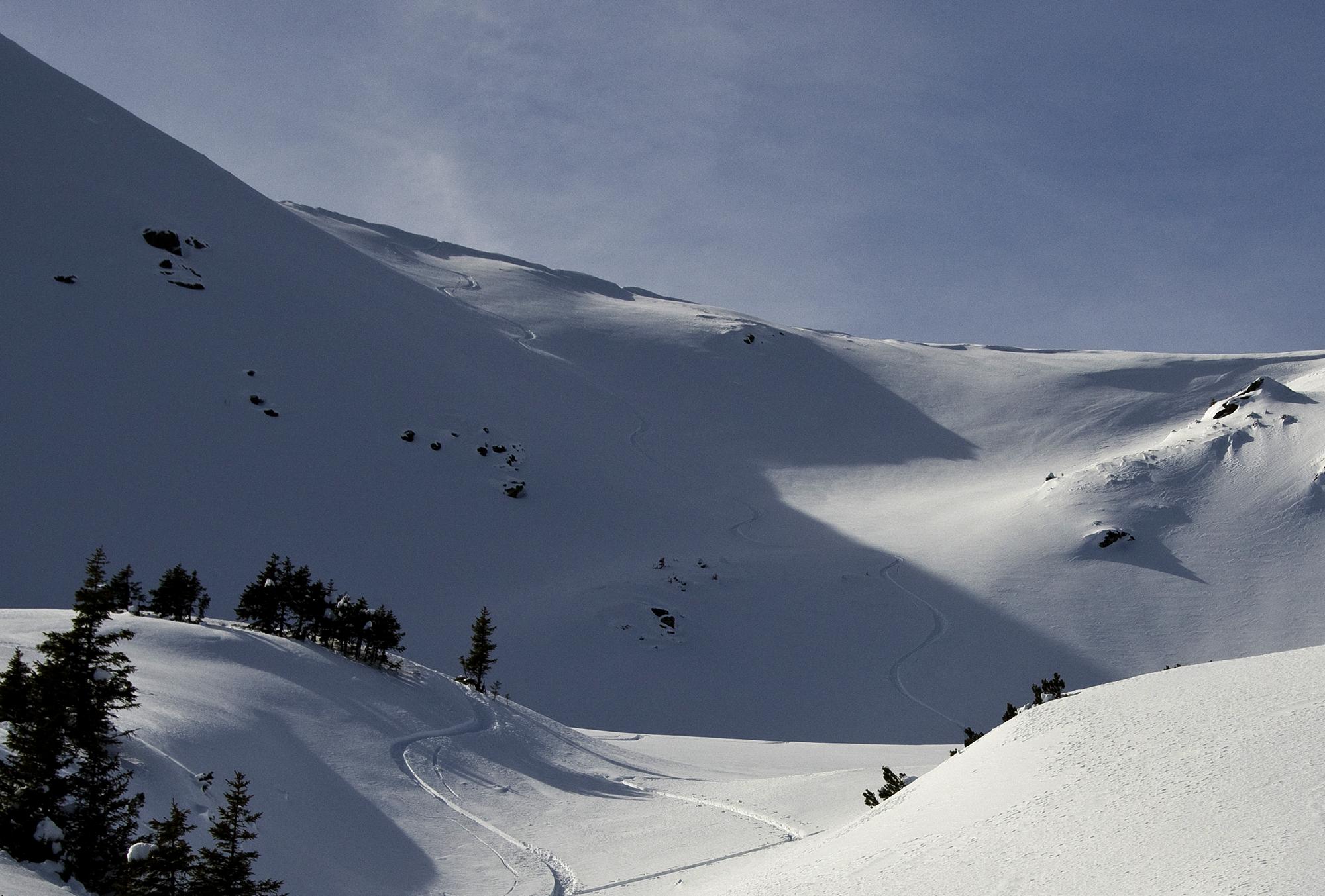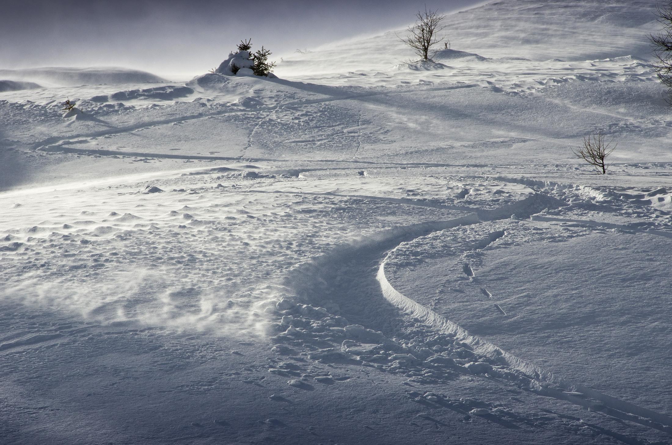 Feiner Pulverschnee, nordseitig bis hinunter in den Graben herrlich locker und noch nicht angefeuchtet. Allerdings fing es mittags wieder an zu wehen...