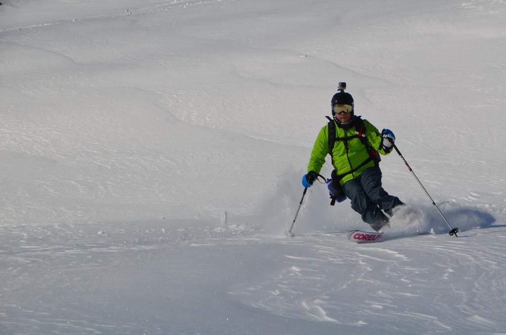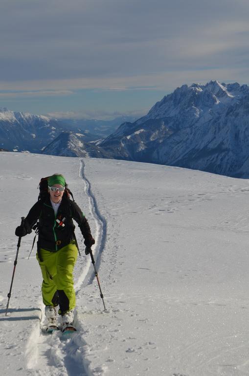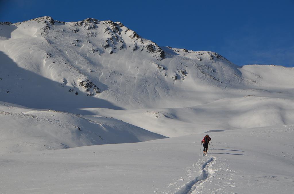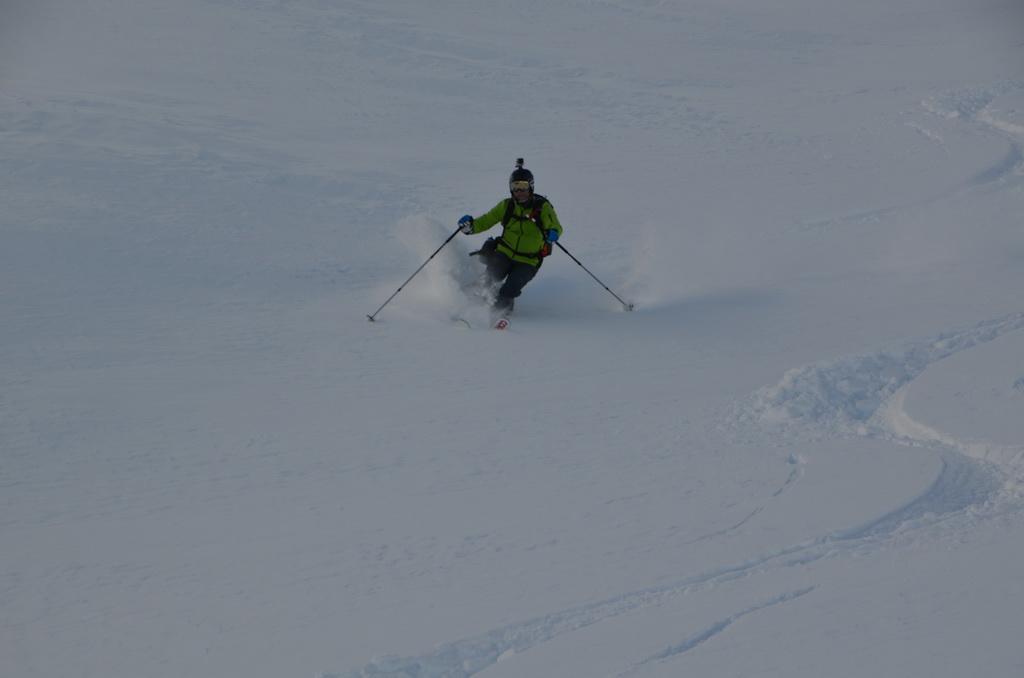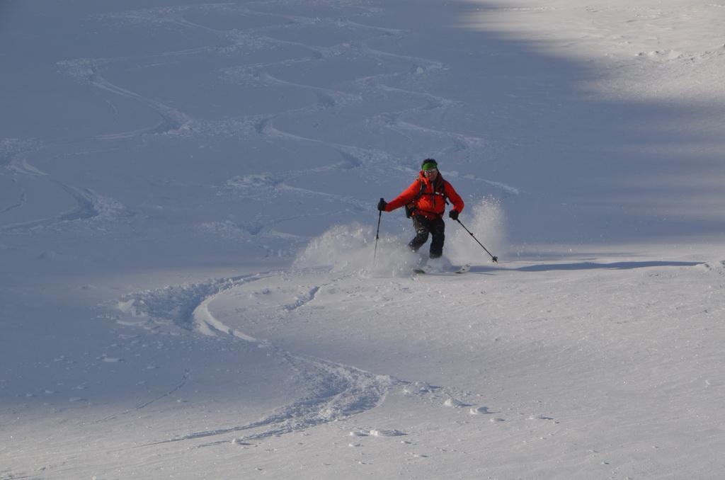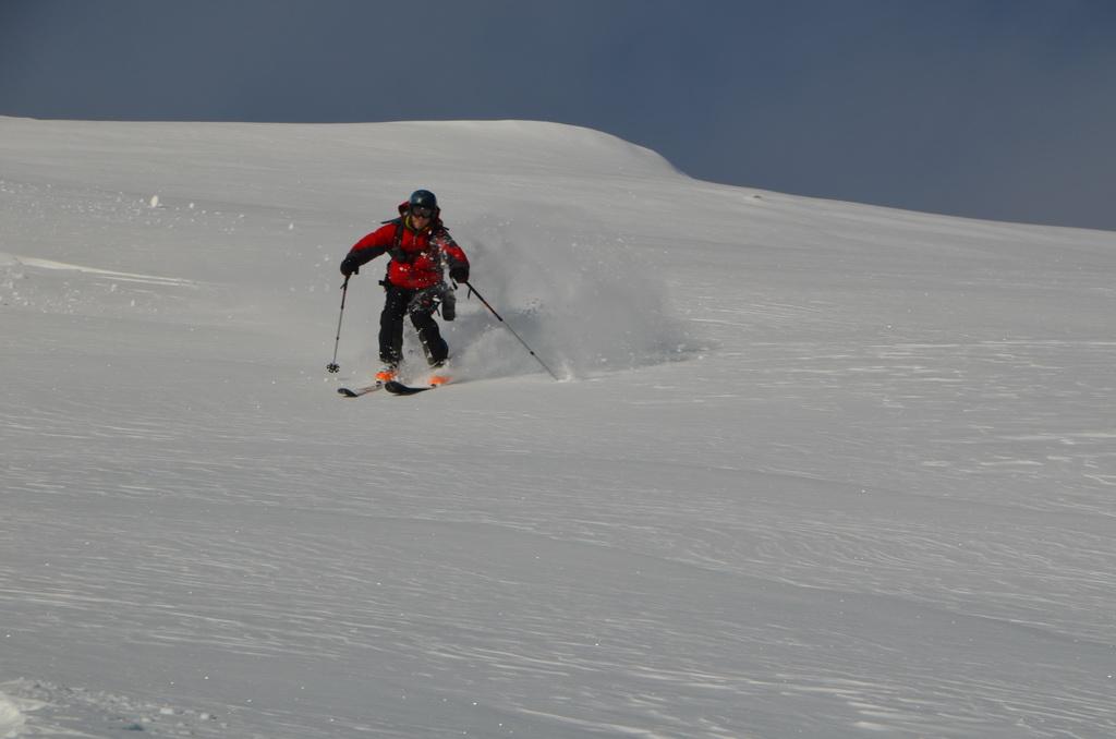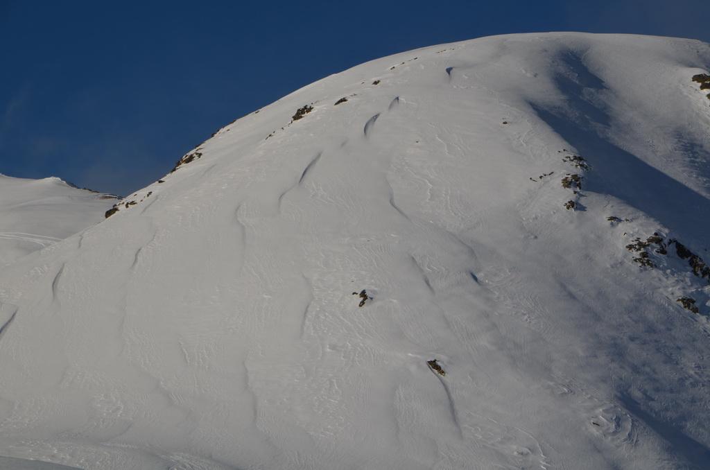 Aufgrund der zur Zeit etwas angespannten Lawinensituation haben wir uns heute für die Reiserspitze entschieden. Die Tour ist bei überlegter Spuranlage relativ sicher und bietet trotzdem eine wirklich lässige Abfahrt über viele Mulden und Kuppen.Am Gipfelhang kann man den steilsten Stellen gut ausweichen und die letzten Meter führen dann unschwierig über den Grat zum Gipfel. Auf den Bildern kann man deutlich den starken Windeinfluss der letzten Tagen erkennen.