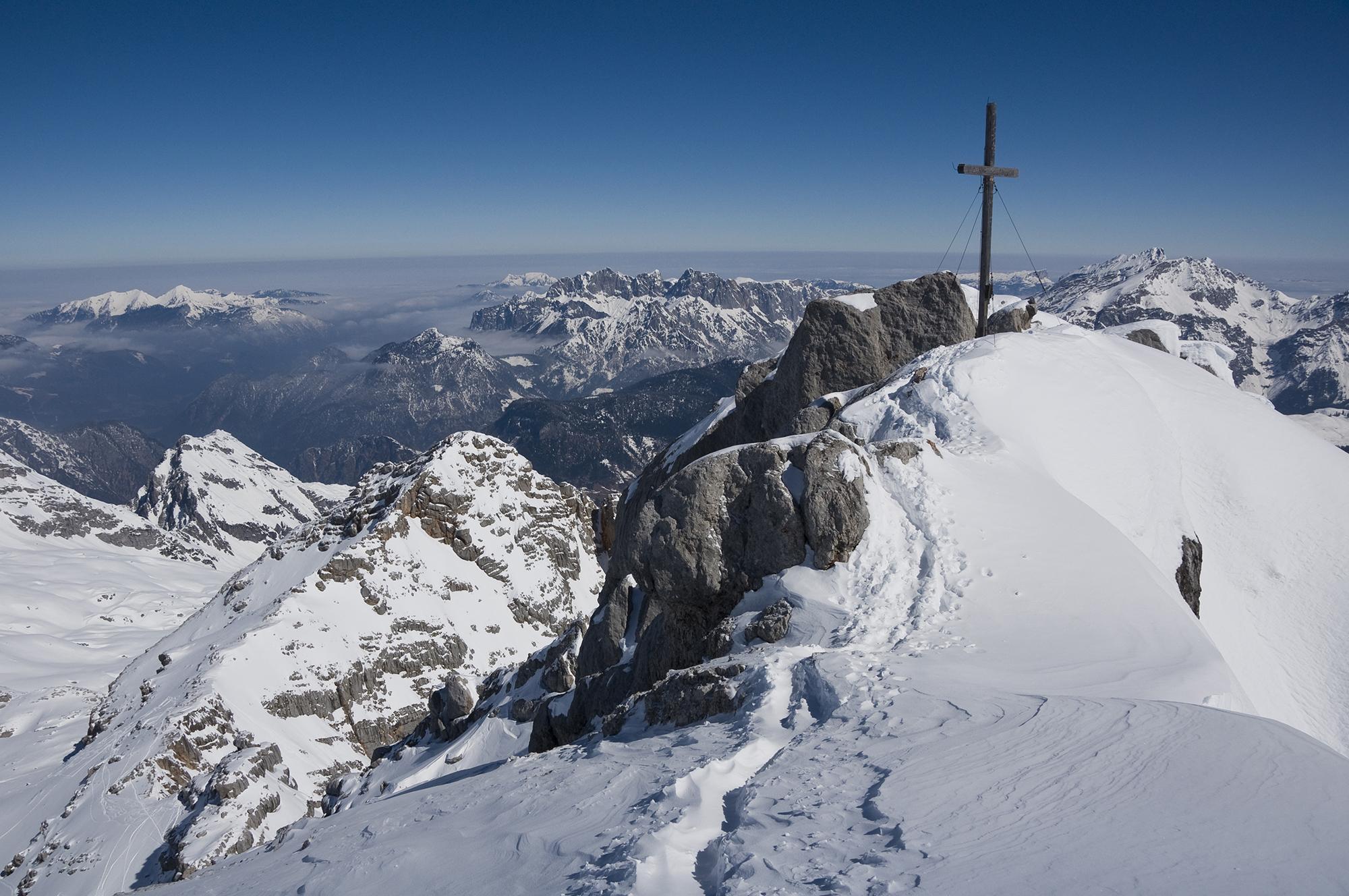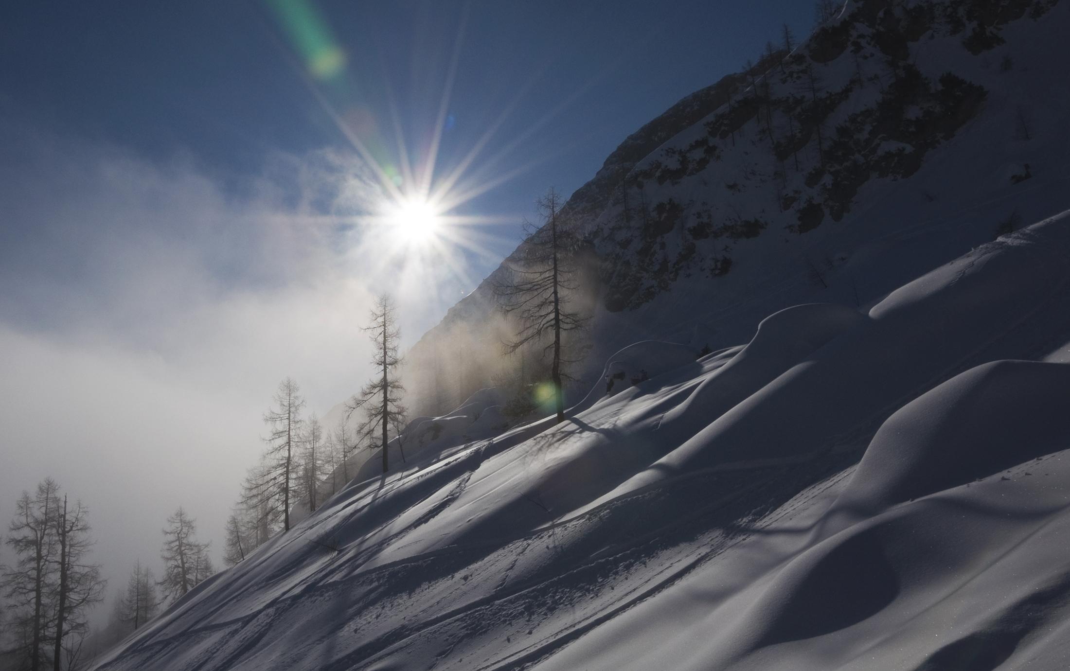 Hervorragende Verhältnisse am Birnhorn. Nur im untersten Viertel der Waldstufe müssen die Ski getragen werden. Darüber dann jede Menge Schnee. Im Lärchenwald sogar gesetzter Pulver, je nach Exposition bei der Abfahrt schon leicht angefeuchtet. Im Ebersbergkar haben Wind und Wärme den Schnee behandelt, zur Mittagszeit aber sehr gut zu fahren. Ich habs auf den Punkt erwischt, nachmittags wirds bei Sonnenschein sicher schwer und nass.