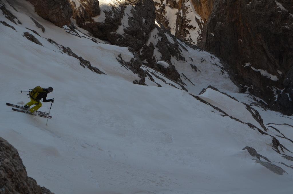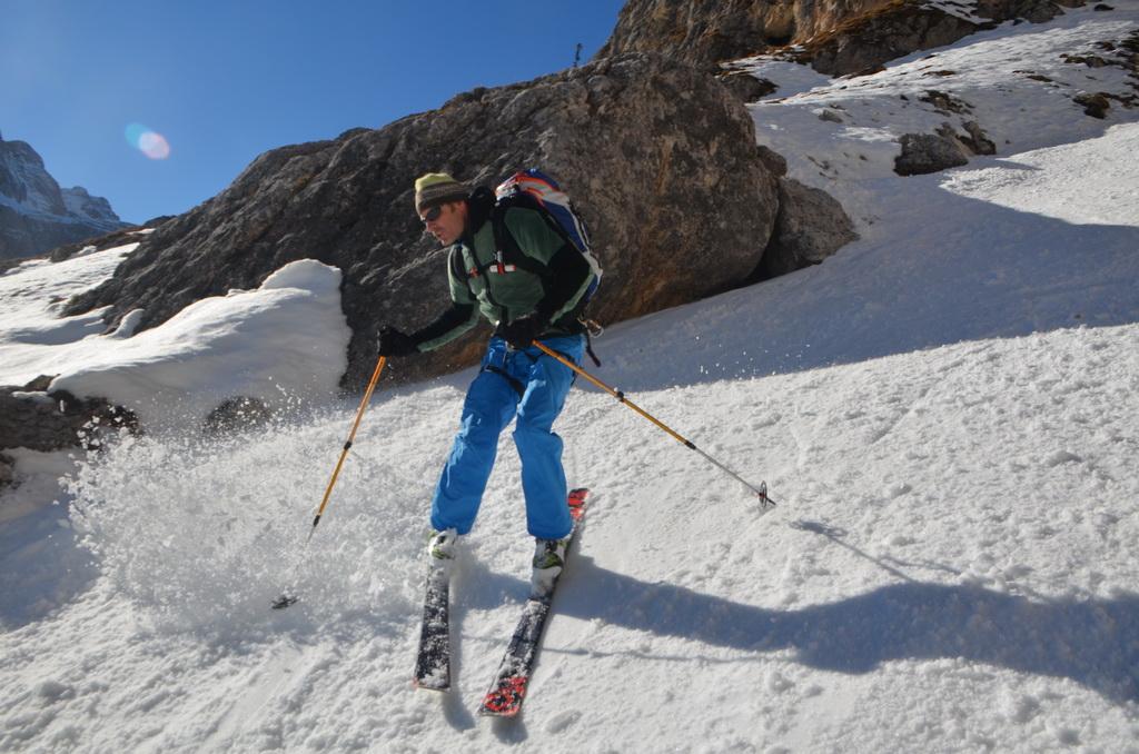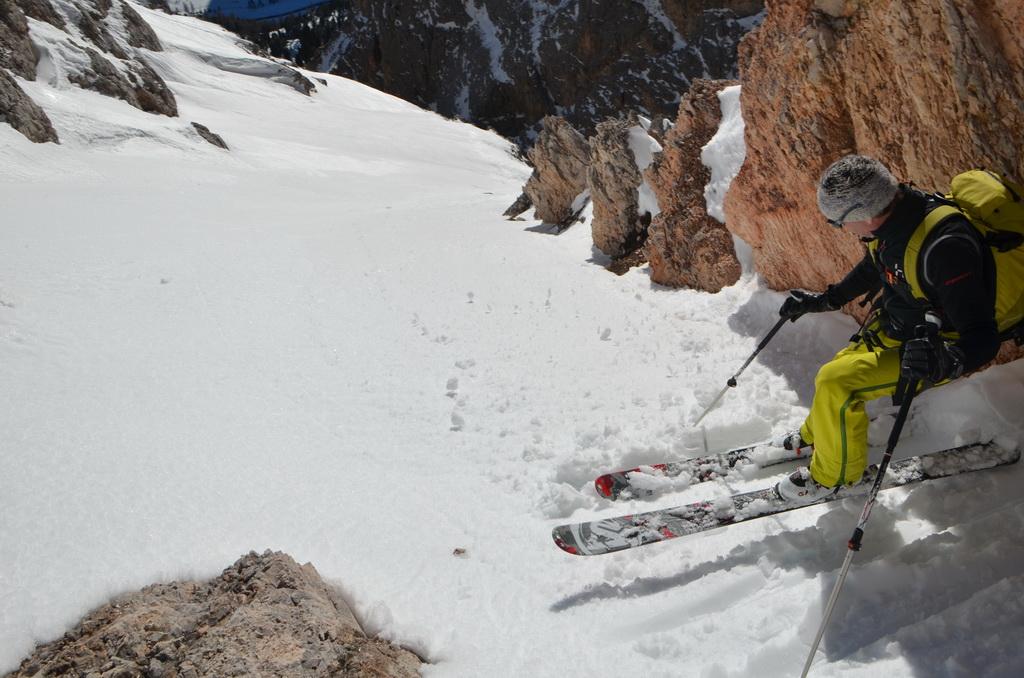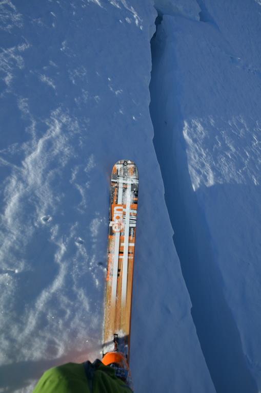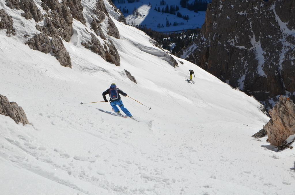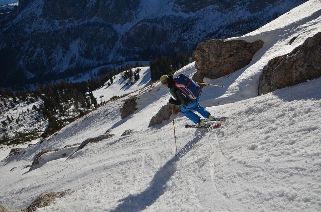 Zur Zeit kann Alta Badia nur eine bescheidene Schneedecke Vorweisen, dabei wechselten heute die Verhältnisse mehrmals zw. Firn, tragfähigem Harschdeckel und Windgepresstem Schnee. Auf dem Rückweg zum Auto konnte man auch den steilen Grashängen auch immer wieder alte Gleitschneerutscher sehen.