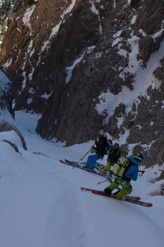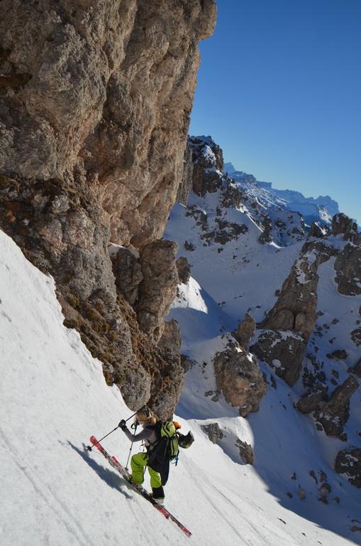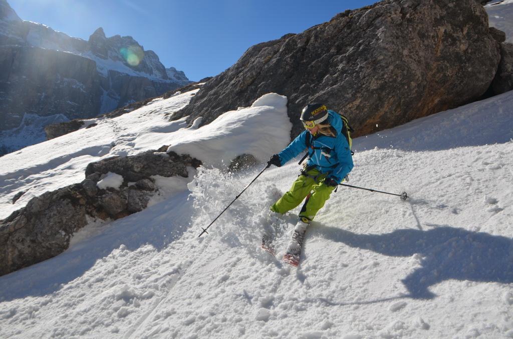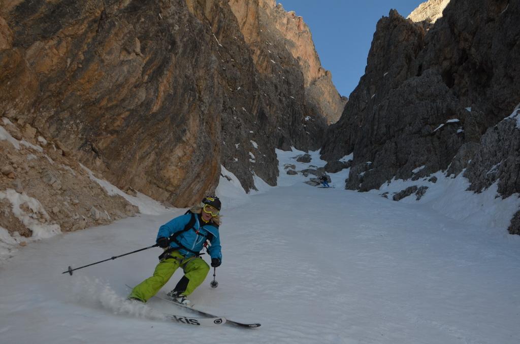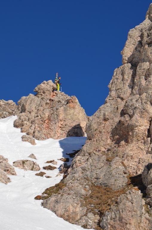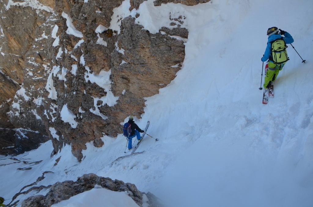 Zur Zeit kann Alta Badia nur eine bescheidene Schneedecke Vorweisen, dabei wechselten heute die Verhältnisse mehrmals zw. Firn, tragfähigem Harschdeckel und Windgepresstem Schnee. Auf dem Rückweg zum Auto konnte man auch den steilen Grashängen auch immer wieder alte Gleitschneerutscher sehen.