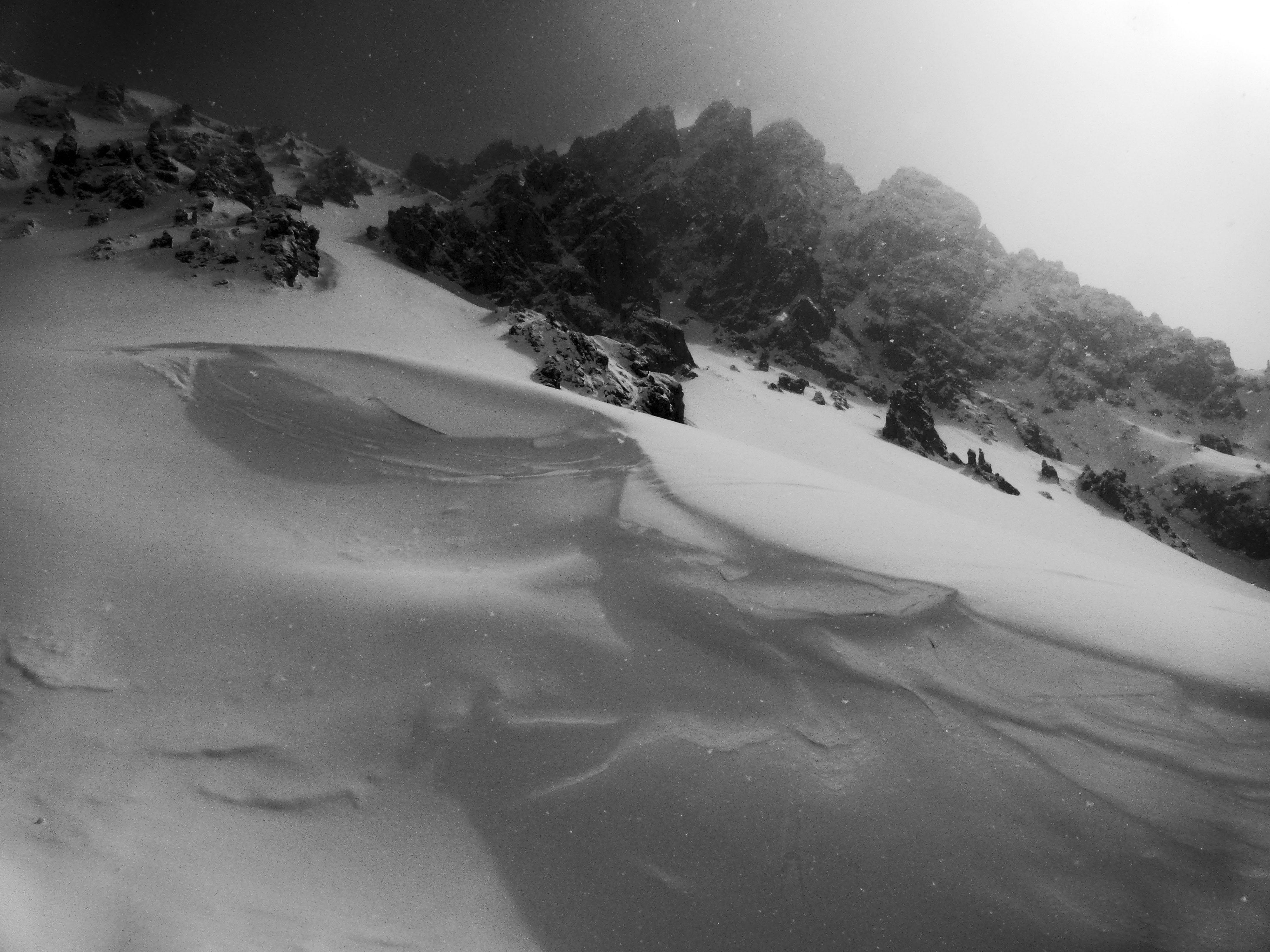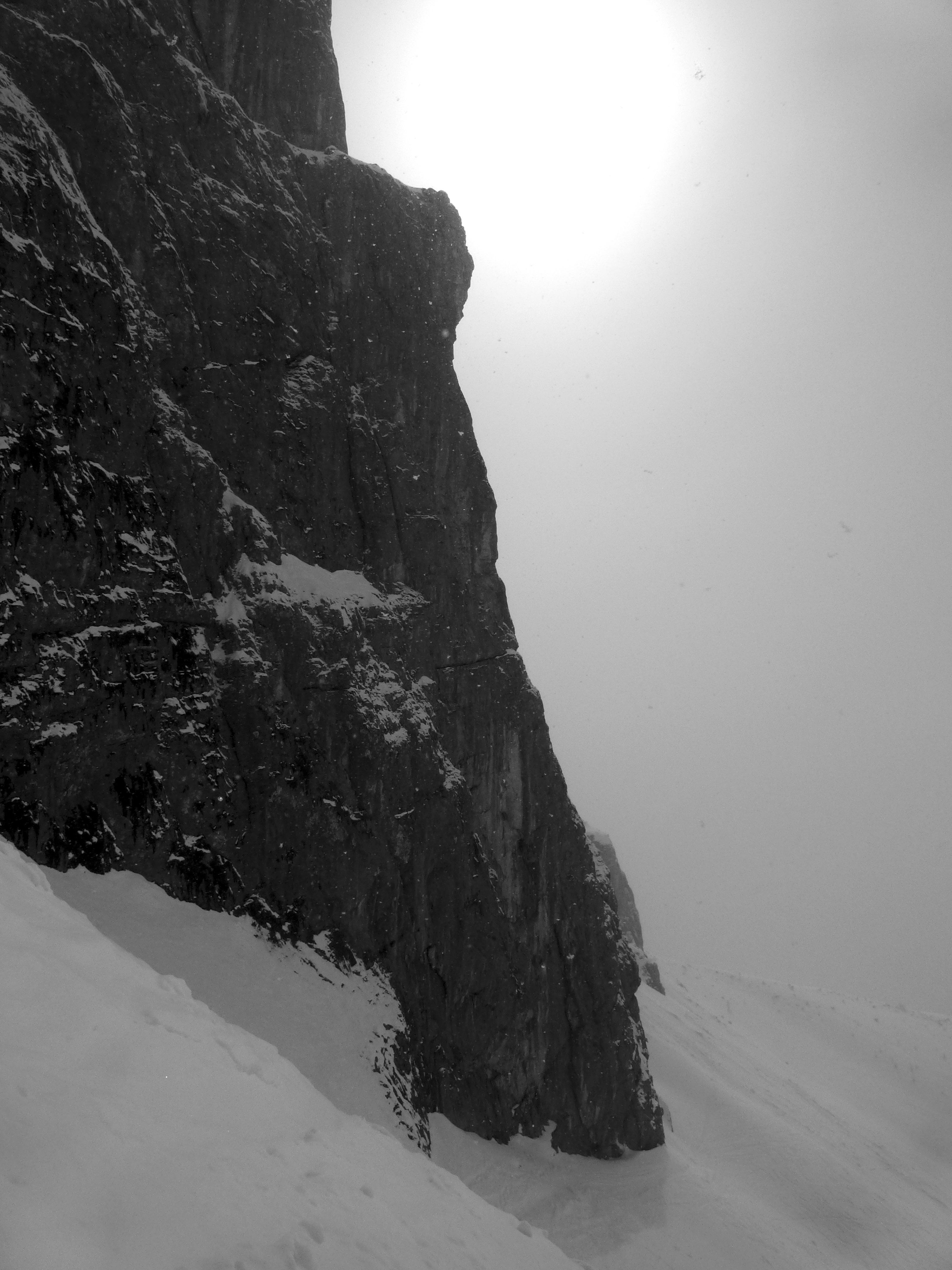 Es liegt reichlich gut gesetzter Altschnee, darüber morgens bis 10cm lockerer Pulver, kein Einsinken, keine Harscheisen erforderlich.