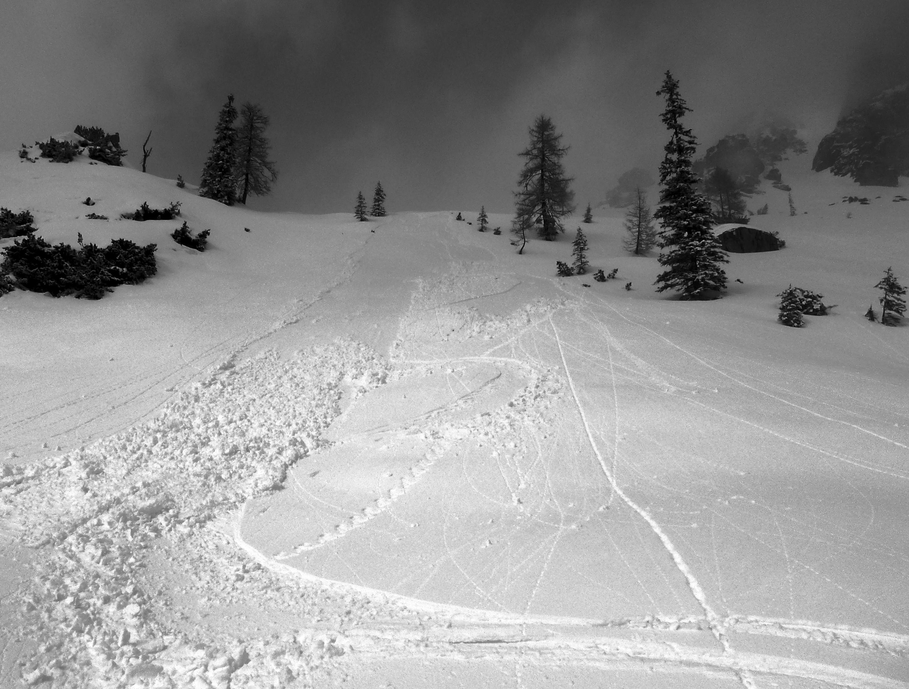 Zauberhafte und sehr sichere Verhältnisse herrschen hier in der Ramsau. Bin heute ohne fixes Ziel aufgebrochen, dann hat es aufgerissen und ich bin einfach weiter bis Eingang Rosmariestollen (1500Hm). Dann hat es wieder zugemacht und ich musste entlang der Aufstiegsspur vorsichtig abfahren. Erst unter 2200m wieder gute Sichtverhältnisse