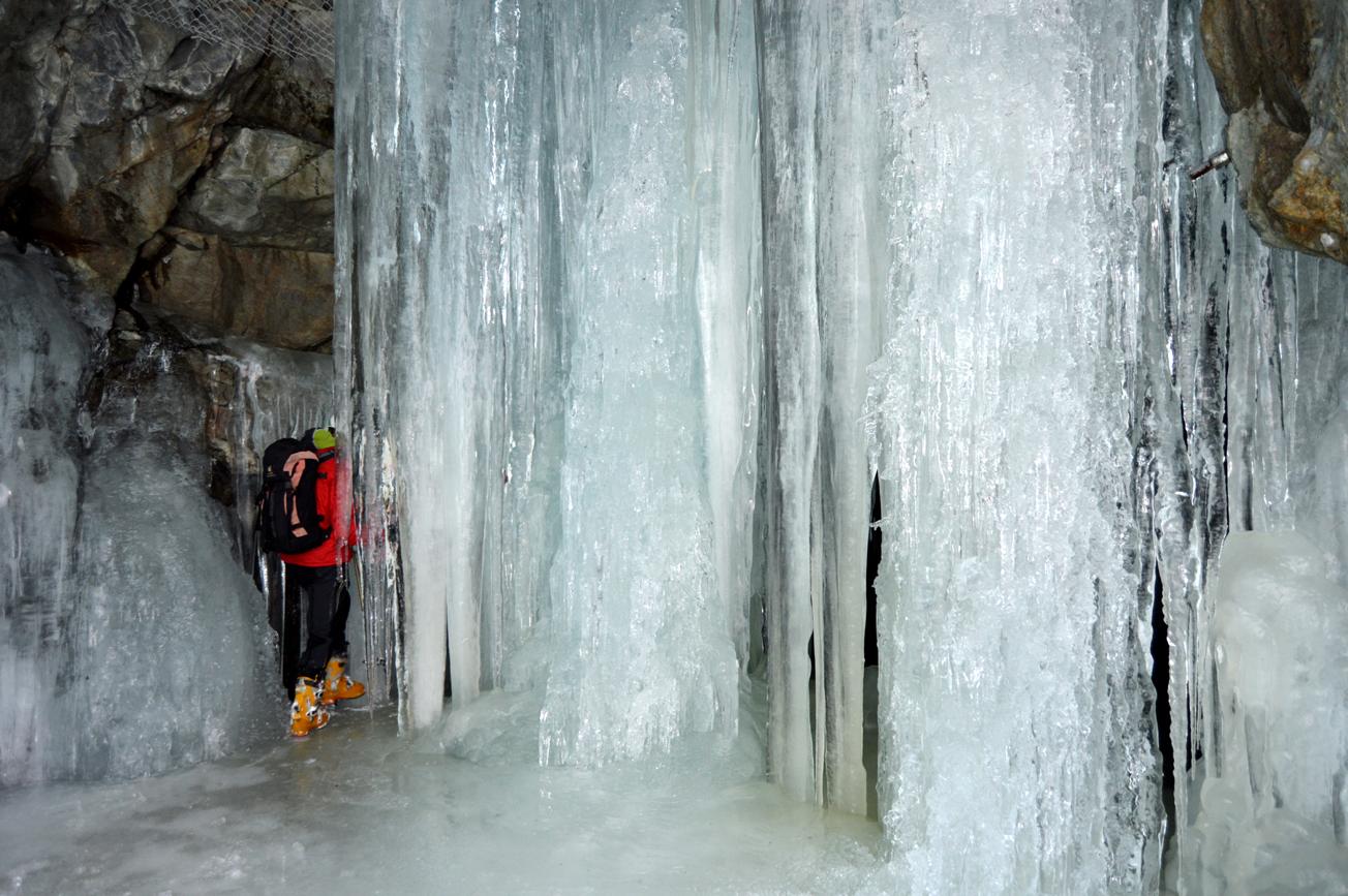 Der Tunnel hat nur einen kleinen Durchschlupf durch den Eisvorhang. Danach traumhafter Pulver ohne Windeinfluß. Auch im Schwarzkarl hat der Wind keine große Rolle gespielt. Der Übergang aufs Hocheiserkees war natürlich verblasen. Auf dem Gletscher selbst war durch den Wind komprimierter, aber sehr schön zu fahrender Pulverschnee.