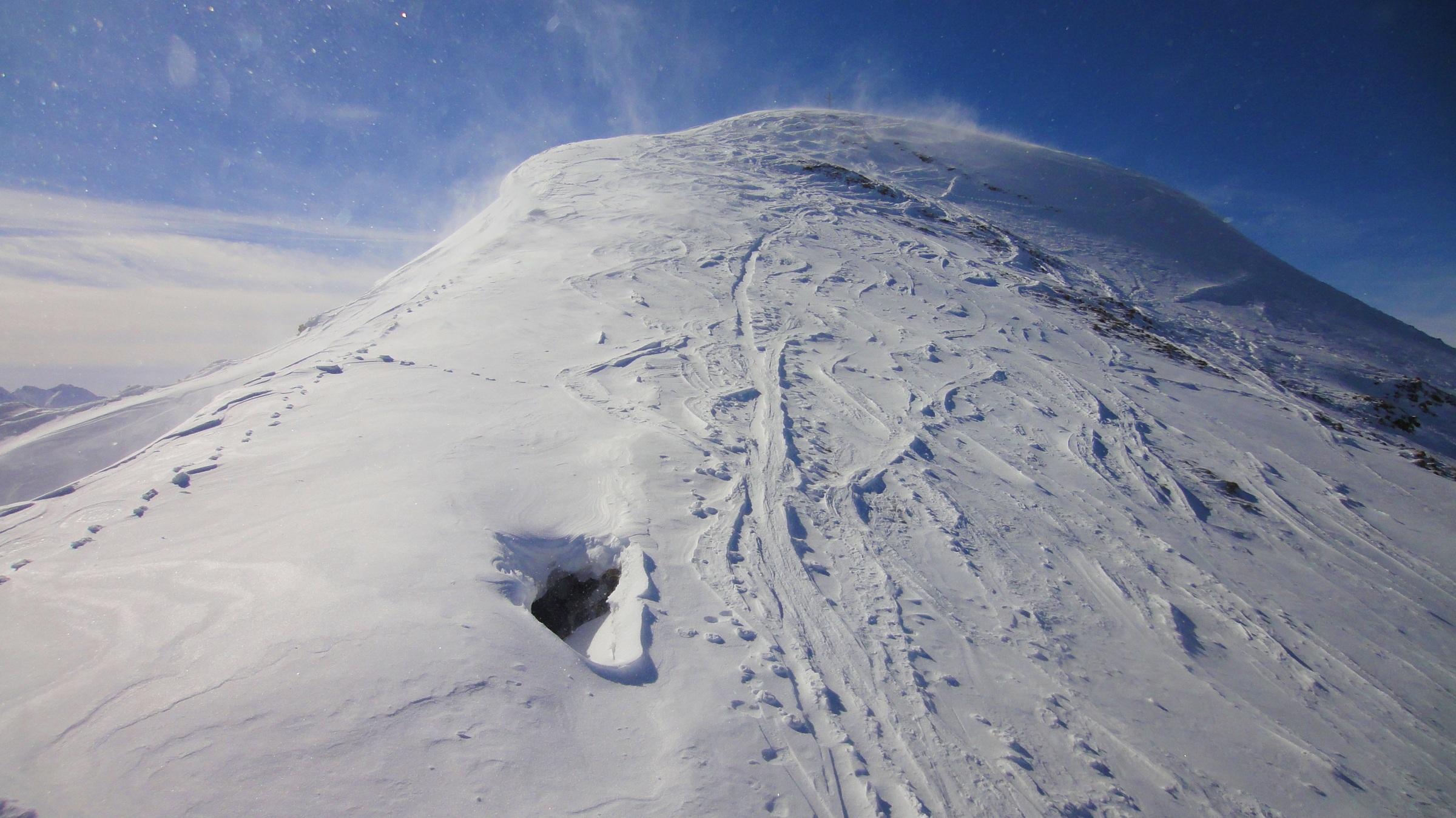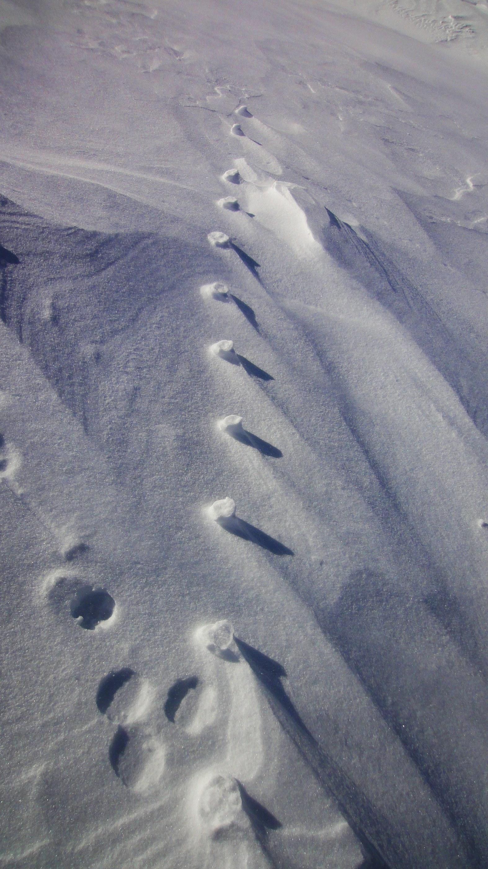 - Unter der windgepressten Kruste ist der Schnee mitunter aufbauend umgewandelt, teilweise wurde speziell in schattseitigen Kammlagen oberhalb von 2000 m Oberflächenreif überschneit oder überweht… Nordhang vor der Scharte: Check vor Ort