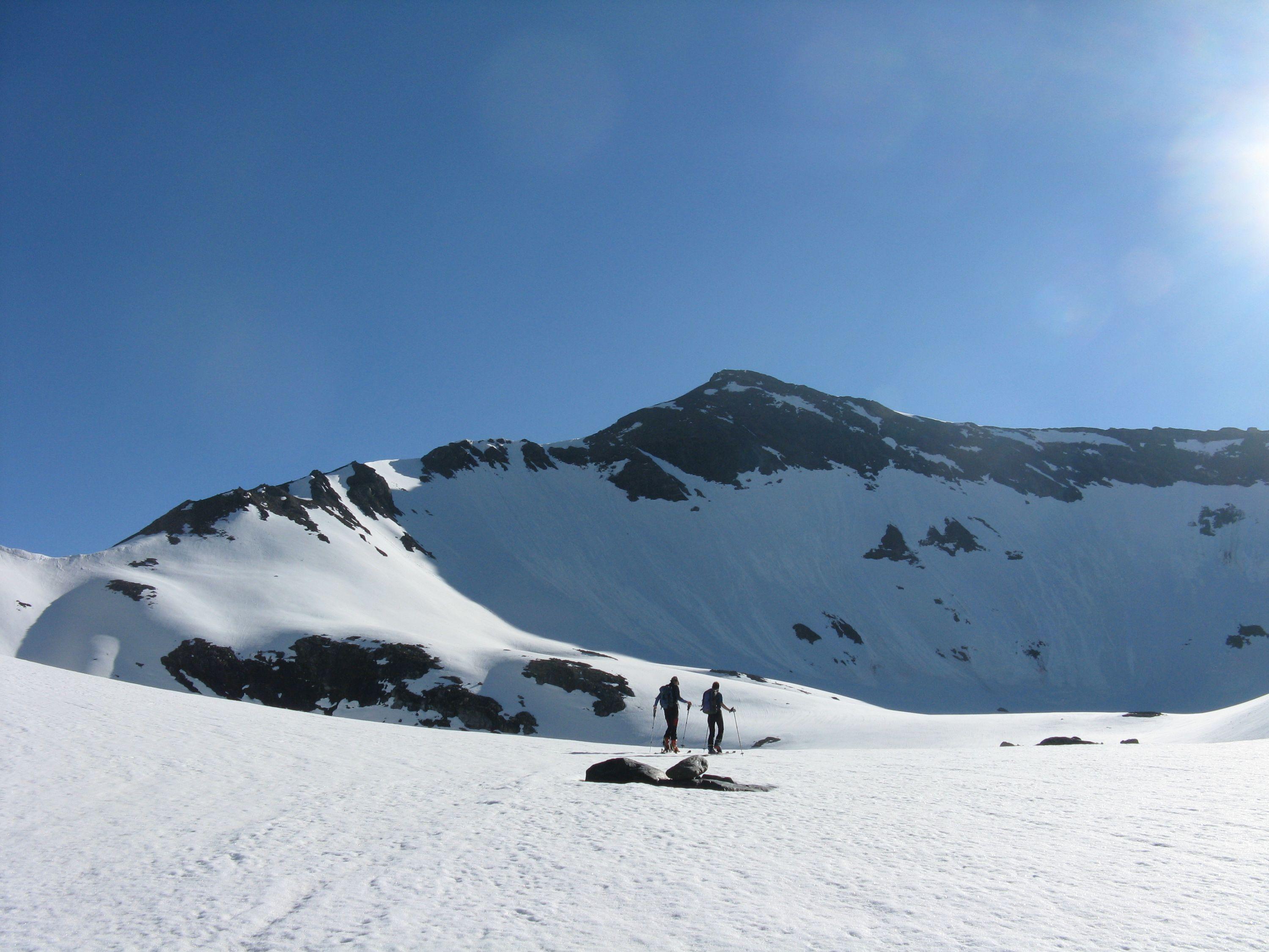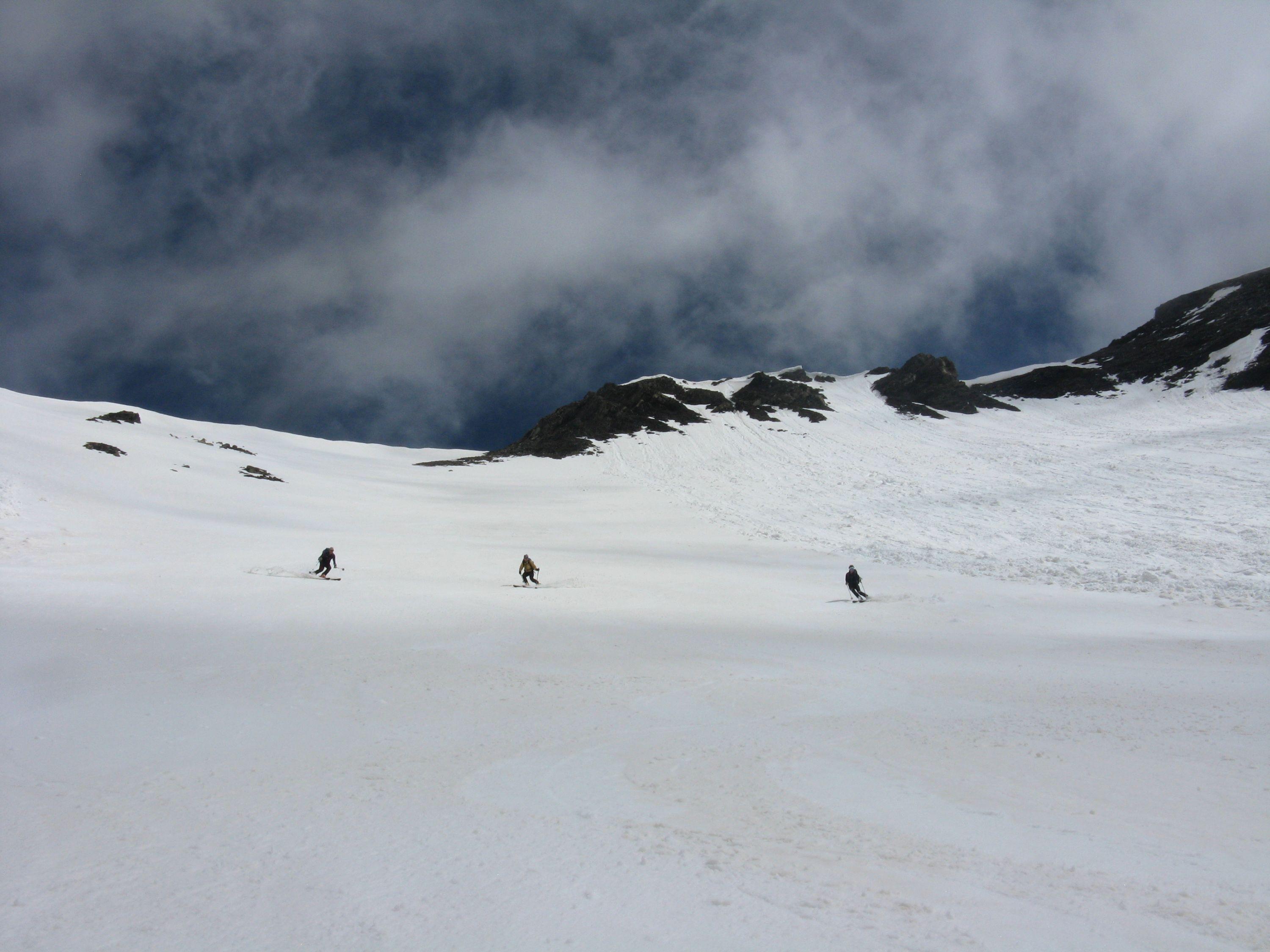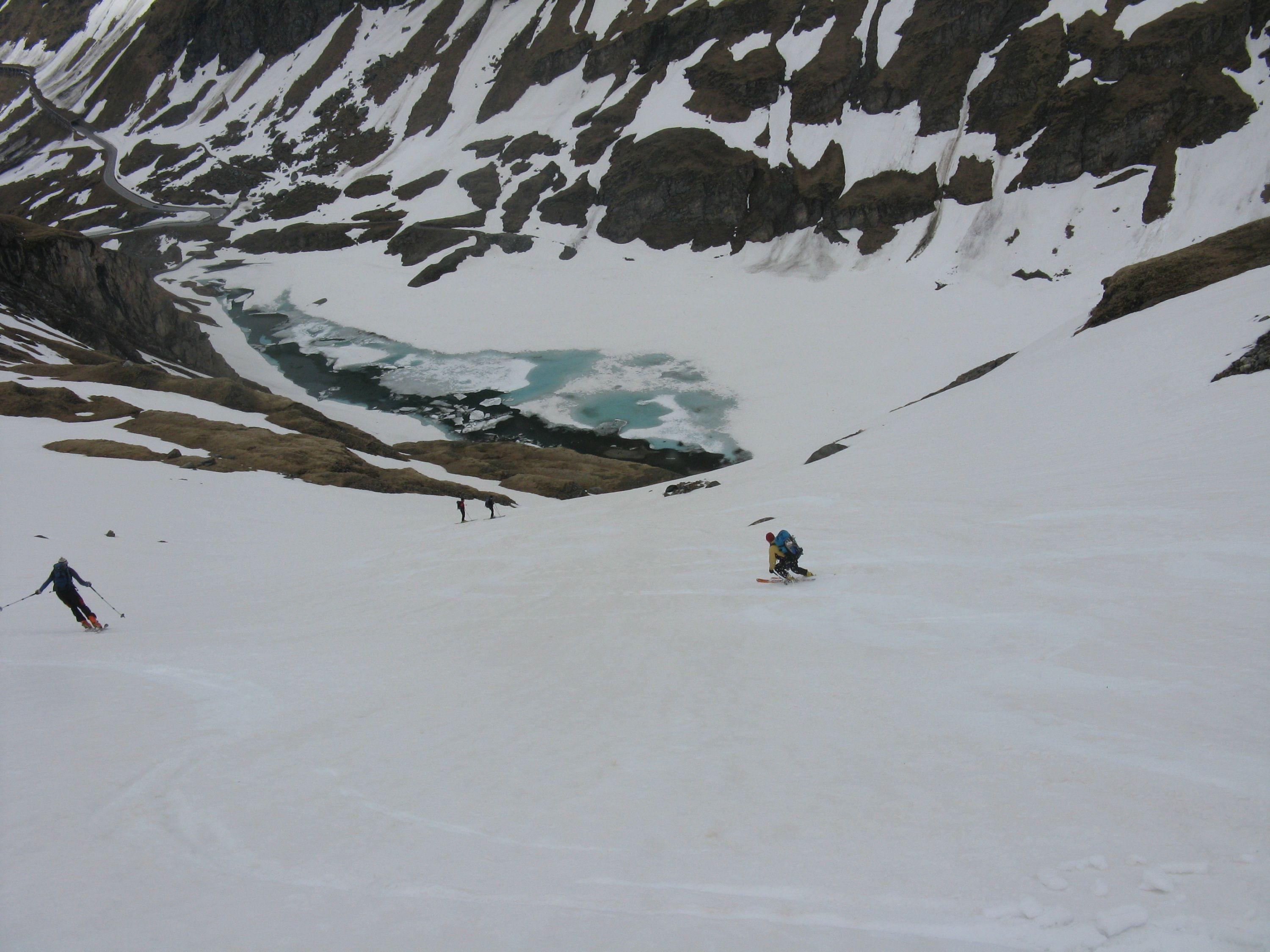 Glocknergruppe.Ausgangspunkt war heute der Parkplatz beim Glocknerhaus.Aufstieg zum Gipfel über untere Pfandlscharte und W-Grat,im Gegensatz zum Kloben und Brennkogel einsam.Abfahrt über einen Steilhang zum See,Wiederaufstieg zur unteren Pfandlscharte,Abfahrt ins nördl.Pfandlschartenkees bis zum Zusammmentreffen mit der Klobenabfahrt, Aufstieg zur unteren Pfandlscharte,Abfahrt zum Naßfeldspeicher.Schneedecke morgens gefroren,bei Abfahrt beste Firnverhältnisse.