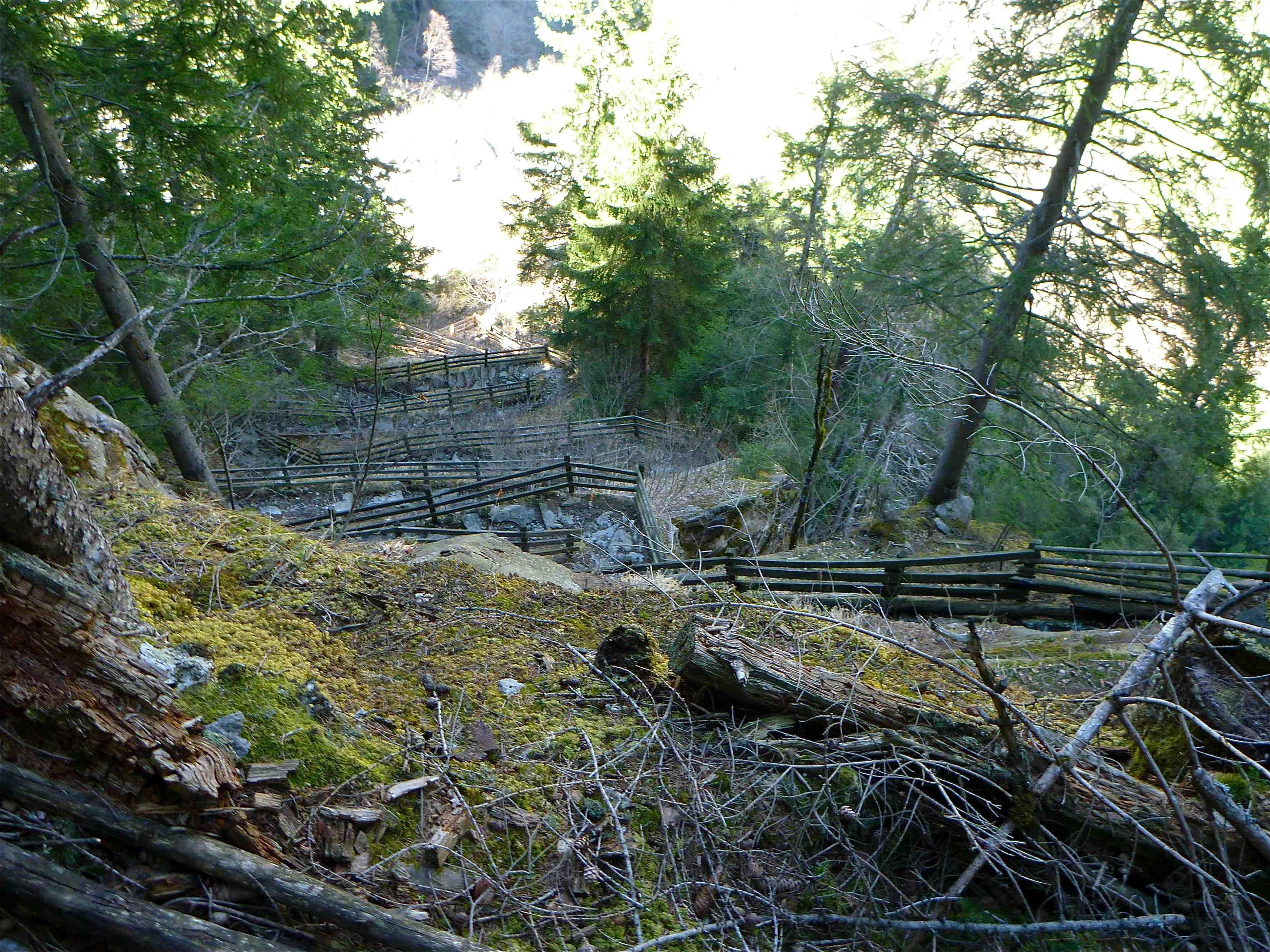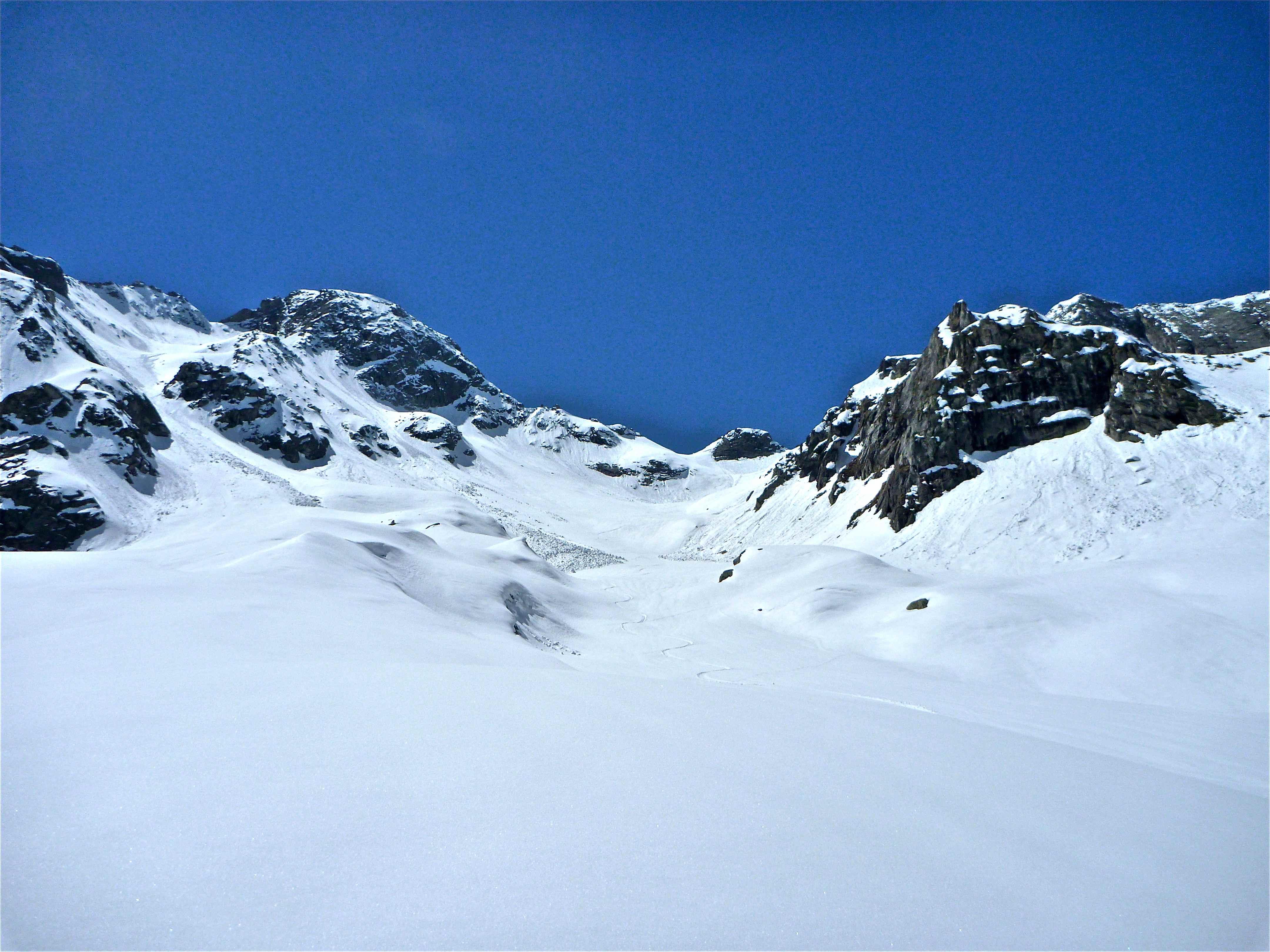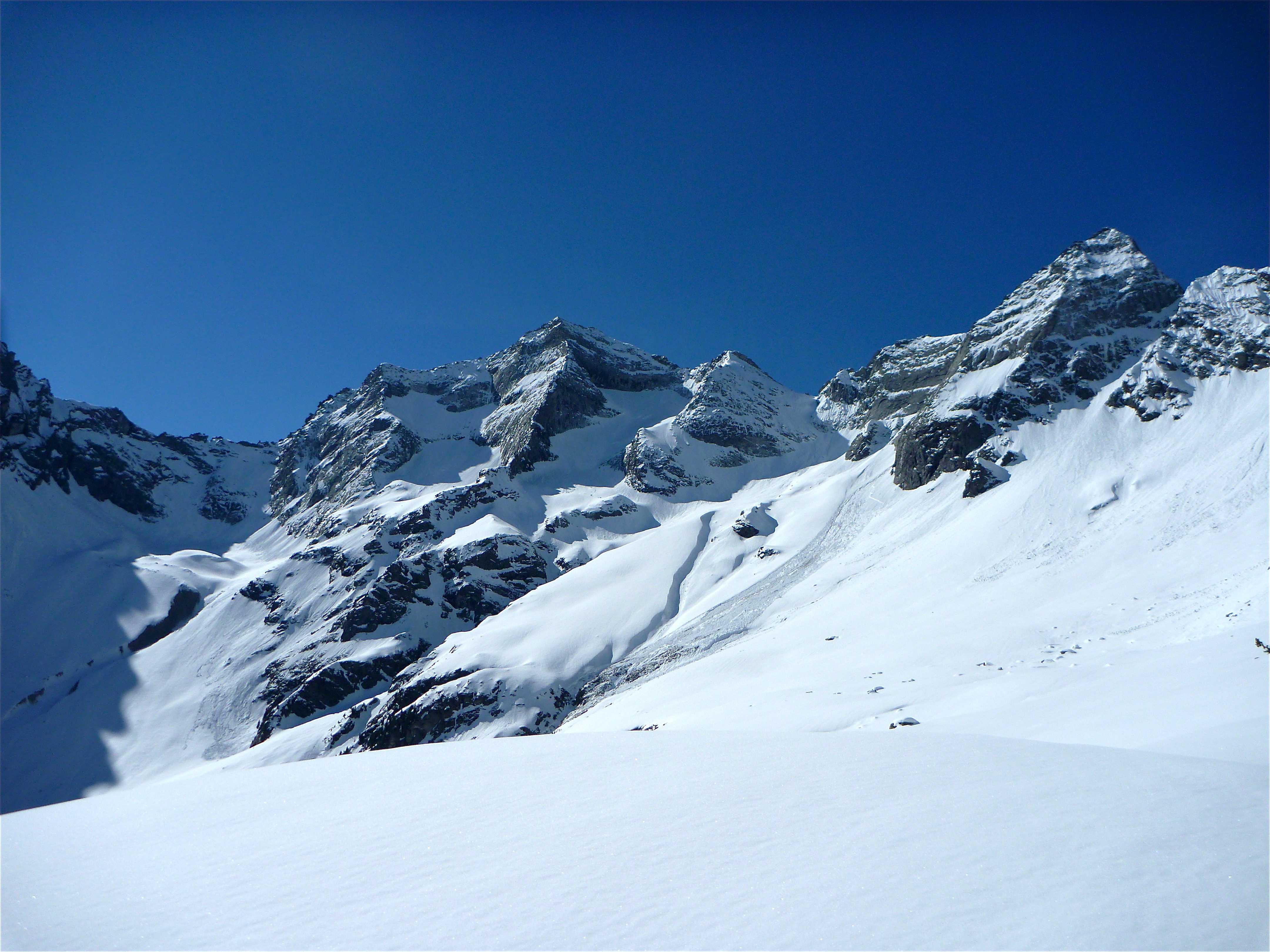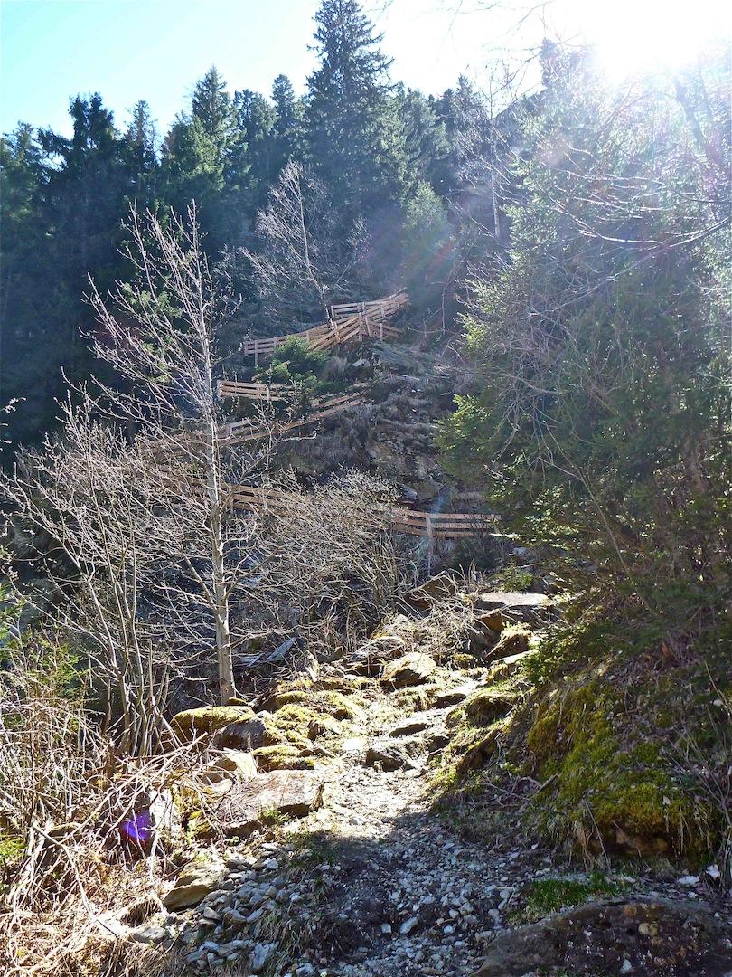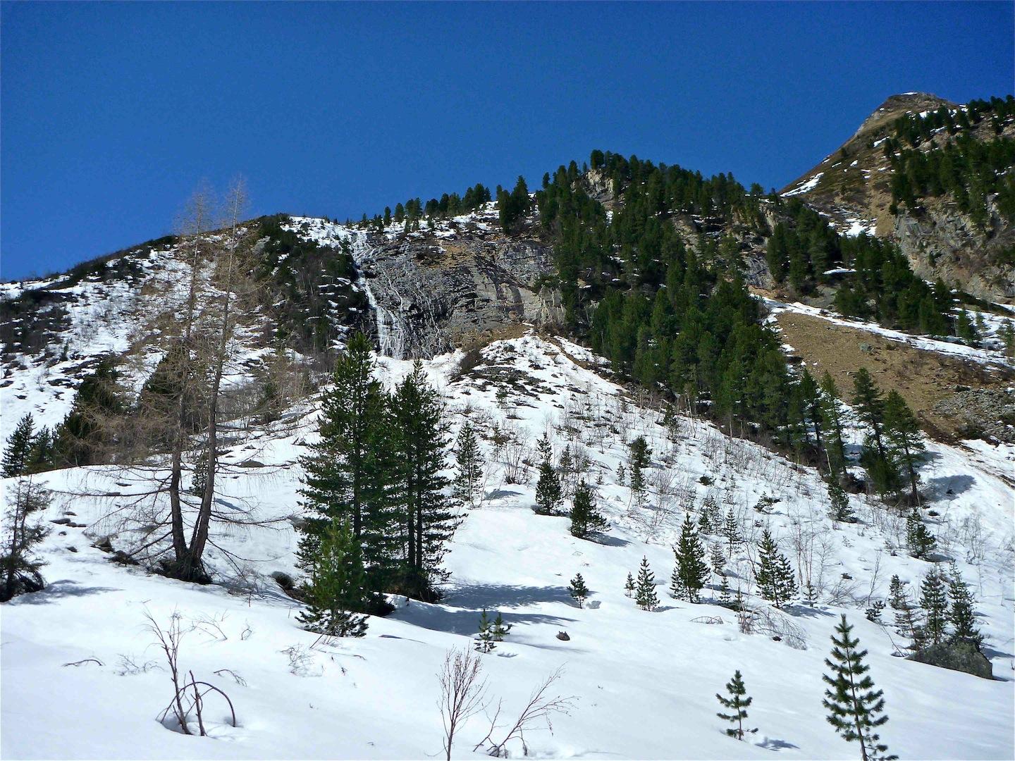 Beschreibung: vom Kraftwerk nach Häusling steigt man die Ski tragend (auch im Hochwinter) über den sehr steilen Wandersteig auf (ca. 400hm), dann gehts flach und sehr lange vorbei an der Bodentalalm in einen Kessel, fast bis zum Fuße der Nordkante des Grundschartners. Dann rechts steil über leicht bewachsenes Gelände in eine Ebene, hier leicht links über sanfte Hänge in Richtung eines markanten Felsblocks rechts vom Wilhelmer. Etwas steiler nach rechts bis zum Skidepot und dann zu Fuß sehr alpin zum Gipfel.