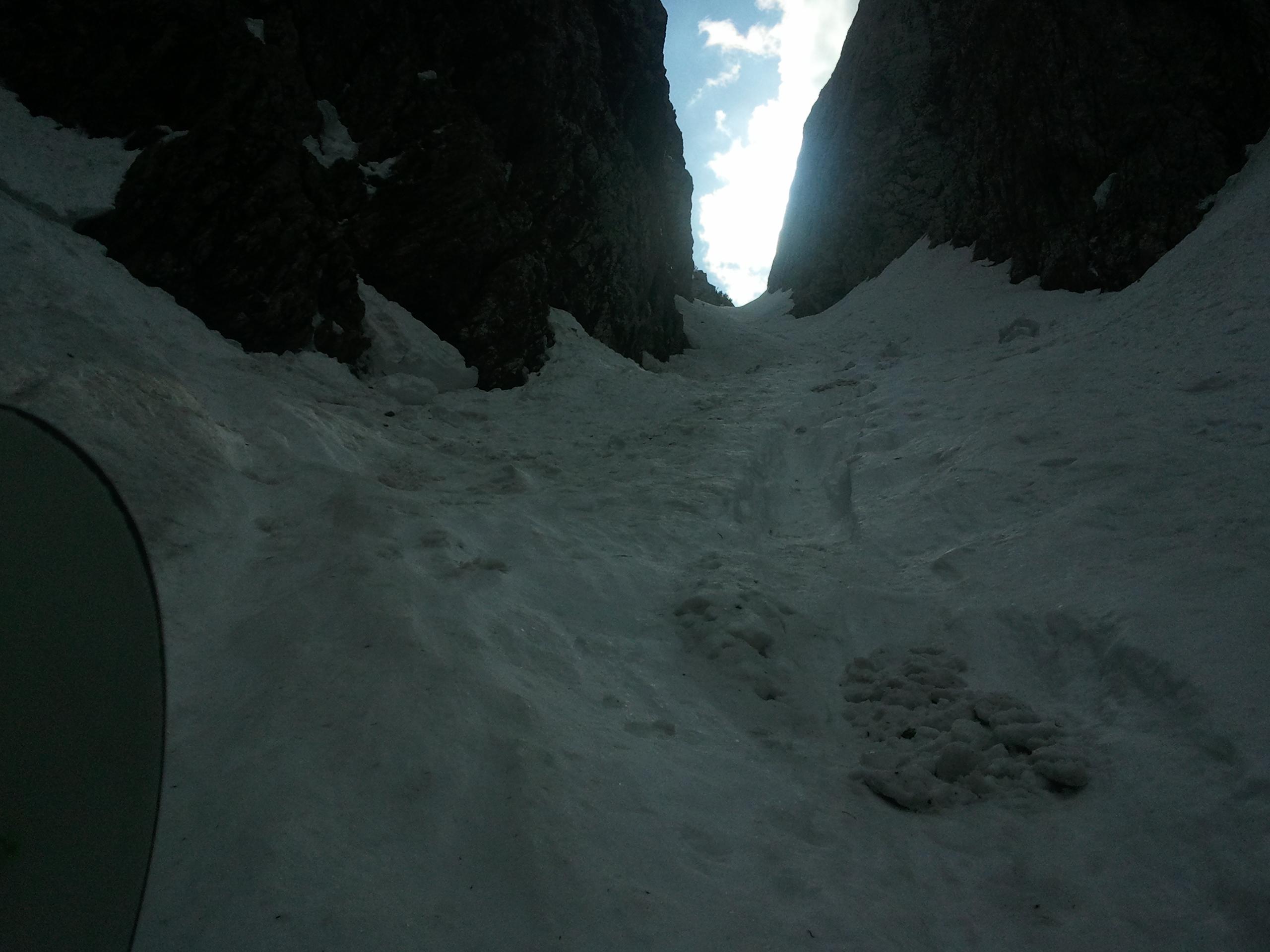 Mühsames raufstapfen in der Goasriesn. Auch in der Lawinenbahn immer Einsinktiefe