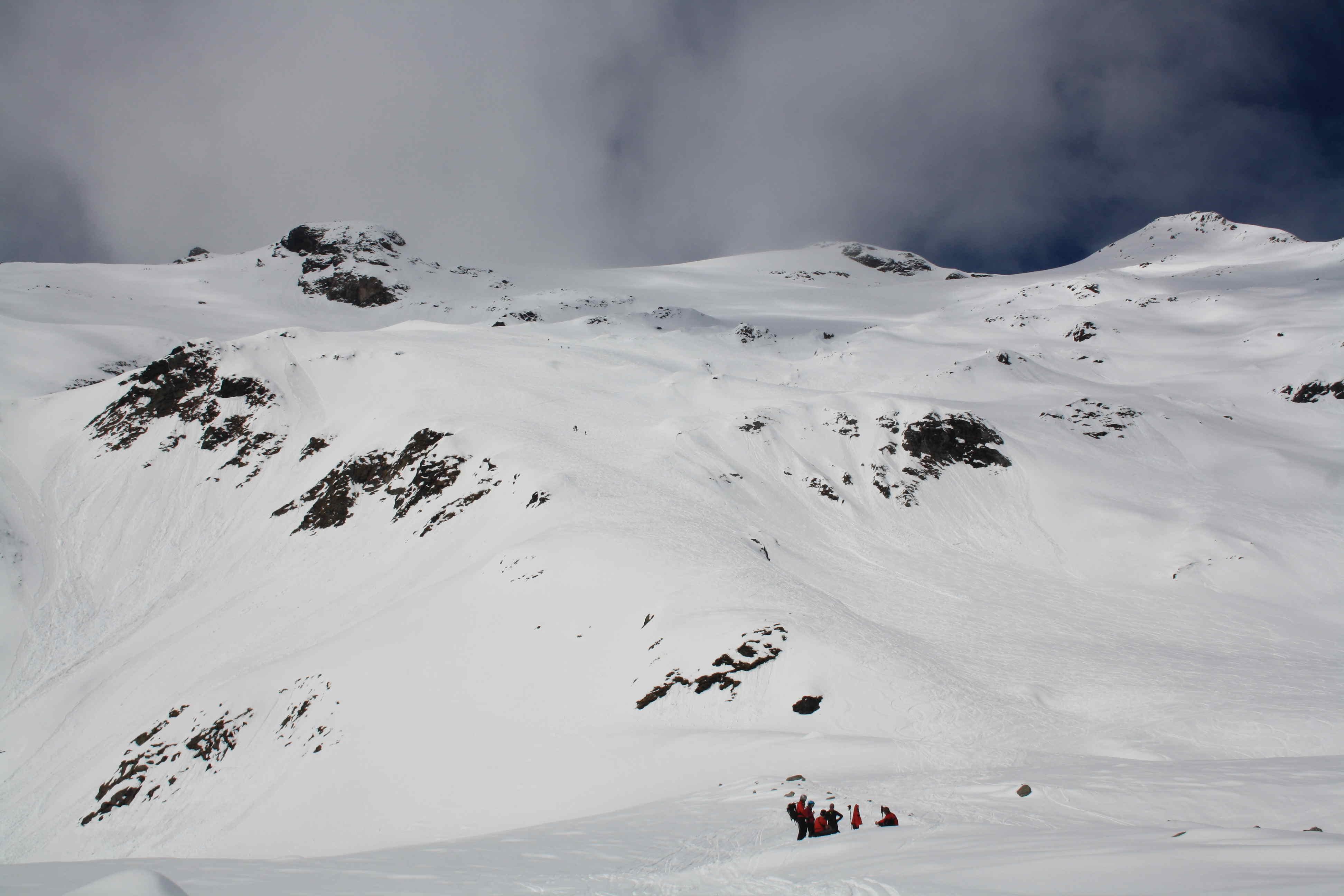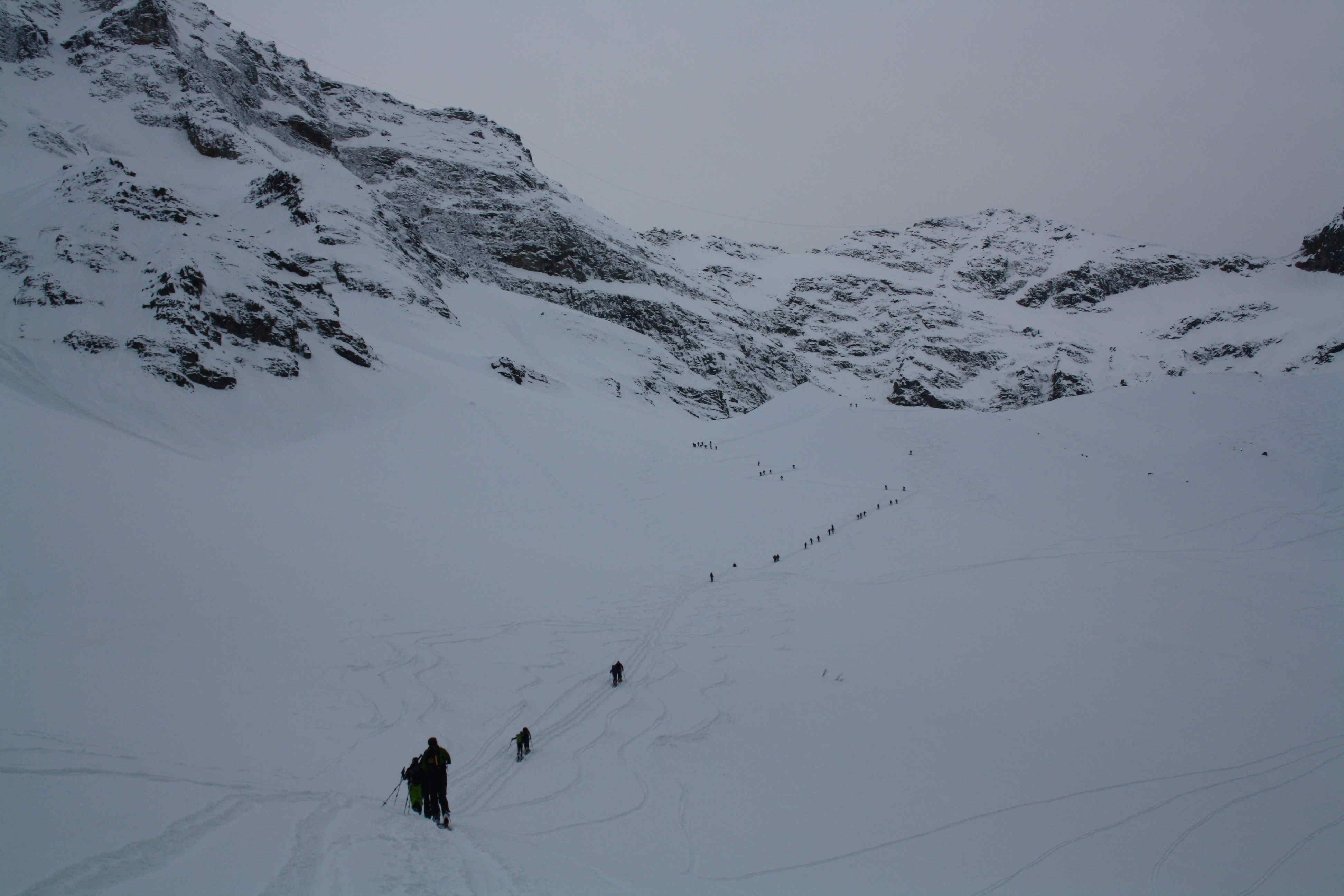 Bei der Abfahrt kurz nach 12 hat es gepasst. Nach etwas Stochern im Nebel kam dann die Sonne durch. Der Rest war kurz firnig, dann ganz gut zu fahrender Sulz.