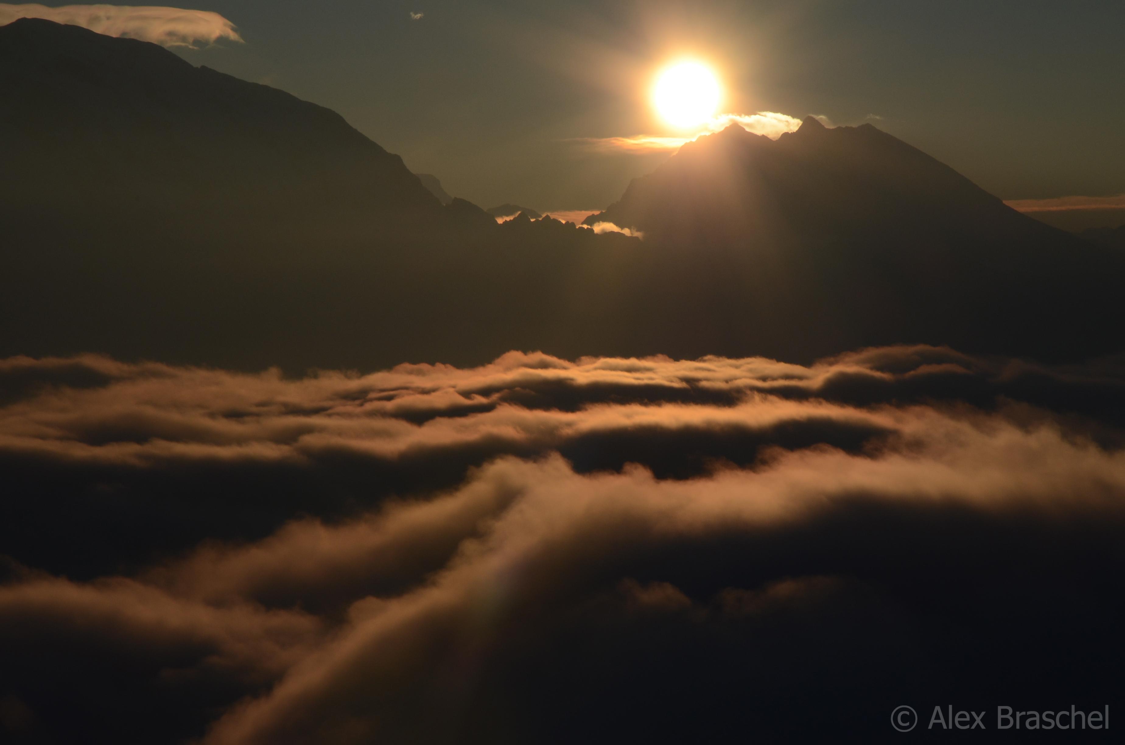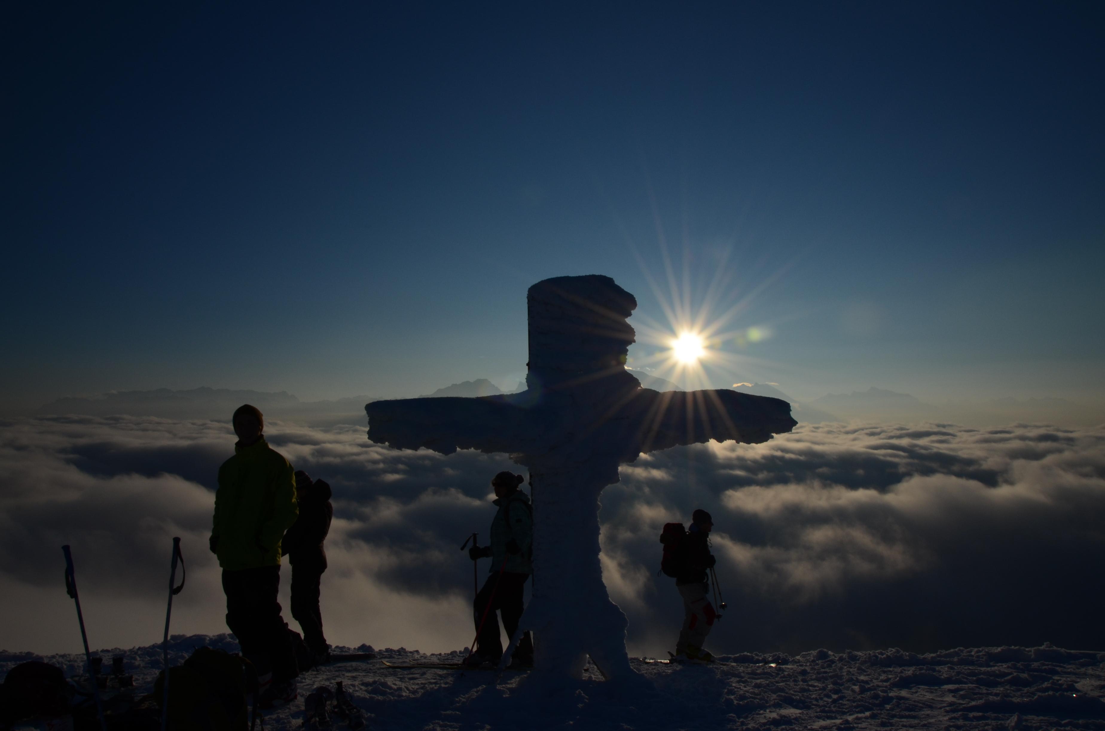 Sonnenuntergang am Wolkenmeer und 50 cm feinster Powder bei der Abfahrt.