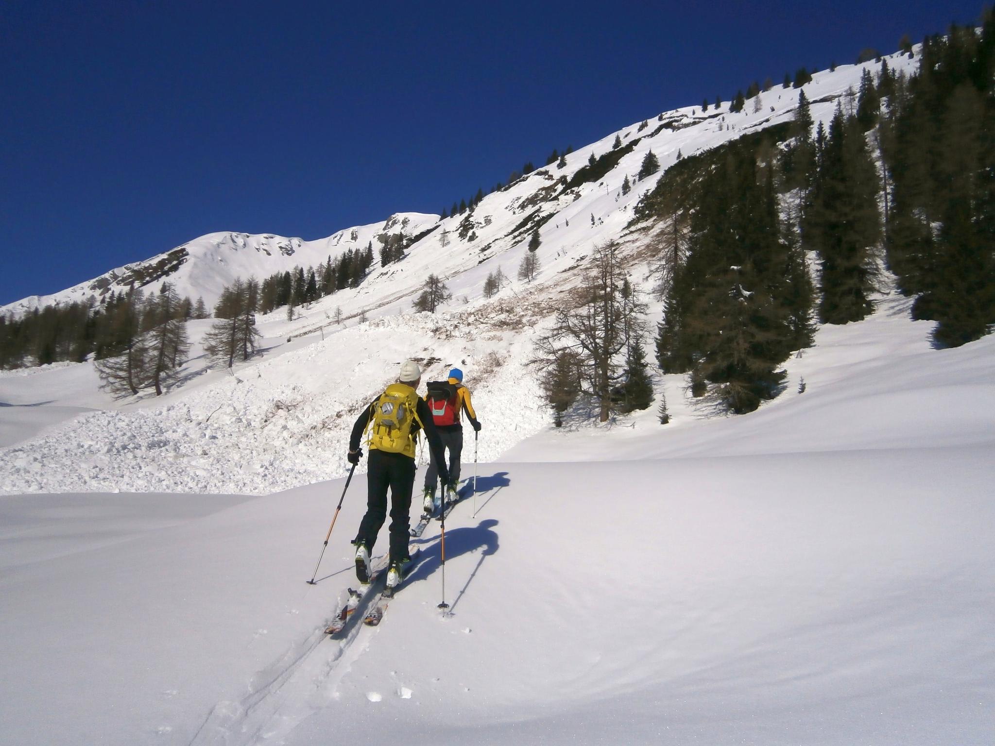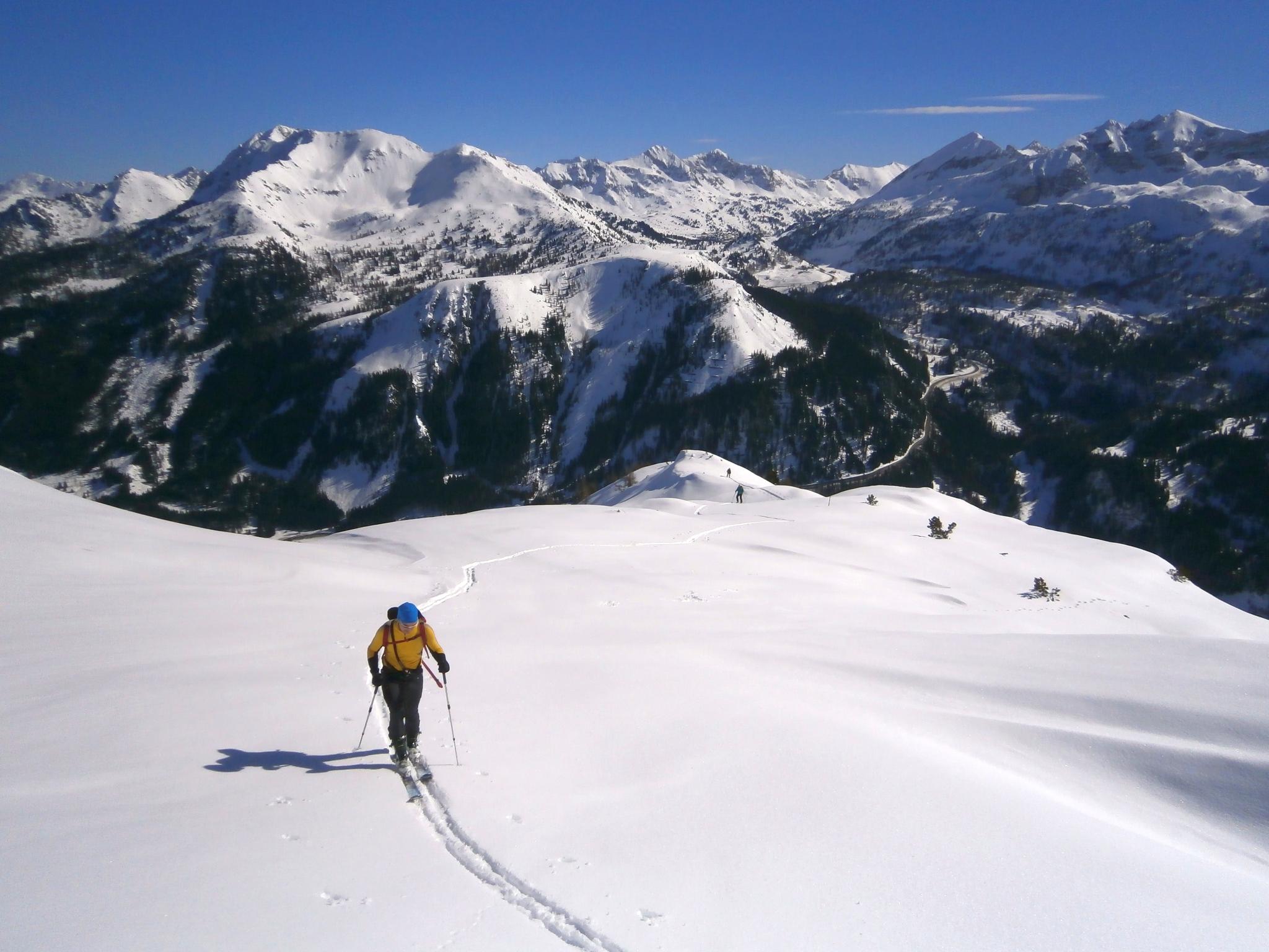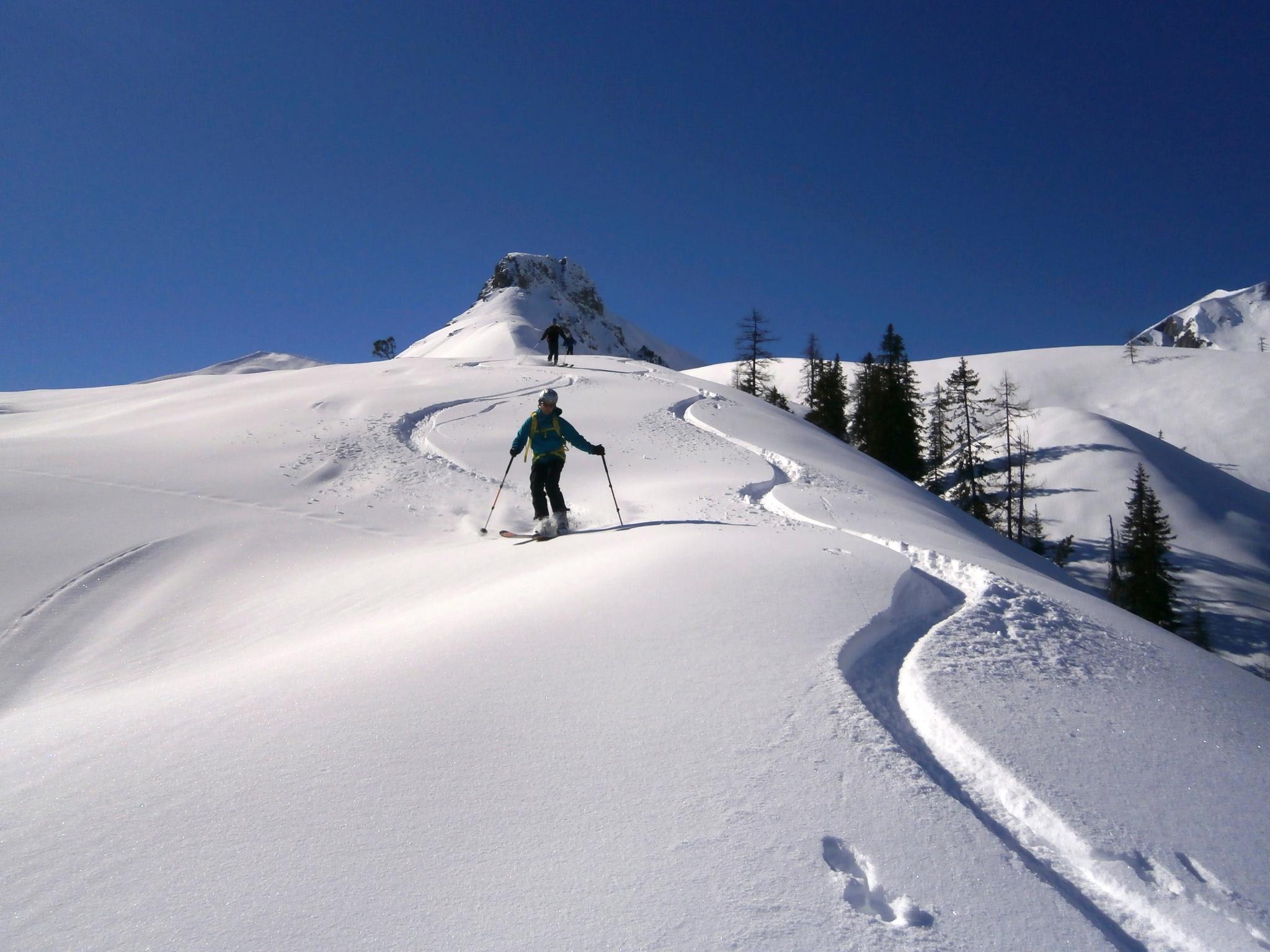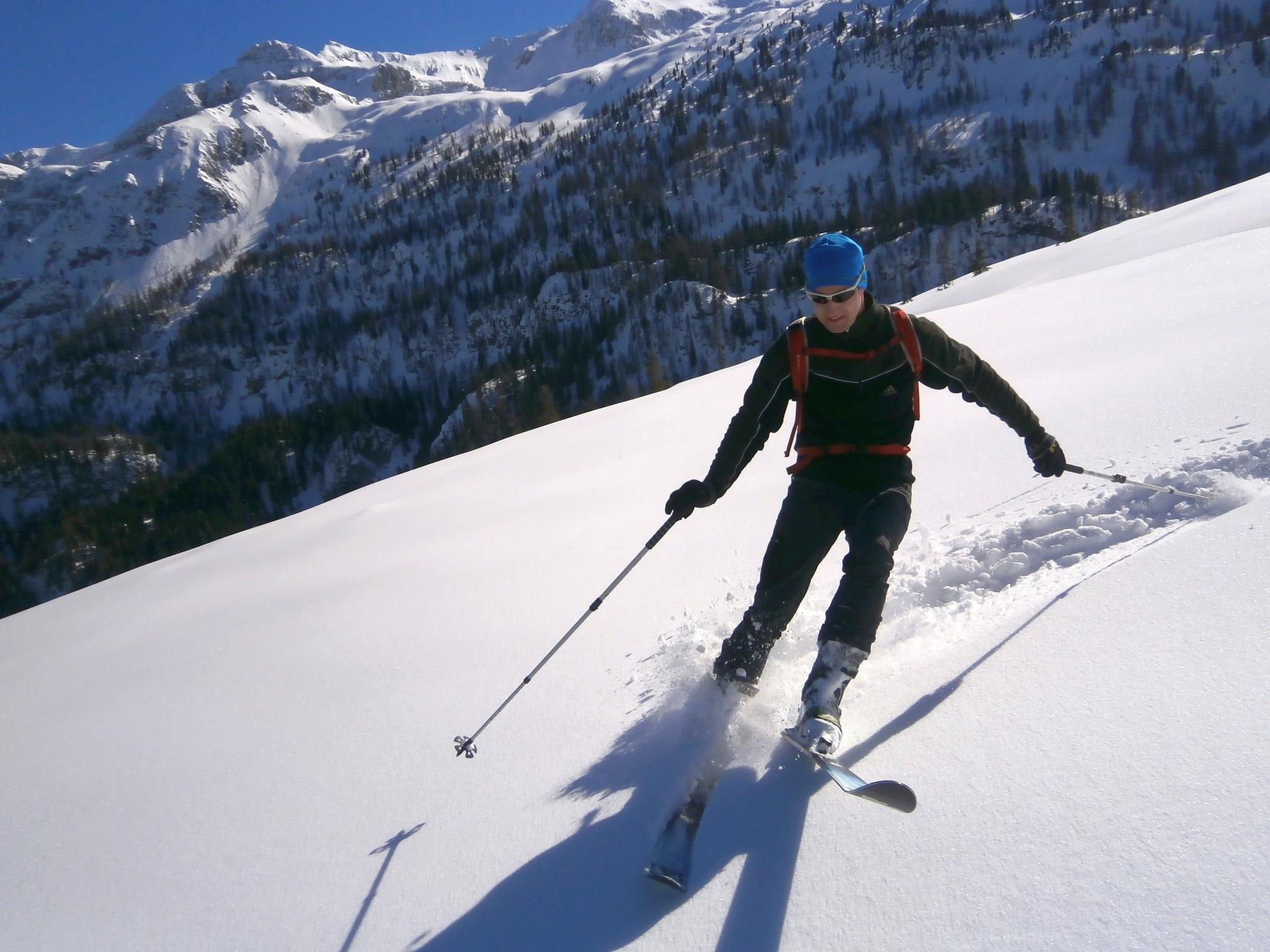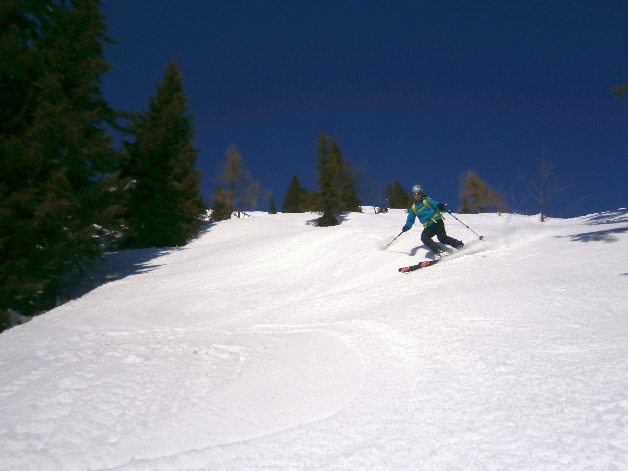 In der Hoffnung auf Firn eine süd-/südostseitige Tour gesucht und nicht enttäuscht worden: Übergangslos vom Pulver im Schatten (damit hatten wir hier nicht mehr gerechnet) auf besten Firn sonnseitig, lediglich rein ostseitig - dort wo die Sonne schon wieder weg war - mit leichter Kruste.
