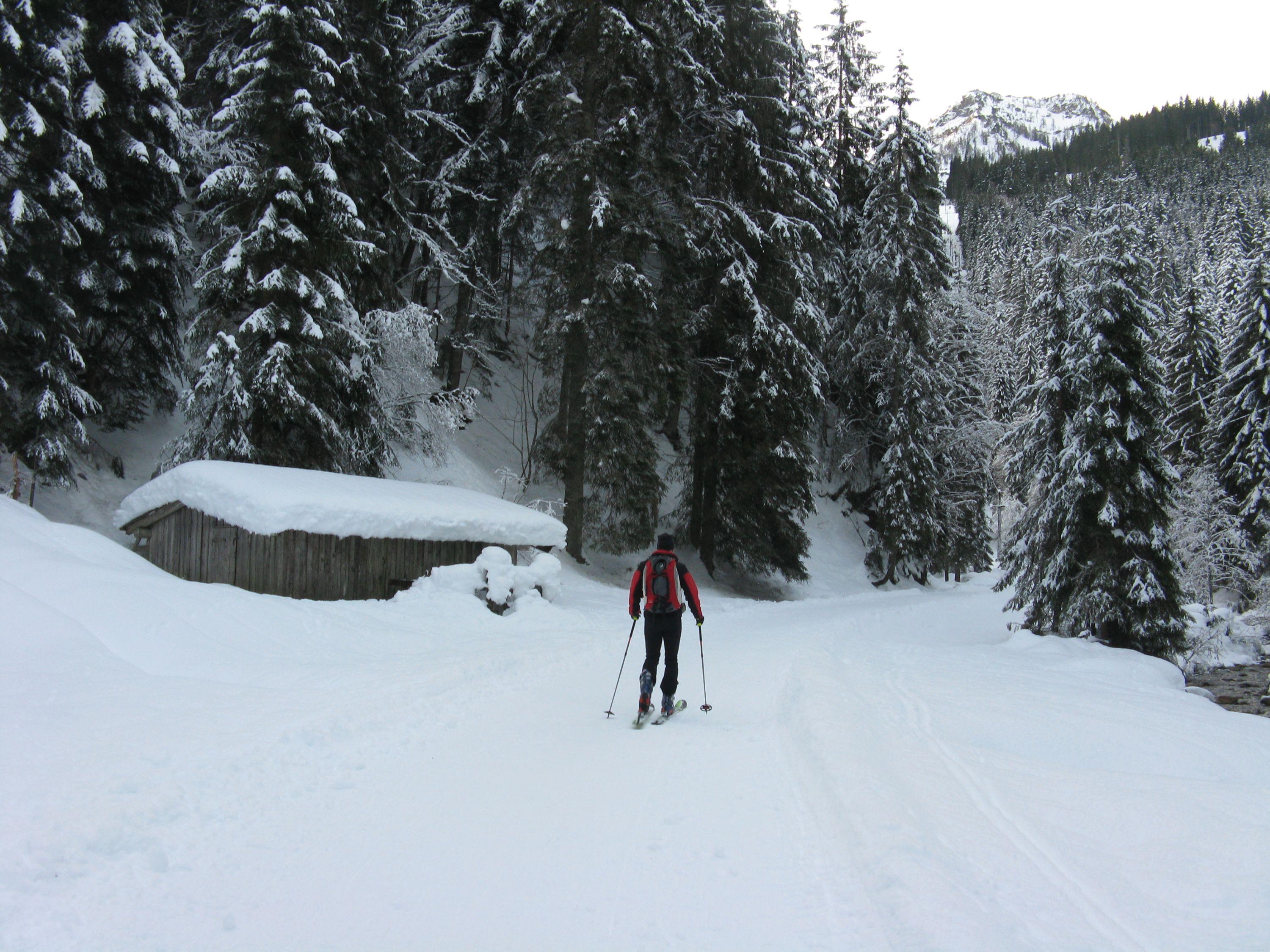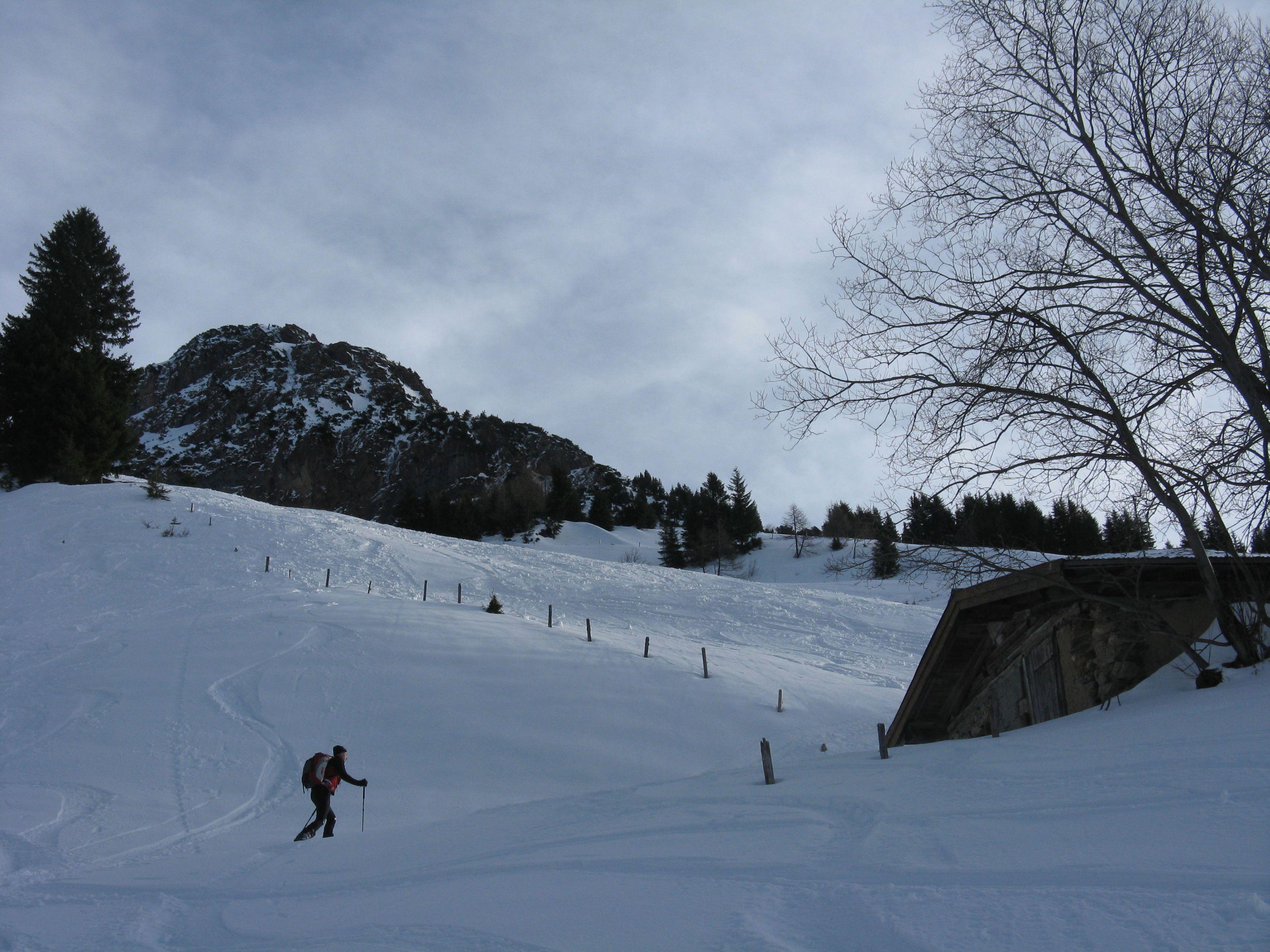 Ausgangspunkt ist ein Parkplatz hinterm Gasthaus Eiserne Hand zufahrt über Fieberbrunn.Straße zur bewirtschafteten Burgeralm ist geräumt ,aber gut befahrbar.Einfache Skitour und bei -11 Grad am Parkplatz wird man nach einer langen Sylvesternacht rasch wieder munter.Verhältnisse wie schon bei den anderen Kitzbühler Touren beschrieben,im Schatten schöner gesetzter Pulver, bis in den Talgrund, in den Sonnenhängen leichter Harschdeckel