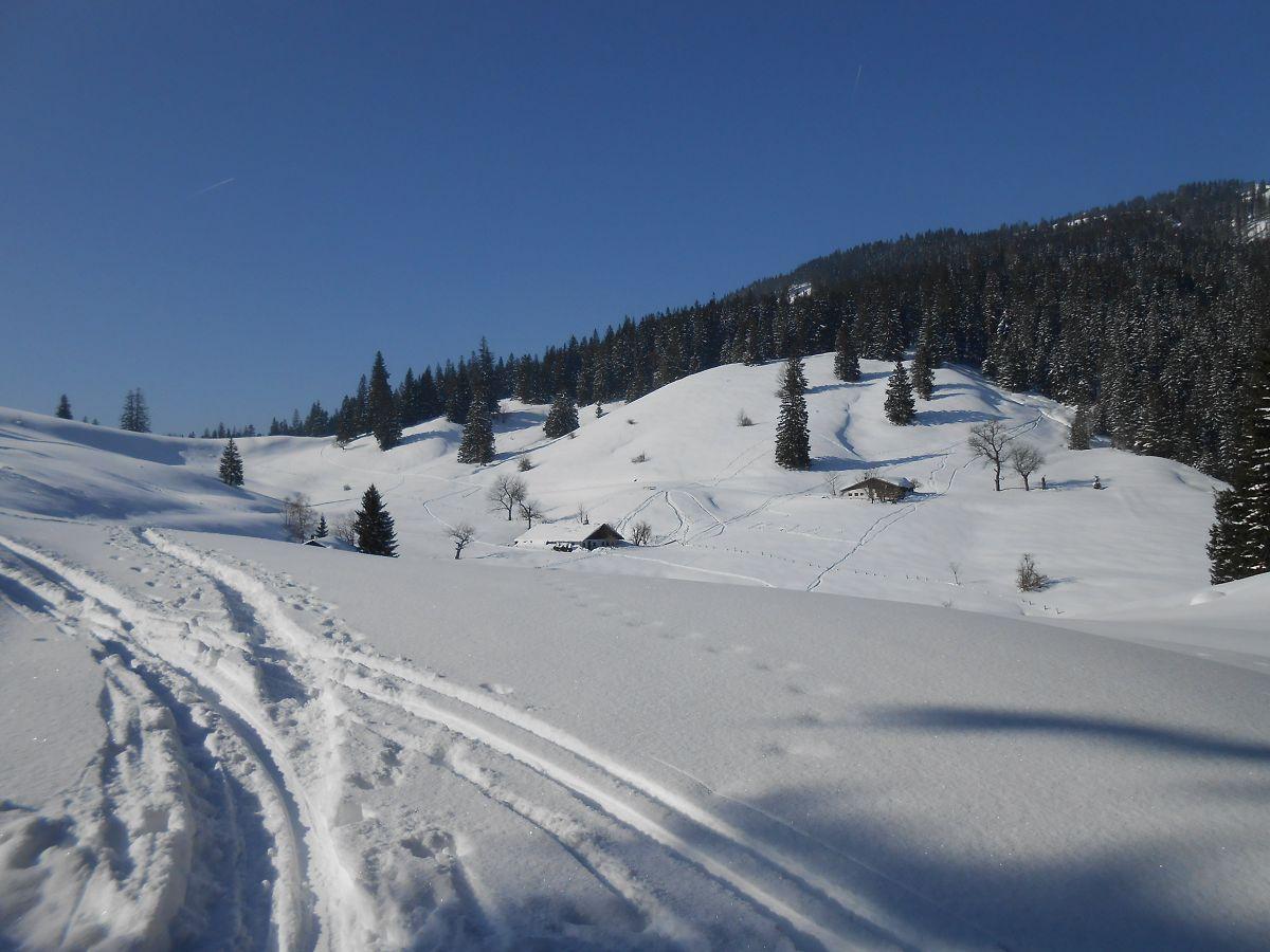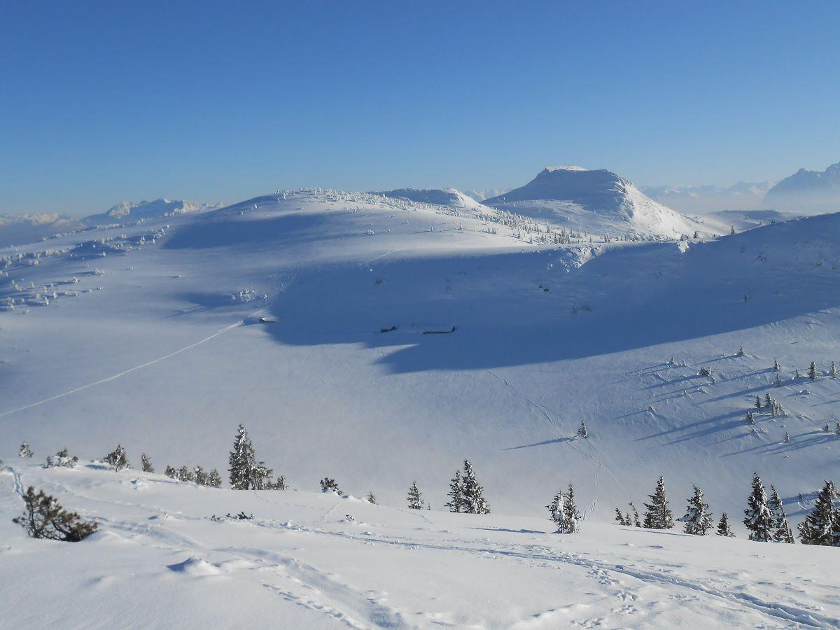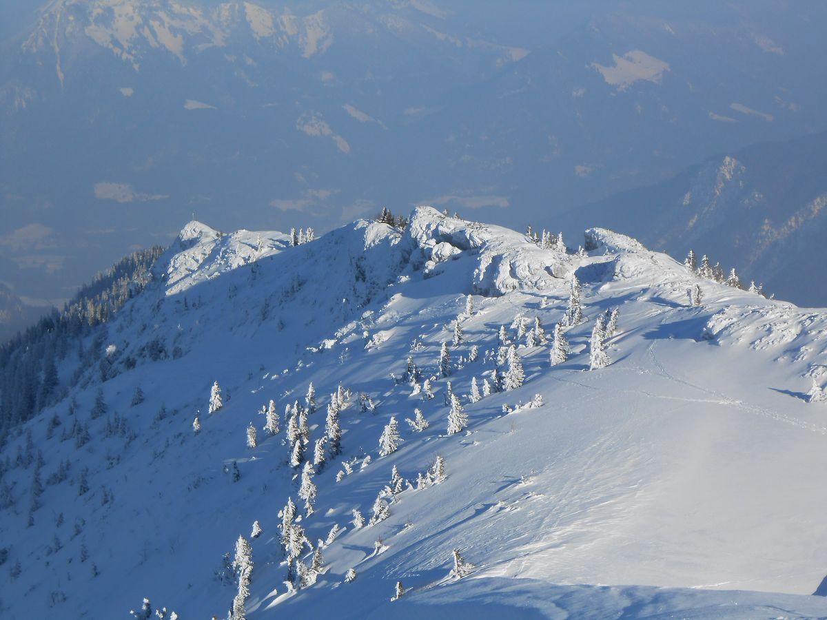Heute bei strahlendem Sonnenschein eine Skitour unternommen, die für mich ca. 20 Jahre auf Eis lag. Die Forststraße ist z.Zt. gut zu befahren, dies ist bei ihrer Länge (ca. 4 km) wichtig. Aufstieg über die Wiesen oberhalb der Dalsenalm und dann teilweise im Wald. Querung unter den Aschentaler Wänden problemlos, fester Untergrund mit bester Pulverauflage. Als Gipfel ohne Kreuz bot sich der Tauron an, dann Abfahrt auf dem Rücken in Richtung Weitlahnerkopf und kurz vor dem Kreuz links in die Nordflanke, geht selten! Abfahrt im unverspurten Wald ein Gedicht! Dort ist noch viel Platz für eigene Spuren.