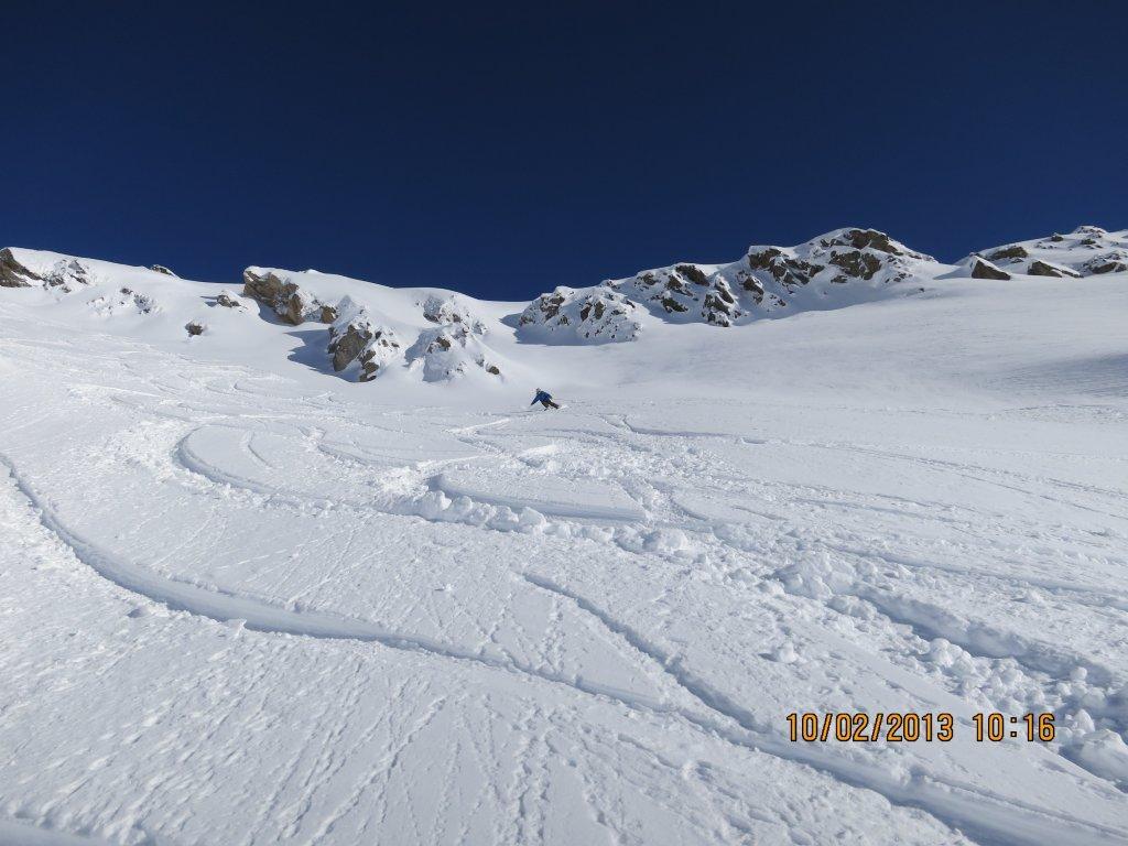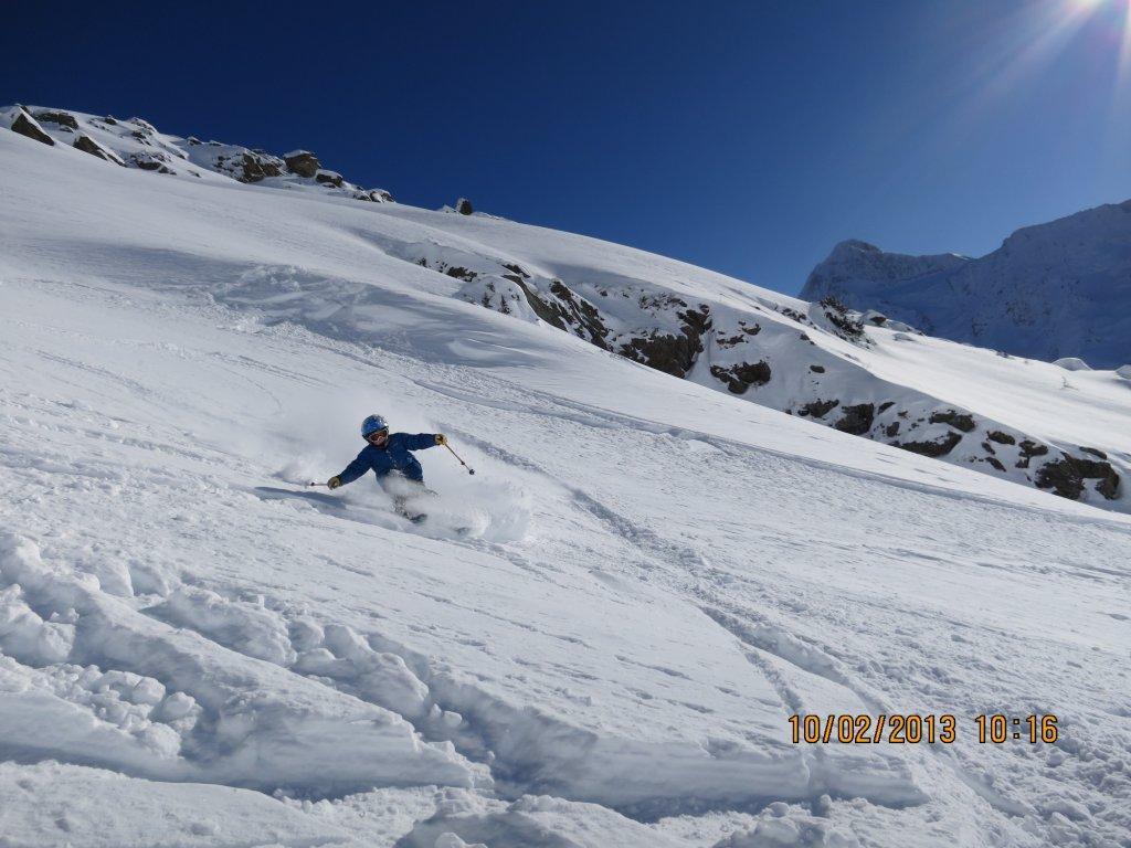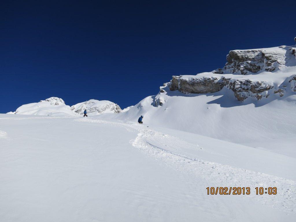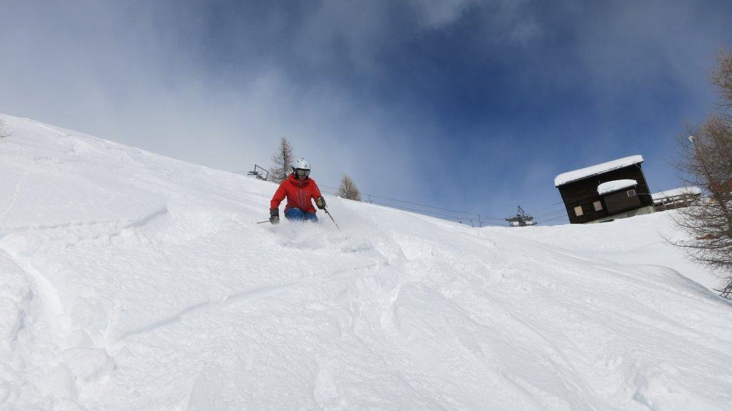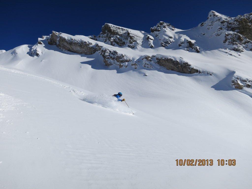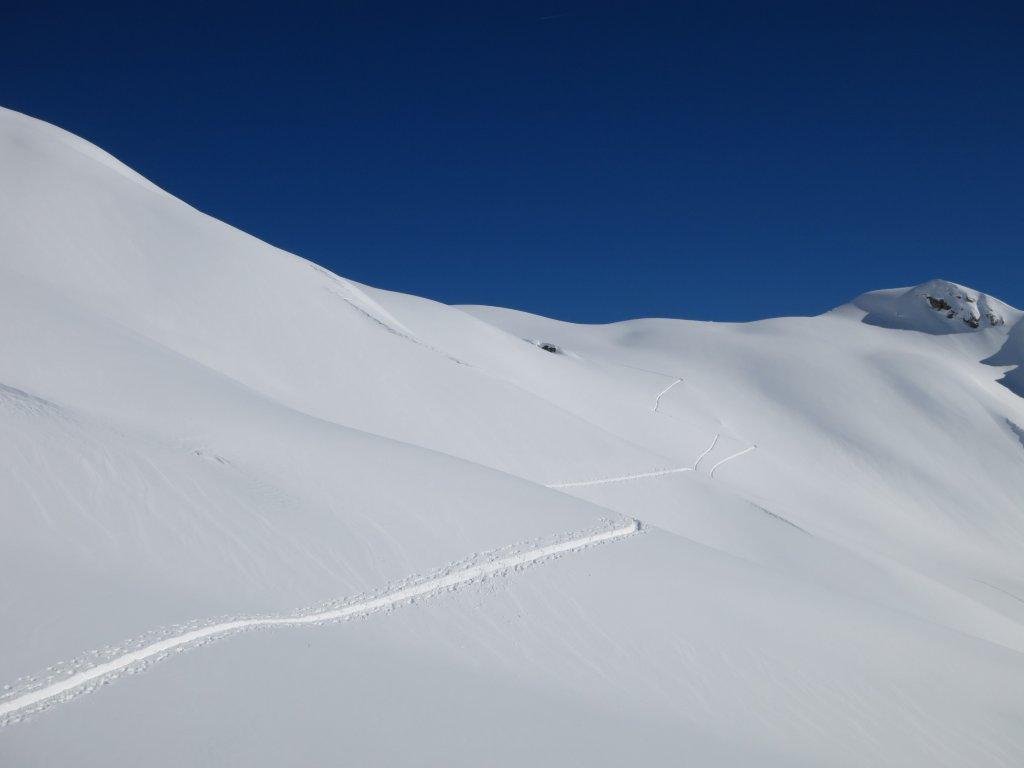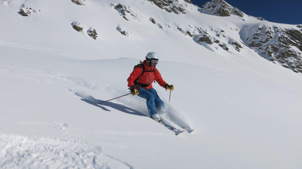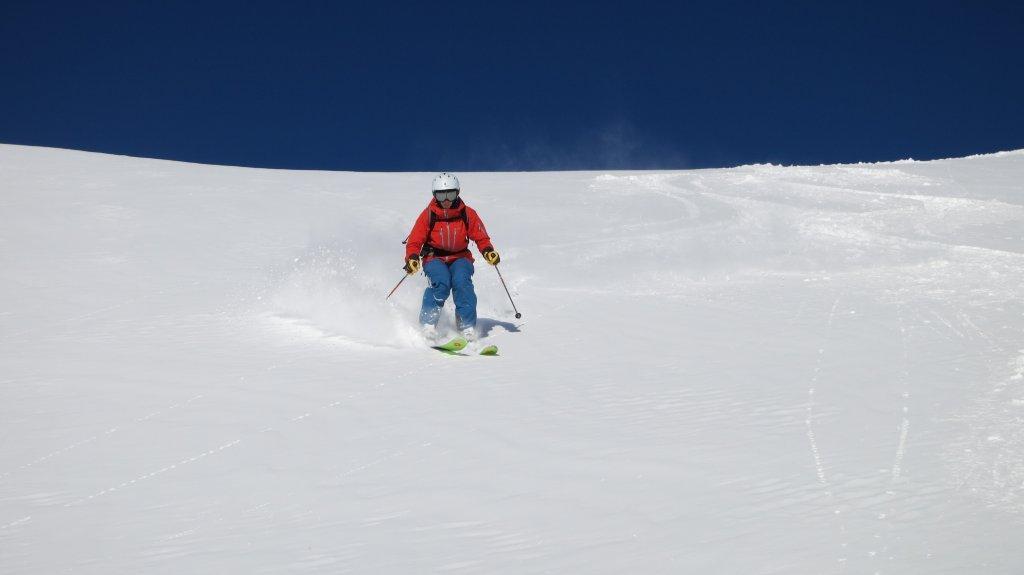 Die Abfahrt haben wir über den 38 Grad steilen Hang im Tellin nach Blatten gewählt.