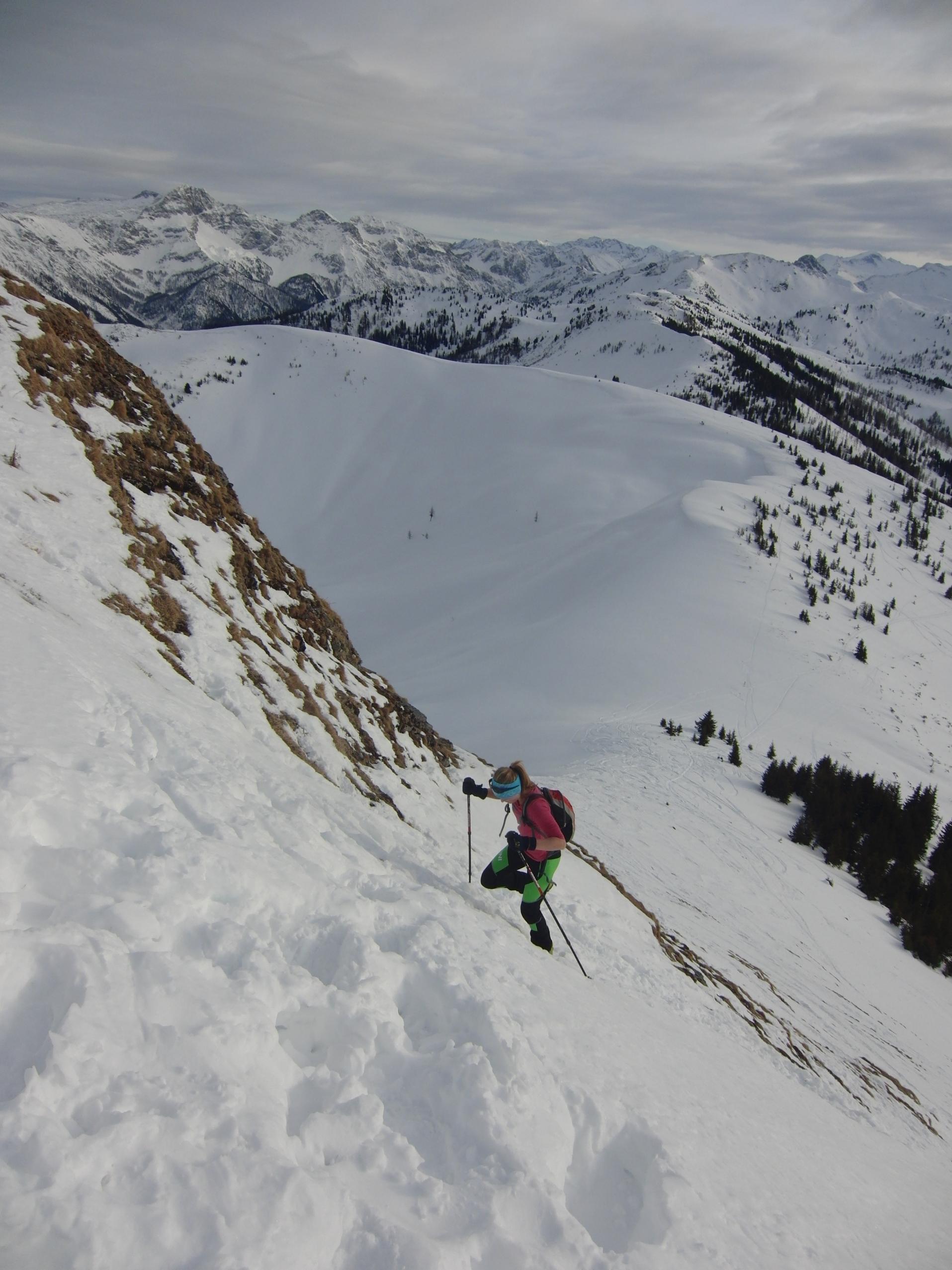 Sonntagsnachmittags-Tour mit meiner Tochter Hannah. Von der Auschule über die Breiteneben auf die Gabel (Kitzstein) - die meisten sparen sich die ersten 400Hm und fahren mit dem Auto bis zum Breiteneben-Parkplatz, verschenken aber so ein paar schöne Wiesen. Ideale Tour zum Reinschnuppern in das Tourengehen. Naturgemäß viele Spuren - mit etwas "Kreativität" lassen sich aber auch noch unverspurte Bereiche finden.