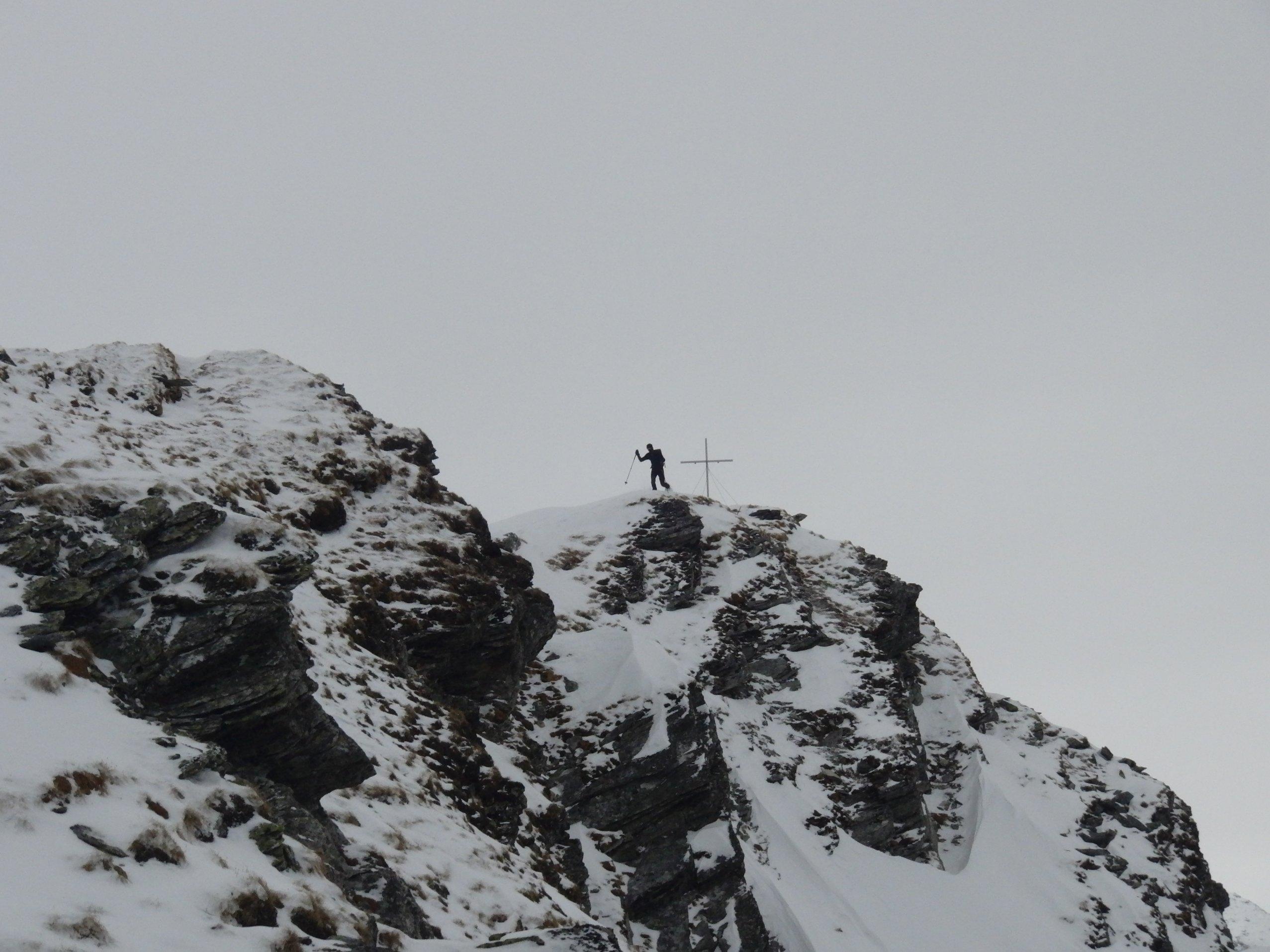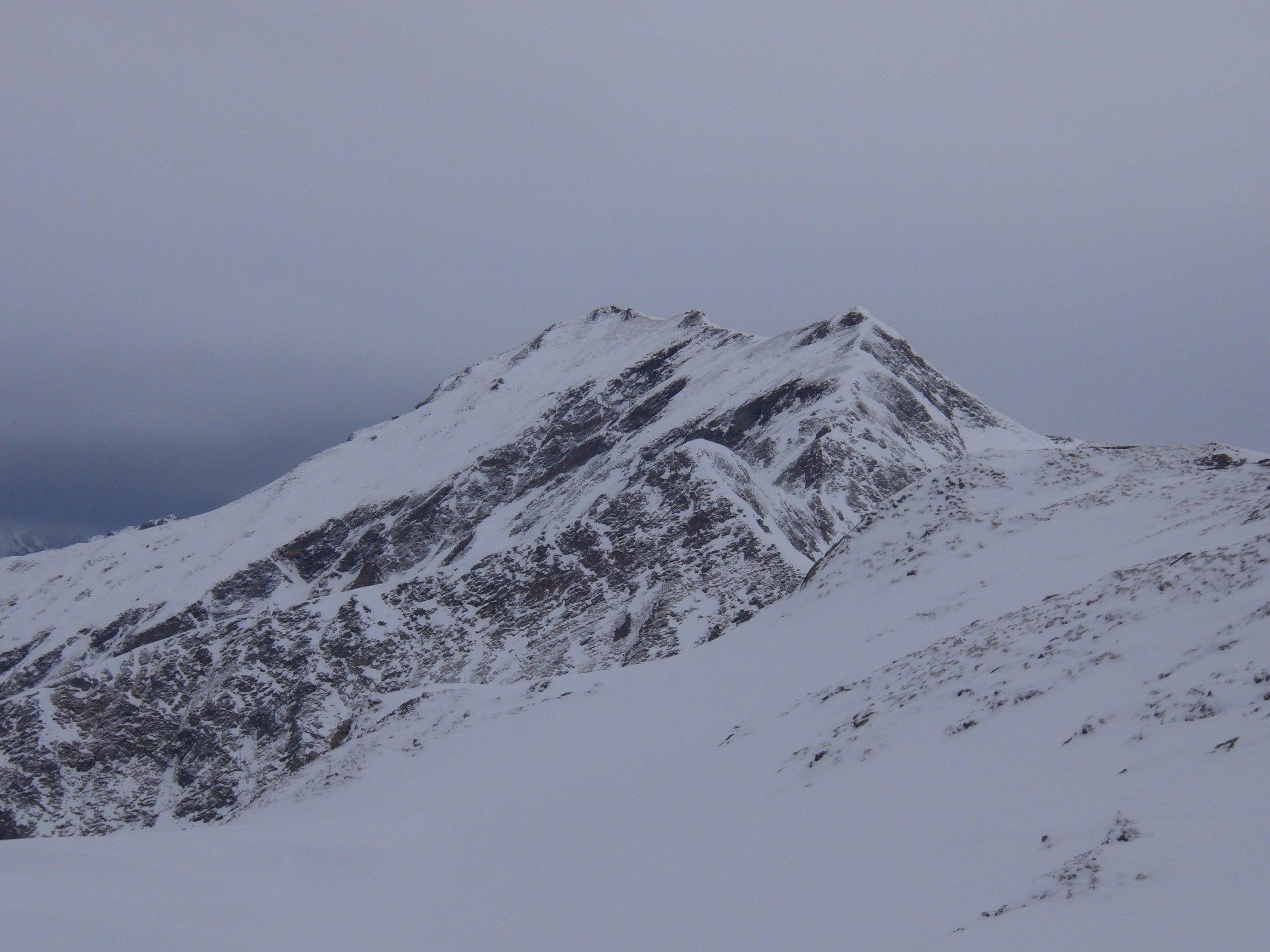 Aufstieg über Stockham und Kree-Alm zum Schöderhorn. Bis zum Kree-Alm geht es sowohl im Aufstieg als auch bei der Abfahrt über den Güterweg. Anders wär es aufgrund der Schneelage nicht möglich. Ab der Kree-Alm wird die Situation etwas besser. Ab ca. 2000 m Höhe ist es, wie beim Schöderhorn üblich, recht abgeblasen. Viele Granit-Blöcke schauen noch raus.