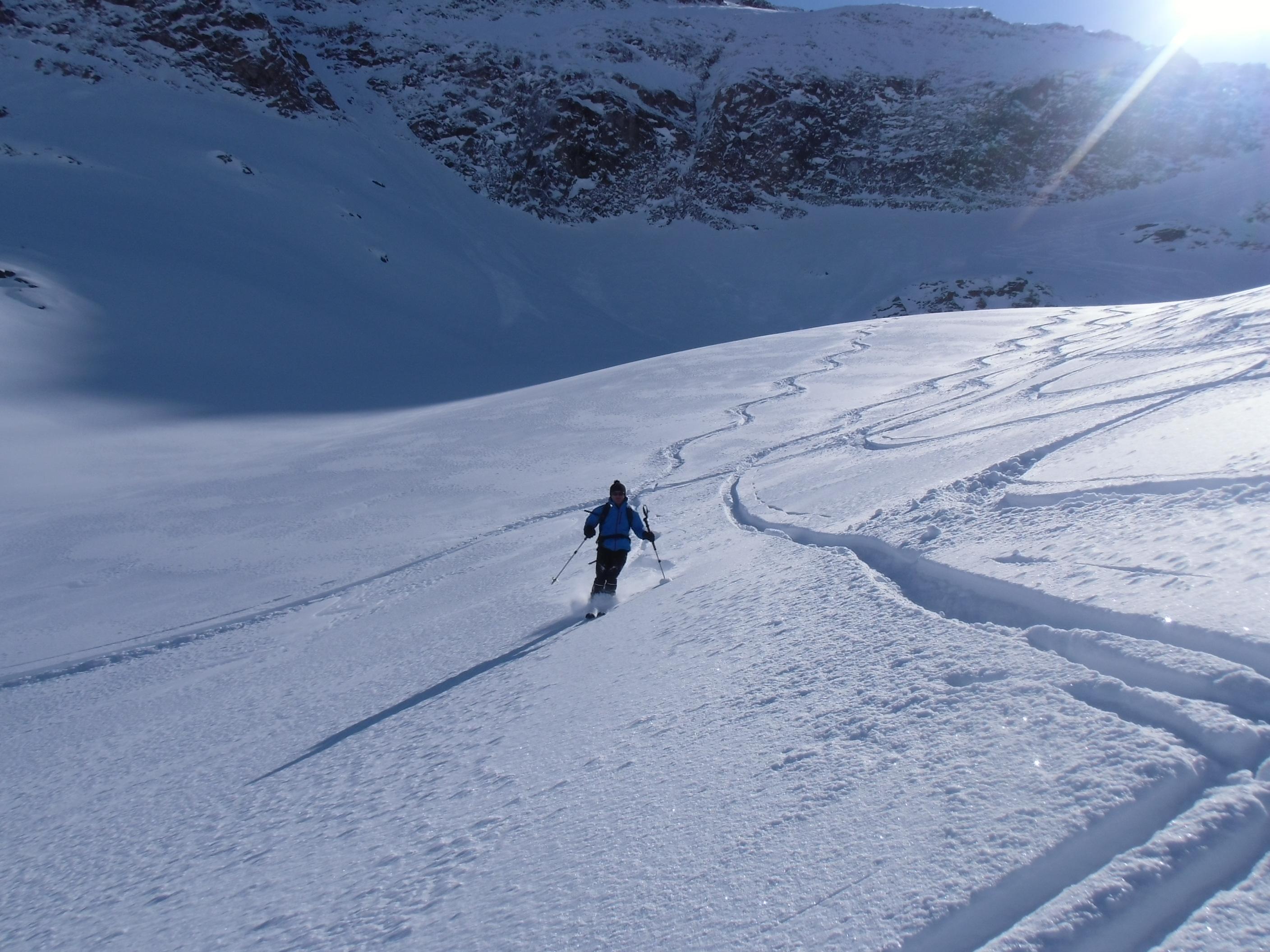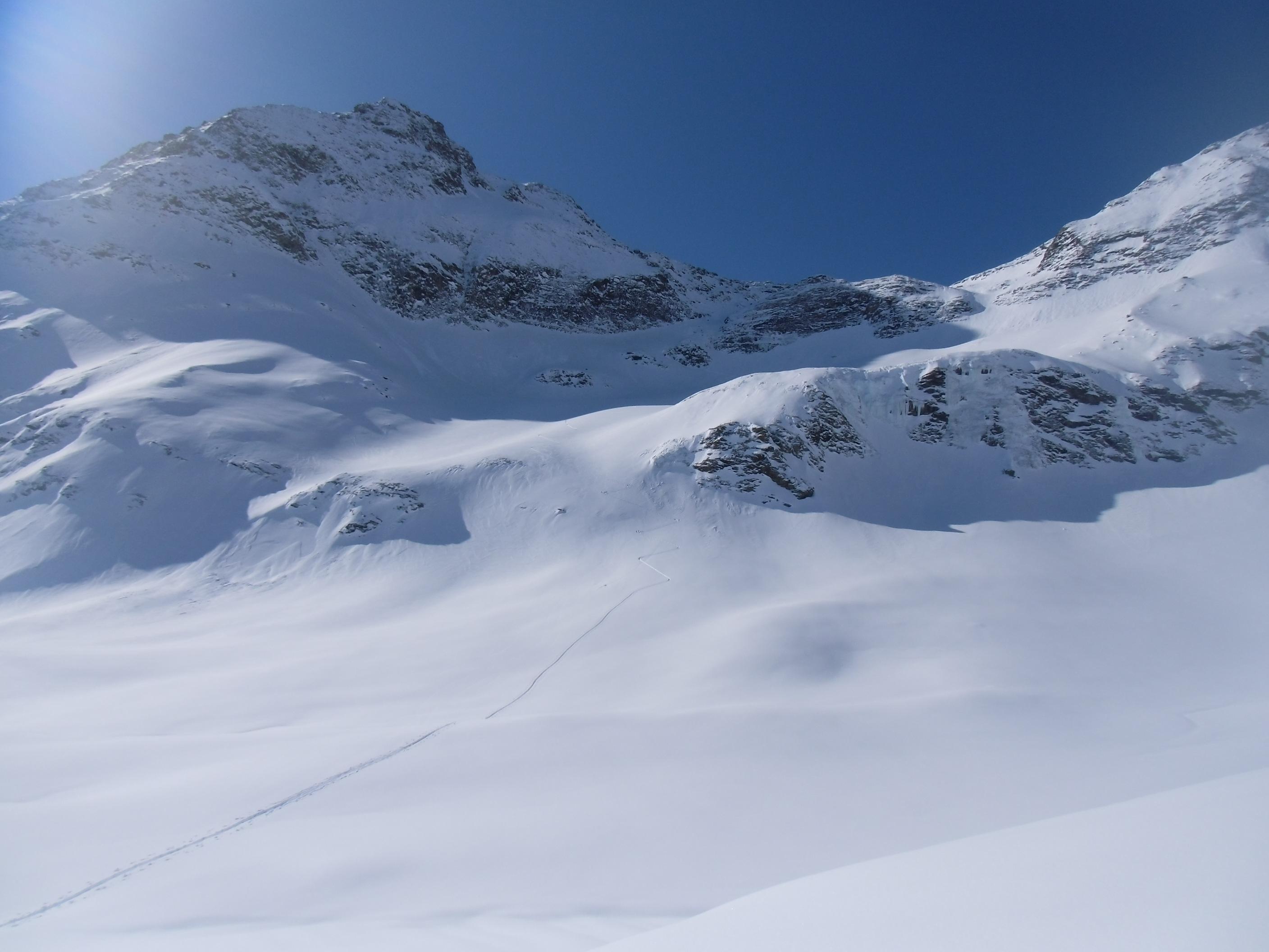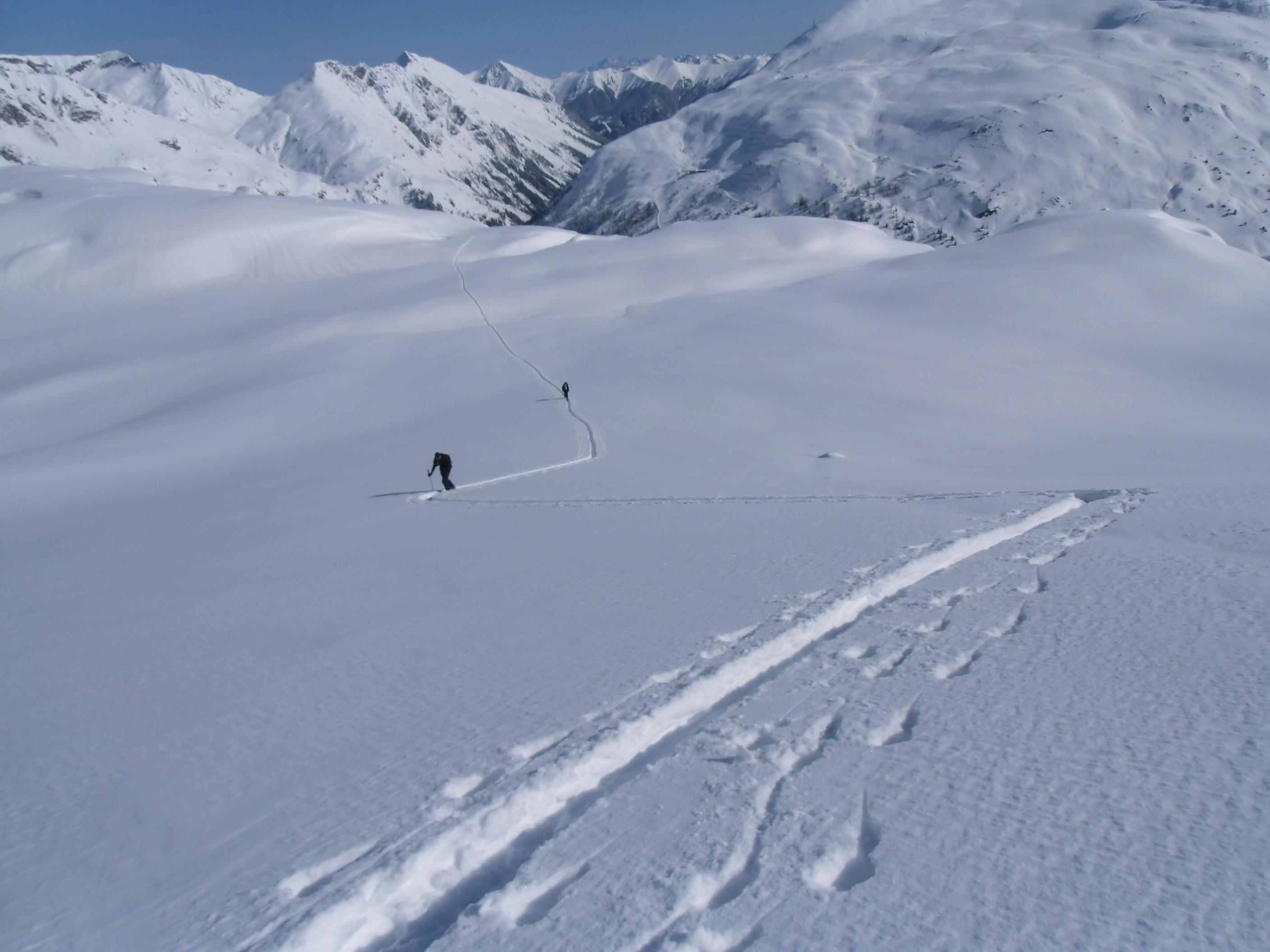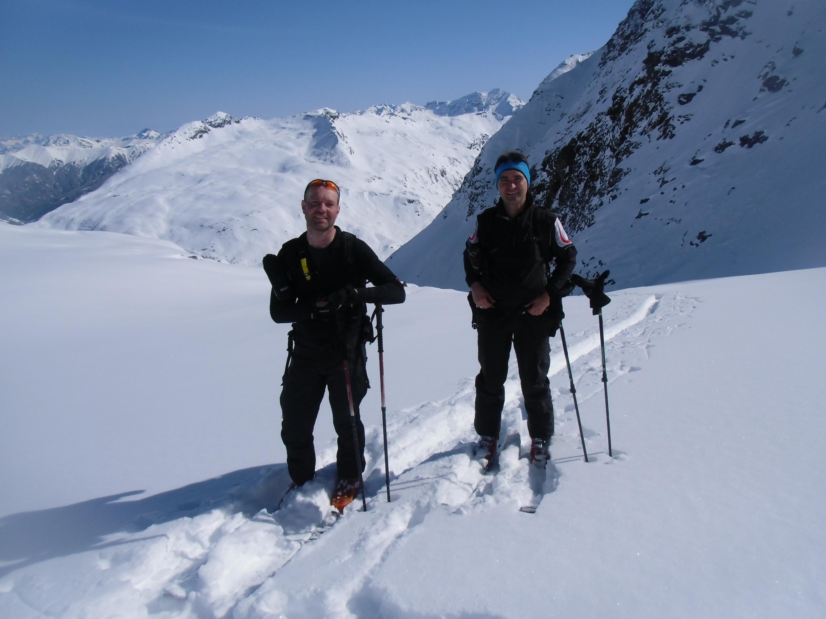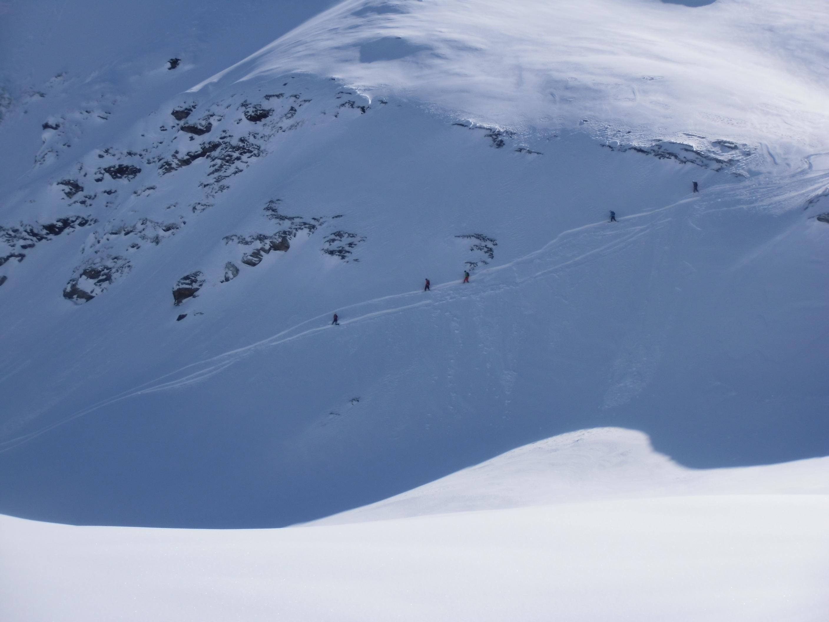 Sonnenseite entschieden. Bei der ersten Rinne und beim letzten Anstieg auf die Baumbachspitze
