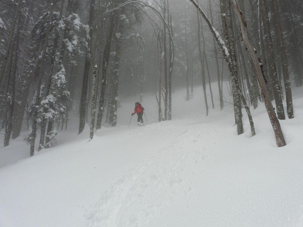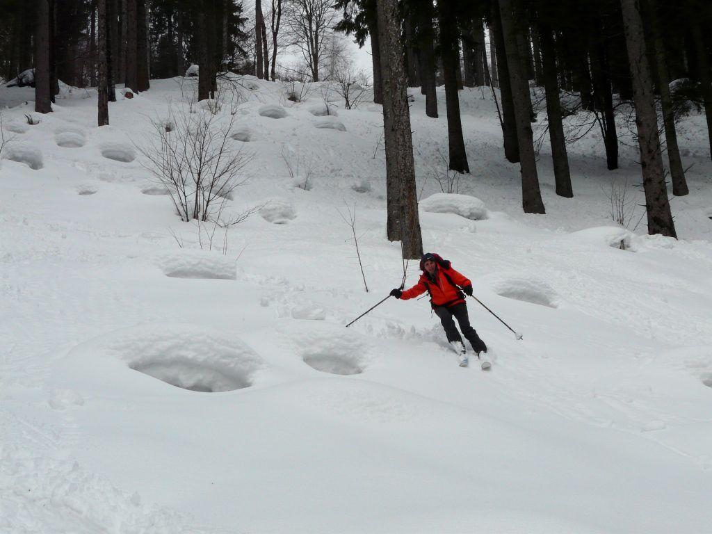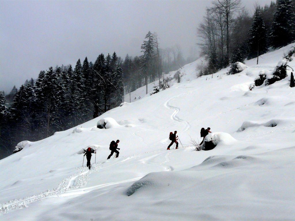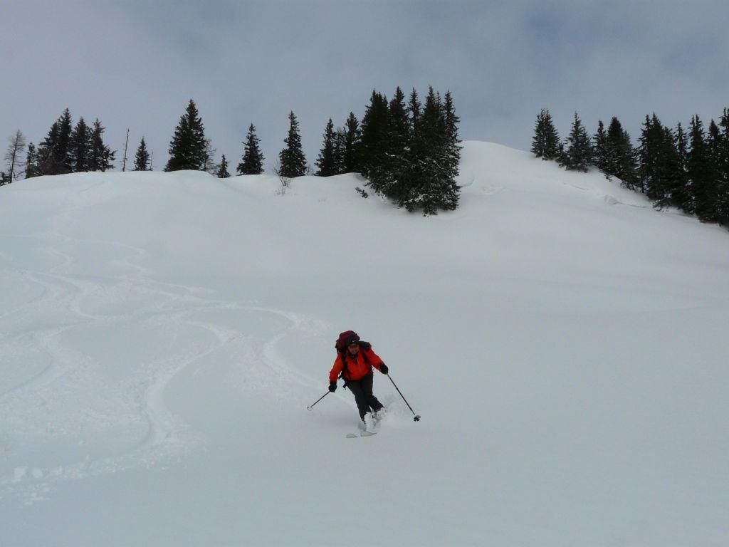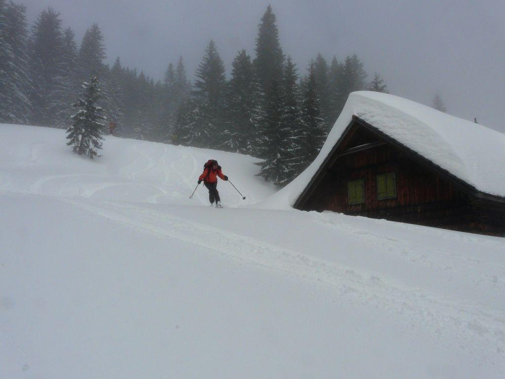 Charakteristik: bis knapp vor der Wurzeralm tiefer Pappschnee, danach leicht gepresster bis lockerer Pulver.