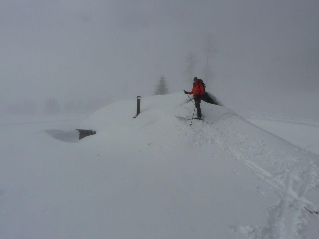 Danke an unsere Vorgänger, die wohl eine sehr mühsame Spurarbeit hatten, die Wetterbesserung kommt für uns heute leider etwas zu spät.