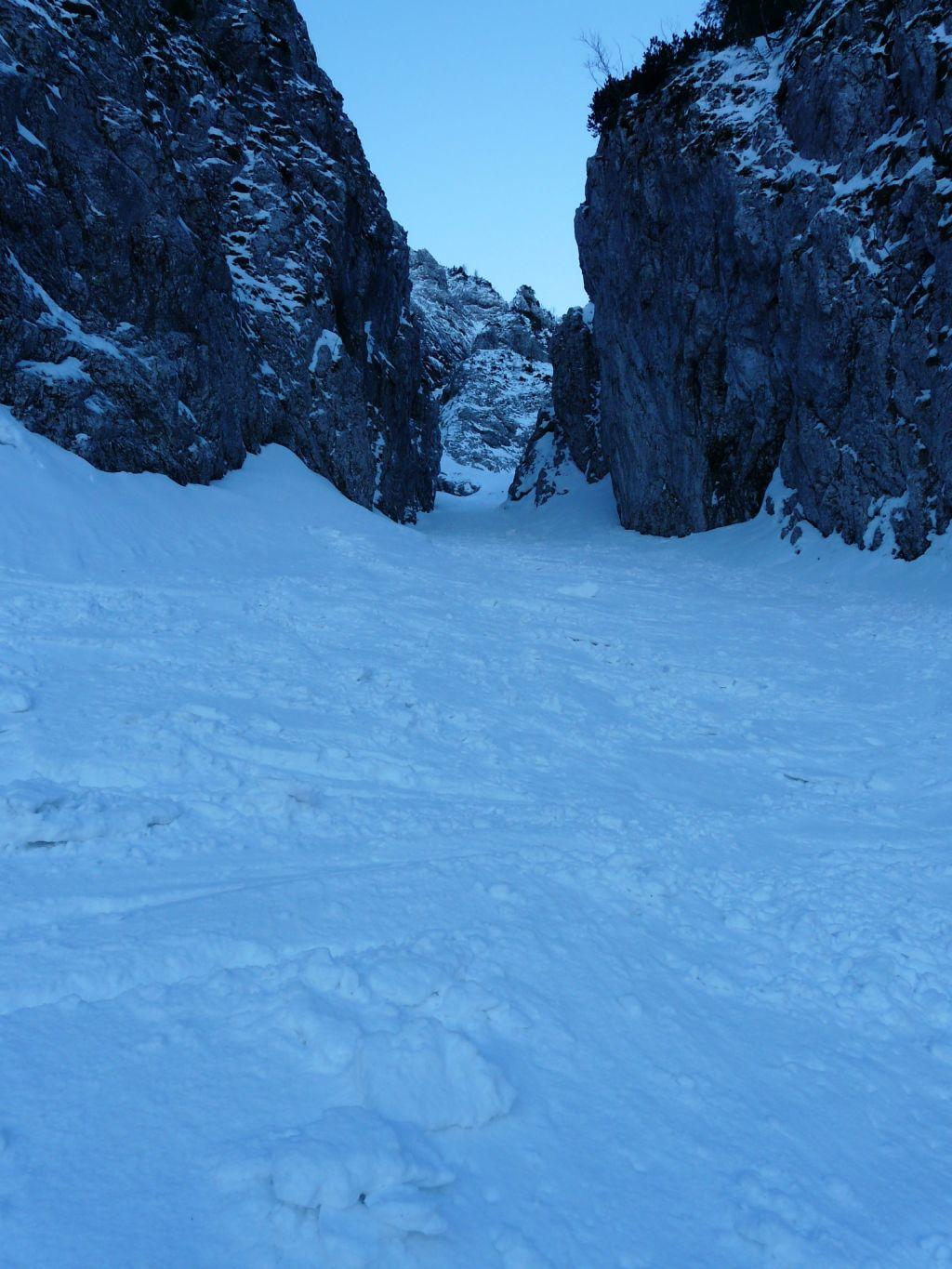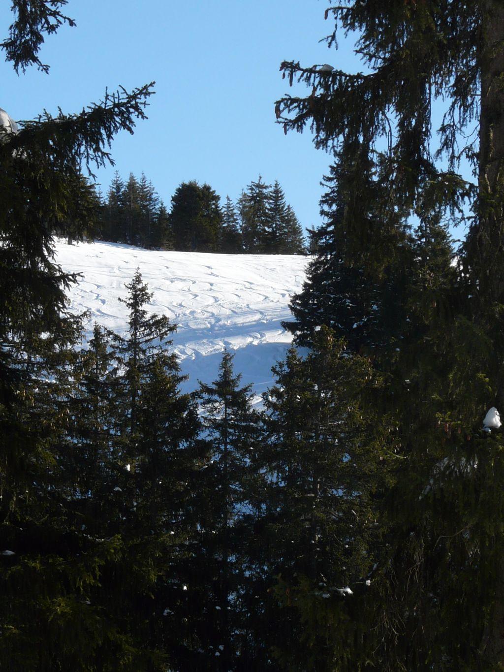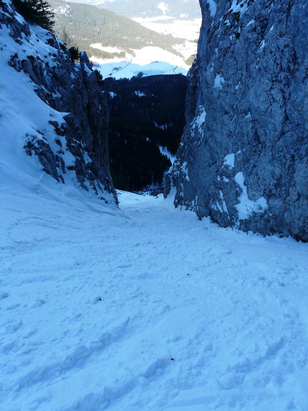 Abfahrt durch die Roßgasse gute Schneeverhältnisse teilweise 10cm Pulverschnee auf einer harten tragenden Harschschicht.