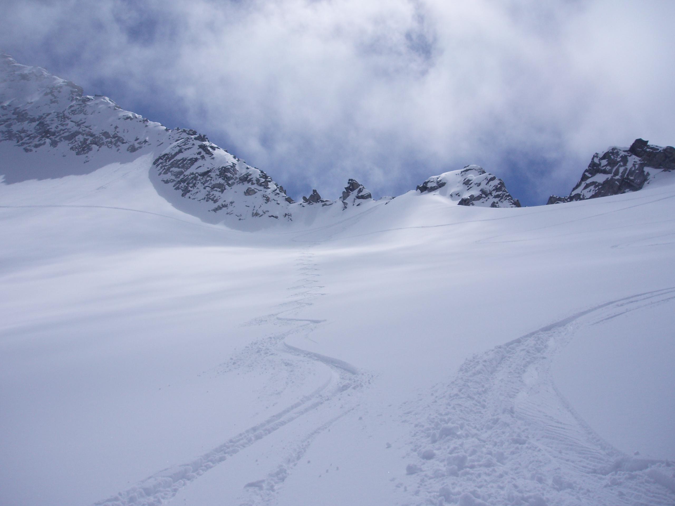 Sensationell war auch der traumhaft schöne Pulverschnee. Unterhalb ca. 2300m war er dann schon leicht angewärmt.