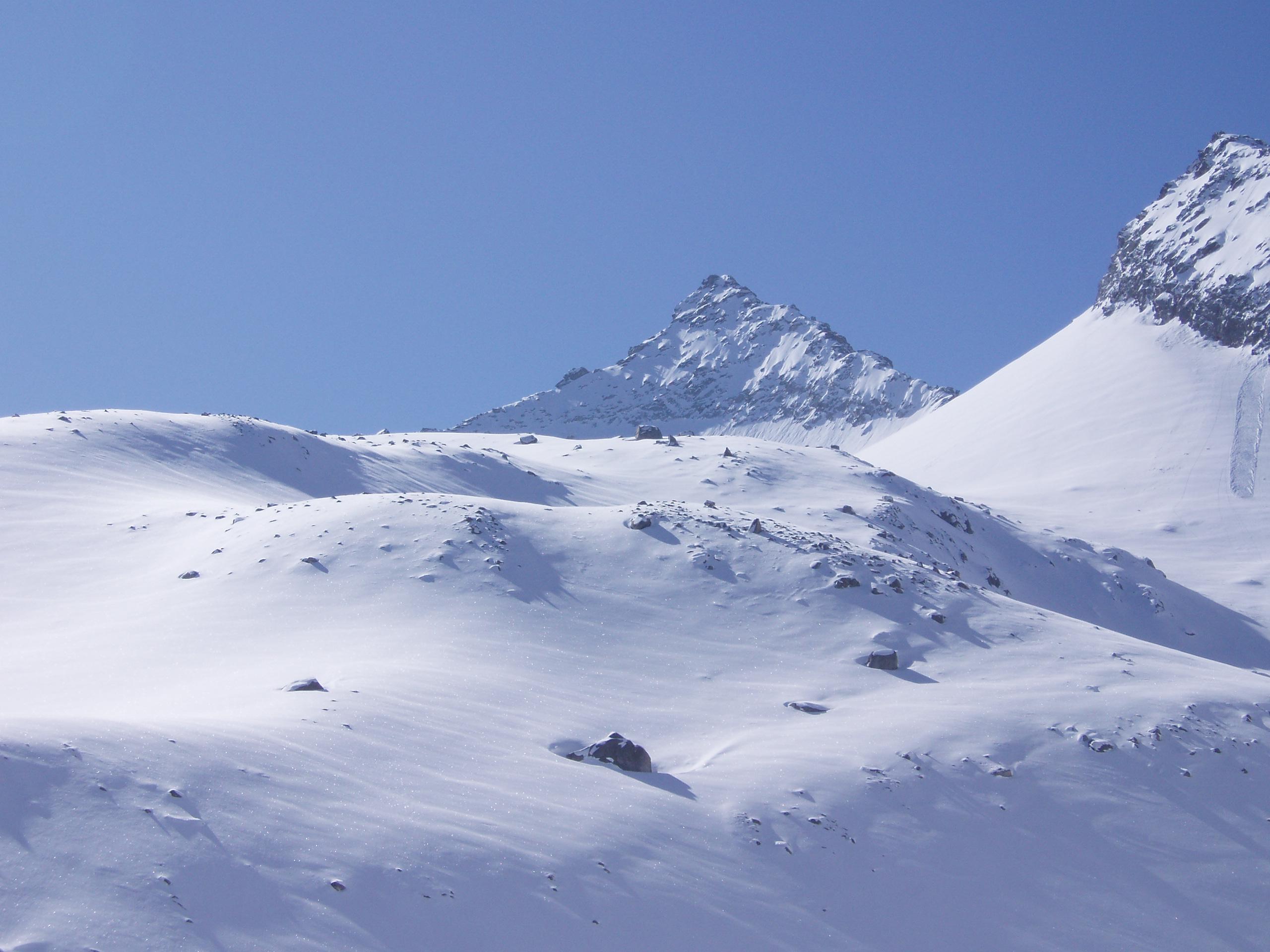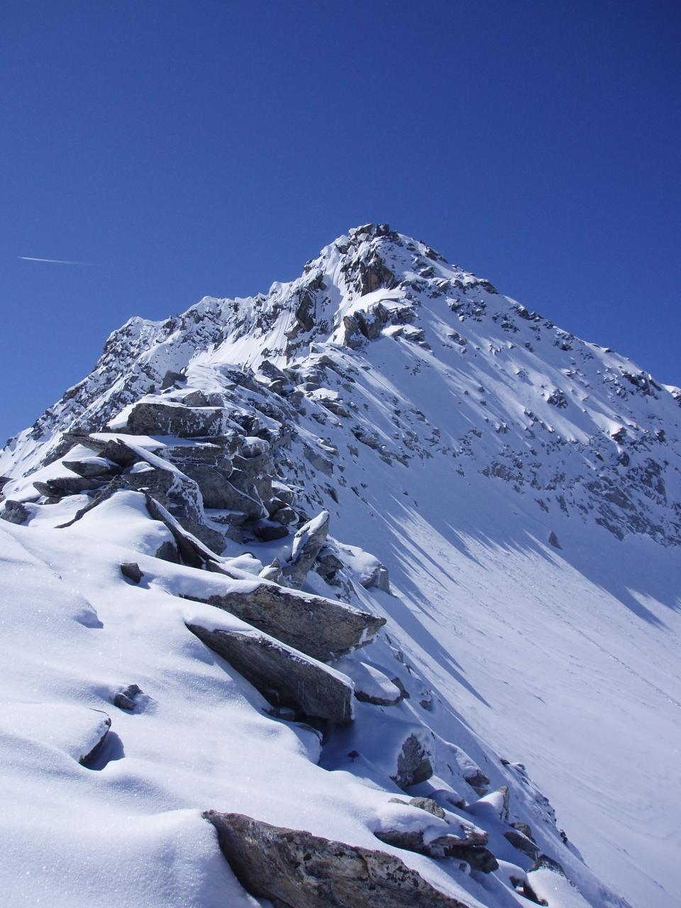 Den Gipfel selbst haben wir nicht bezwungen, da der Grat mit Neuschnee bedeckt war (Aufstieg wäre nur mit Steigeisen, teilweise Seilsicherung unter zu hohem Zeitaufwand möglich gewesen).
