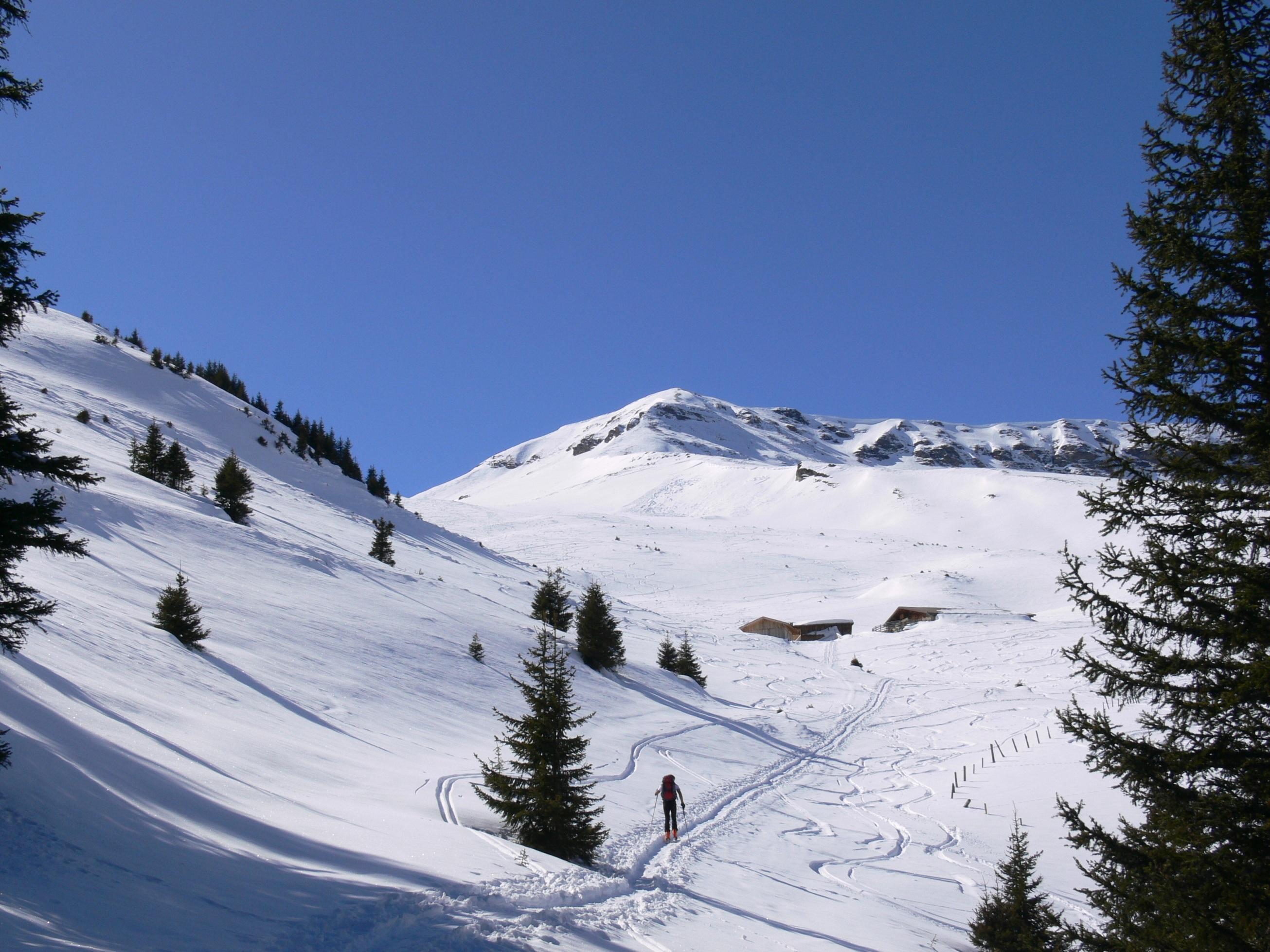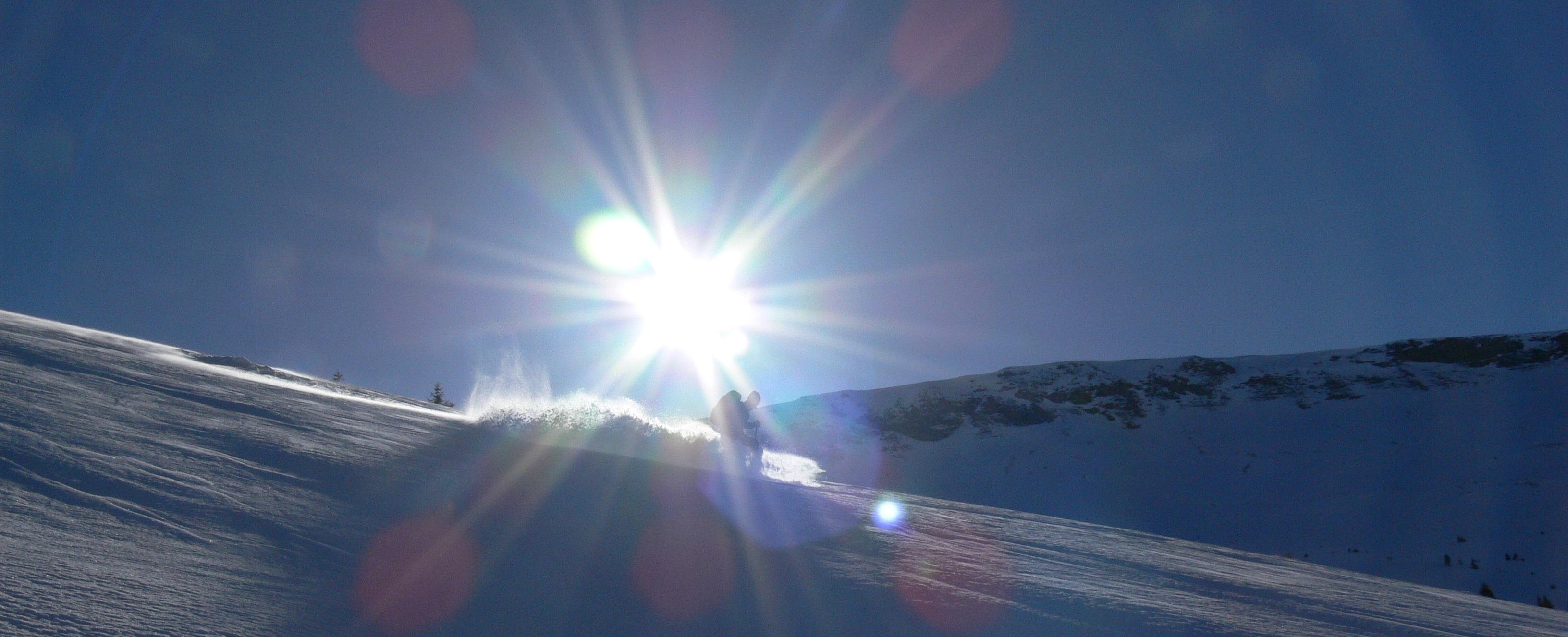 In den geschützten Waldbereichen gibt es noch überraschend viel Schnee, im freien Gelände sind die Schneehöhen jedoch deutlich geringer. Trotzdem sorgte ca. 15 cm Pulver auf einem harten Untergrund für perfekte Abfahrtsbedingungen :-)