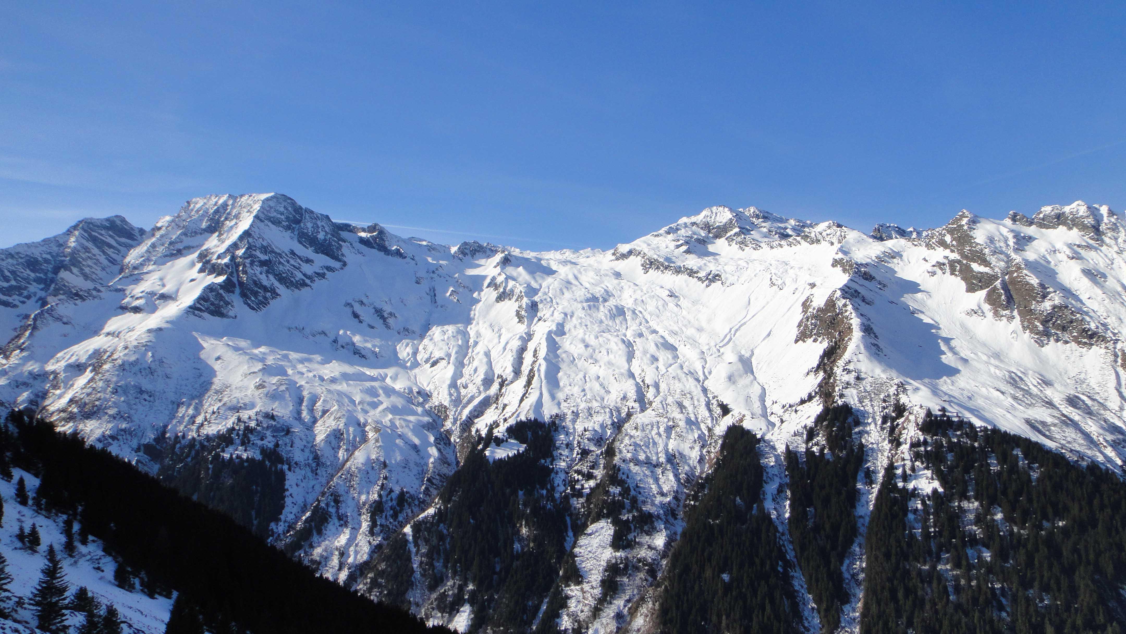 Lohnende und lange Tour für sichere Verhältnisse, 1600hm Skiabfahrt über mittelsteile Hänge und Almwiesen fast ohne Wald. Insgesamt 2100hm.