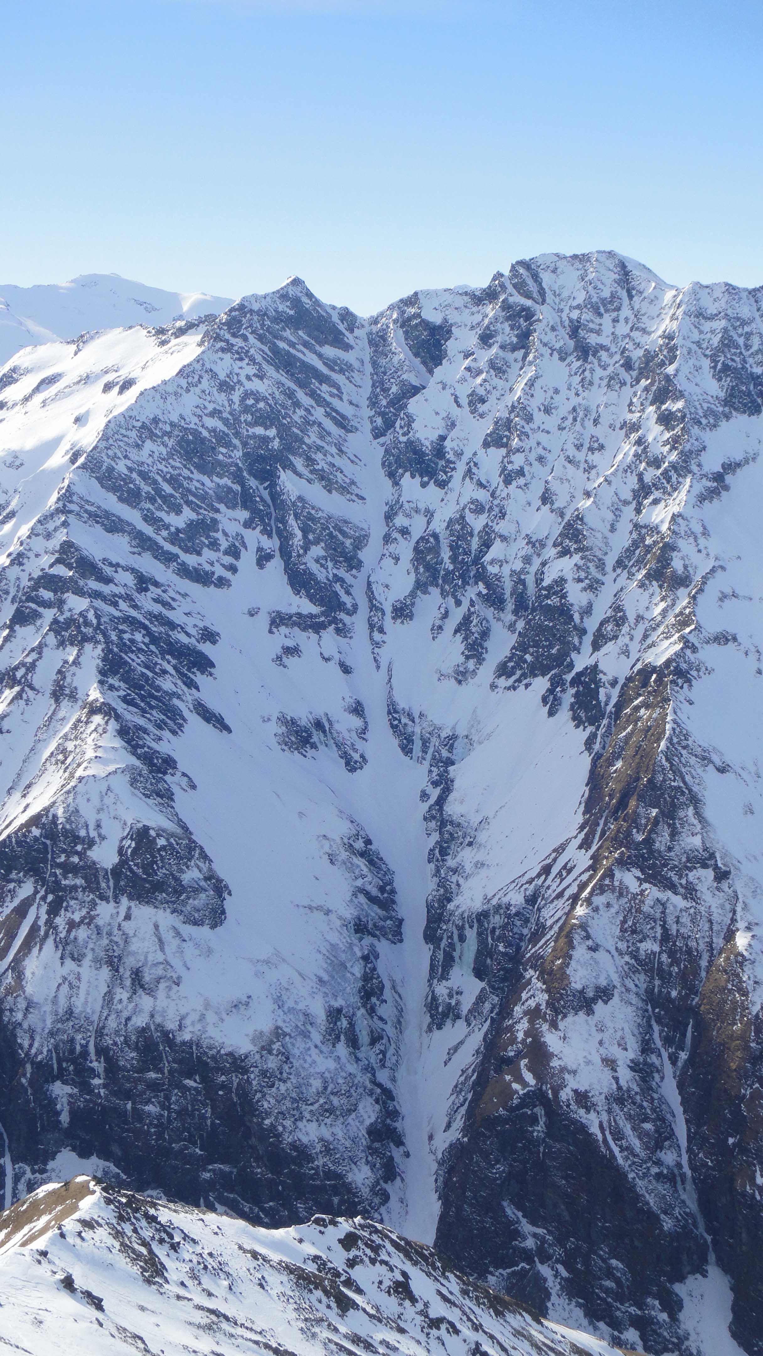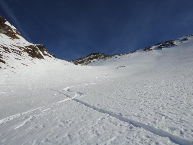 Vom Gipfel aus ist die Säullahnrinne ideal zu besichtigen.