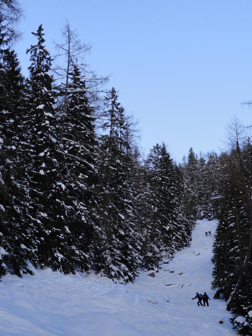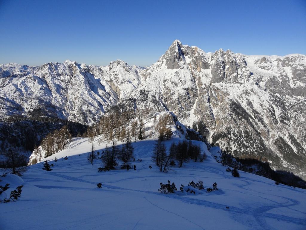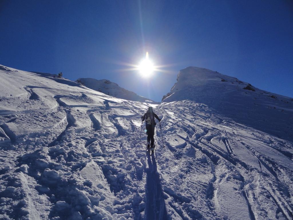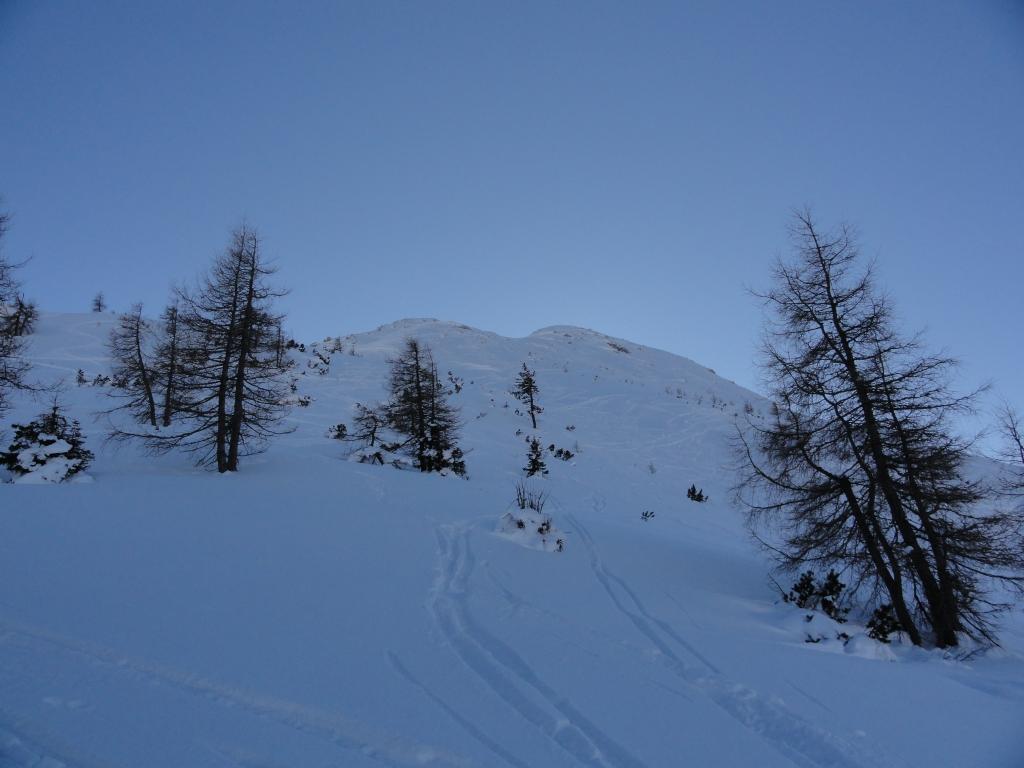 Die vielen Felsen, sowie freiliegende Latschen machten sowohl Aufstieg als auch Abfahrt (den Gipfelhang ausgeschlossen!) nicht gerade zum Vergnügen.