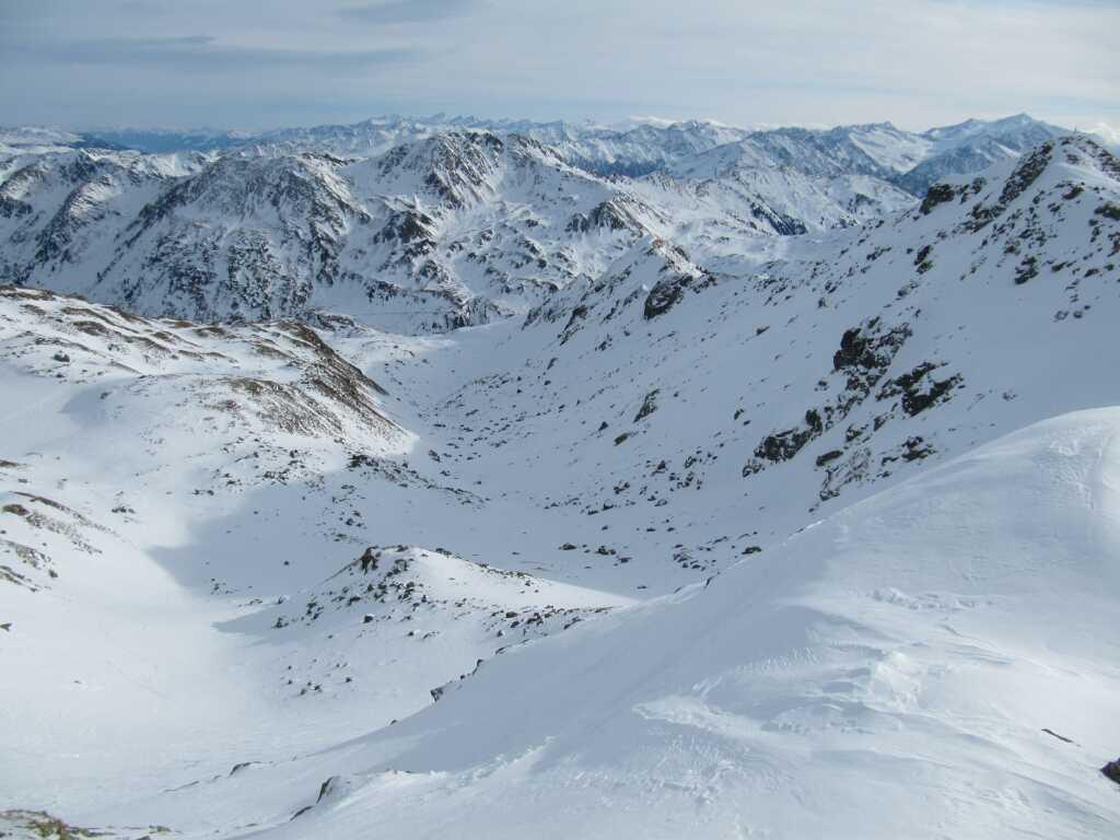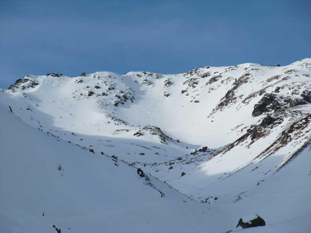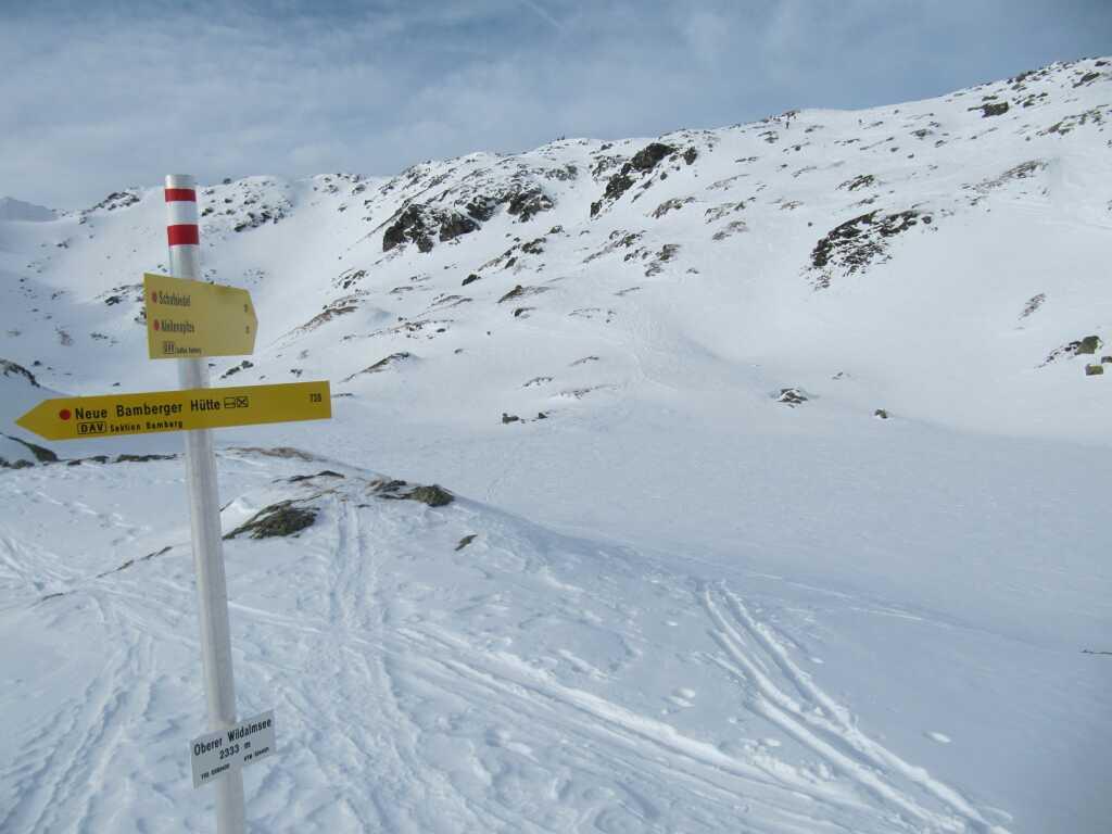 Vom Gasthaus Wegscheid (1150) im Kurzen Grund/Kelchsau gings heute über die Neue Bamberger Hütte (1761) auf den Schafsiedel (2447). Der Aufstieg erfolgte über den Sommerweg, der noch ausreichend schneebedeckt war, ab ca. 1300m trifft man dann wieder auf den Fahrweg, der zur Hütte führt. Oben ist es z.T. stark verblasen (vor allem die NW-Seiten von Kröndlhorn u. Tristkopf), der Schafsiedel war deutlich weniger betroffen, trotzdem war auch hier der Schnee an manchen Stellen gerade noch ausreichend. Schneequalität: bis Bamberger Hütte auf Fahrweg noch genügend eingefahrener Schnee; oberhalb der Hütte Wechselschnee (tragfähiger Harsch, Bruchharsch, windverpresst, wenig Pulverschnee in den Schattseiten); insgesamt war die Abfahrt bzgl. Schneequalität nicht gerade berauschend, aber noch gut machbar; keine Steinkontakte.