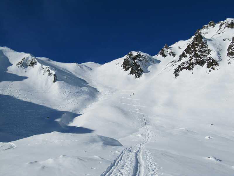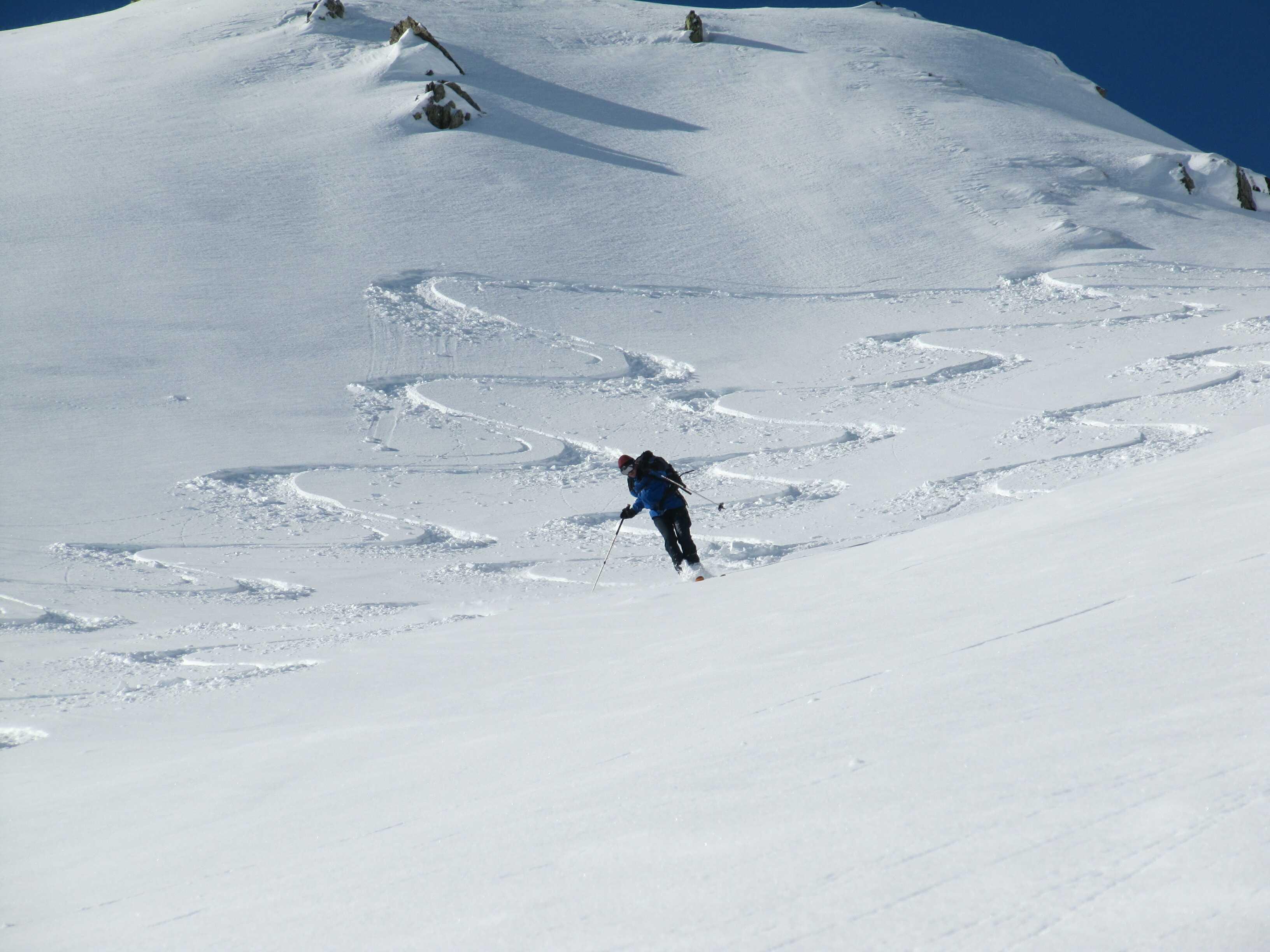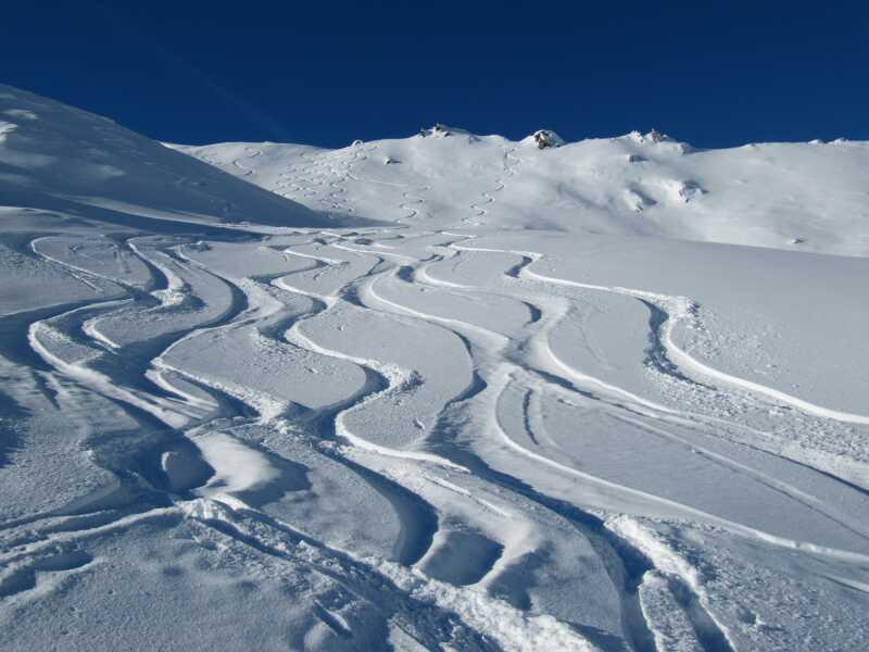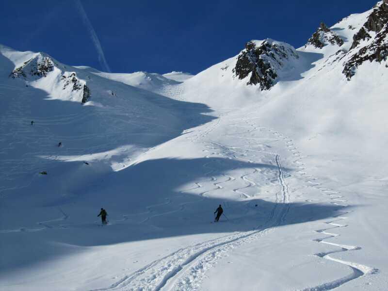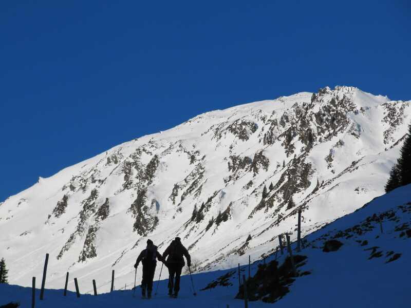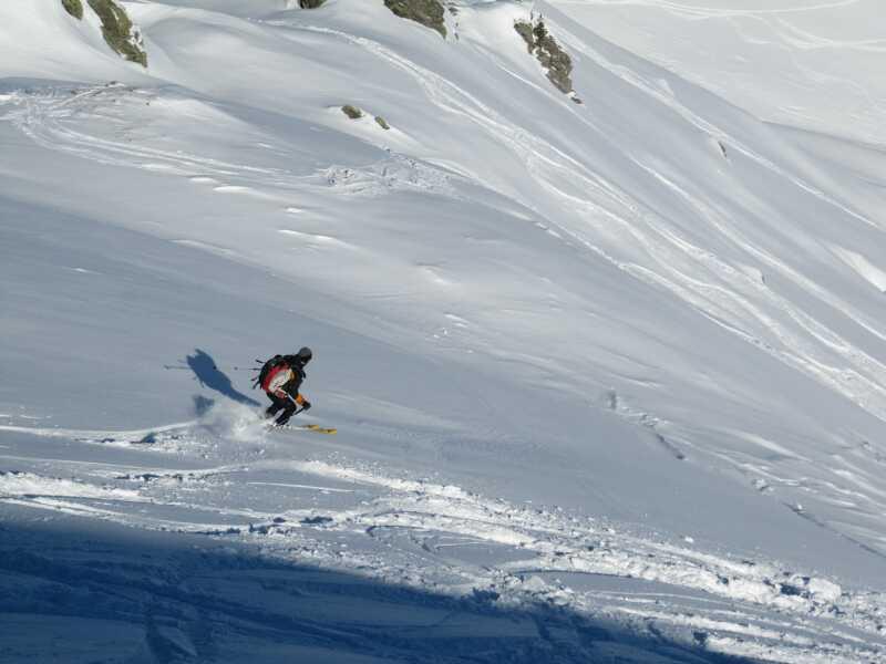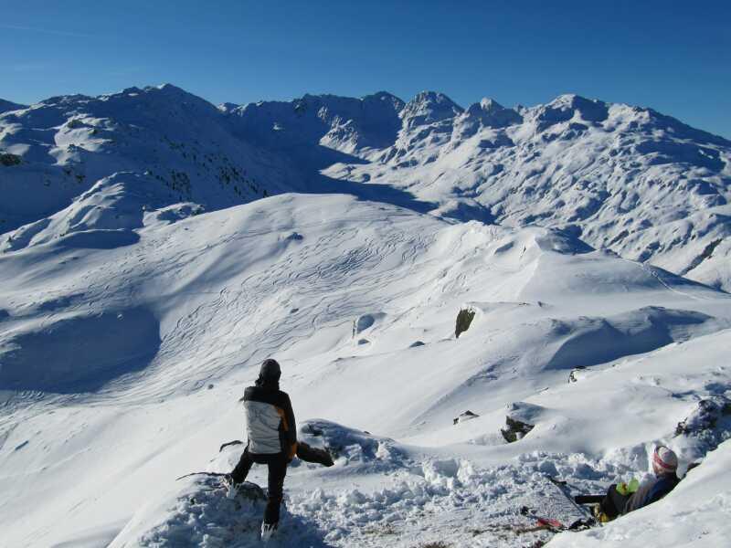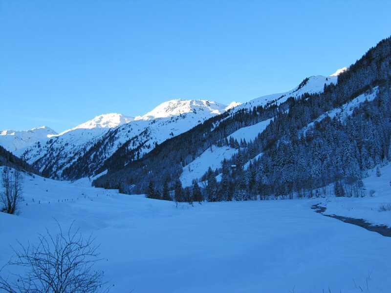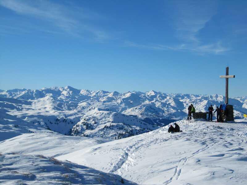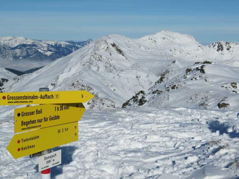Bei -10°C von der Erlahütte (1213) im Langen Grund/Kelchsau zum Niederjochkogel (2146) und Sonnenjoch (2287) gestartet. Schnee im Tal ca. 50cm (davon ca. 10-15cm Pulverauflage), der Hang zur Neubergalm (1613) hatte deutlich weniger Schnee, aber ausreichend um ohne Steinkontakt abzufahren (gut eingefahren), oberhalb Neubergalm dann wieder genügend Schnee mit 10-20cm Pulverauflage, sonnseitig leichter Harschdeckel, der aber durch die Tageserwärmung wieder verschwand.
