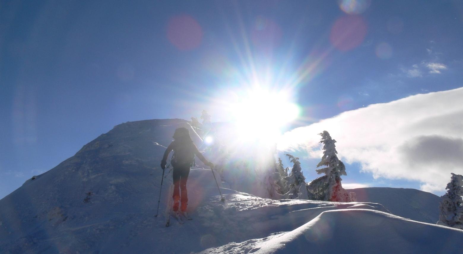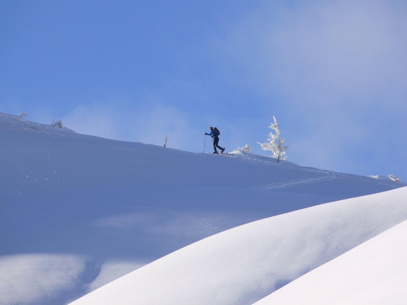 Beim Aufbruch um 11.30h hatte es immerhin noch -8°C, bis zur Marbacher Höhe perfekte Aufstiegsbedingungen, am Gipfelgrat eisigster Wind!! Daher gibt es kein Gipfelfoto und auch keine Abfahrtsbilder – der Akku meines Fotoapparates hätte schon mitgespielt, aber meine Finger ganz und gar nicht …
