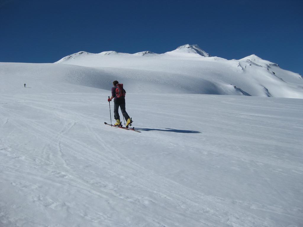 Kurz nach dem Parkplatz Enzianhütte im hintersten Martelltal kann man die Ski anschnallen. Der nordseitige Anstieg führt über recht steile Felsstufen auf den flachen Schranferner. Der wird im großen Rechtsbogen zur Scharte östlich der Veneziaspitze überschritten. Ein kurzer steiler Firngrat führt zum überwechteten Gipfel.