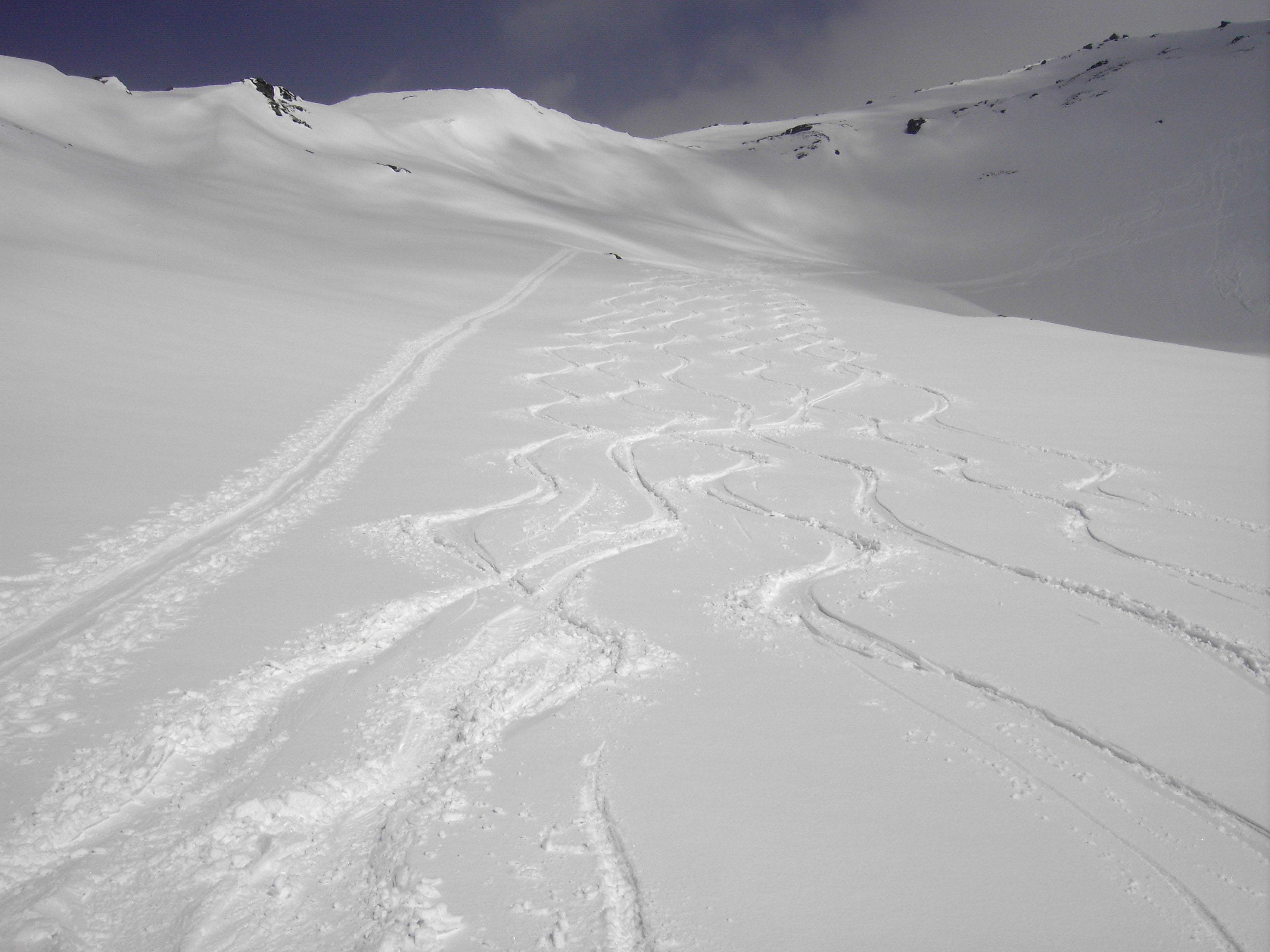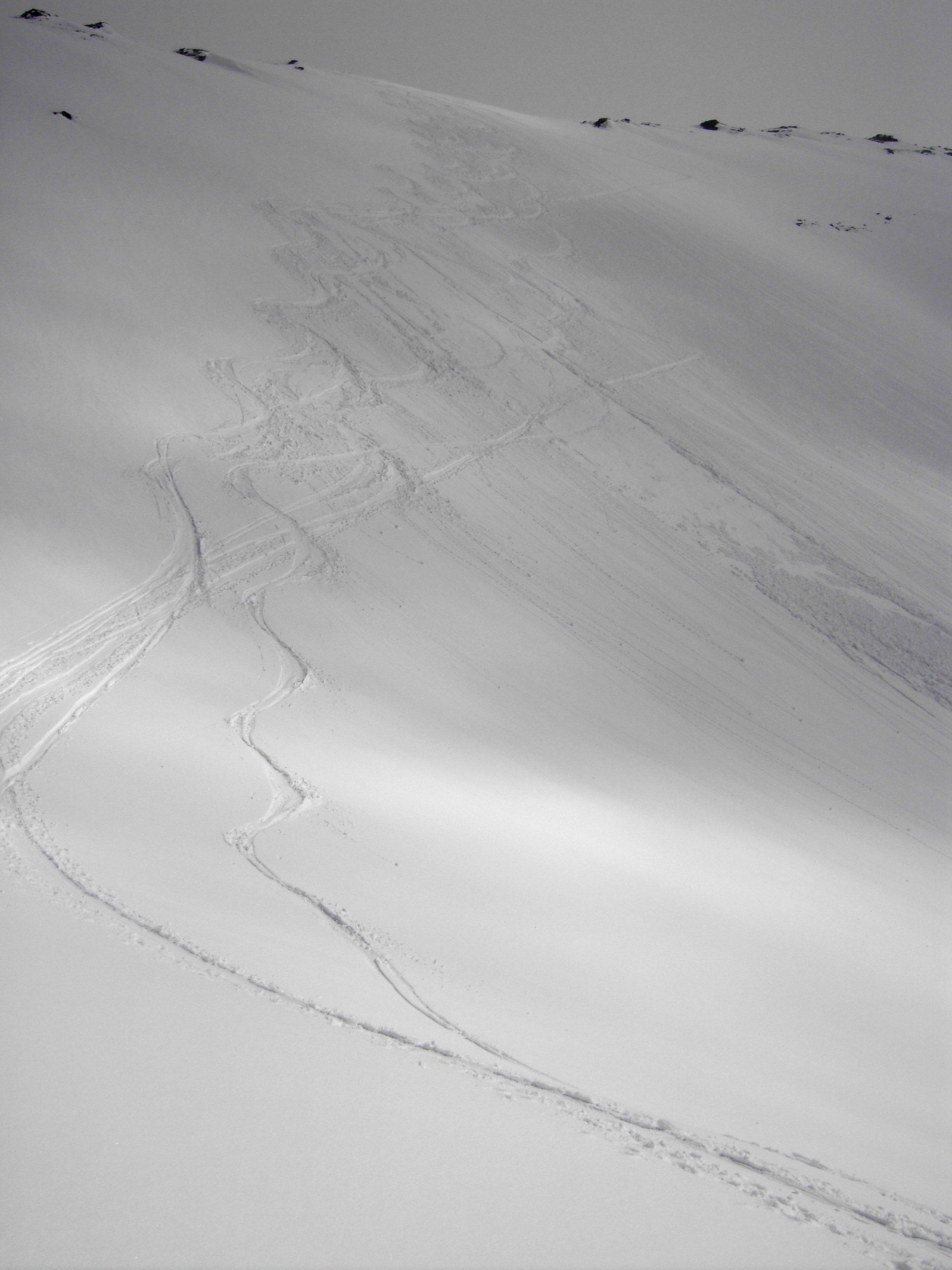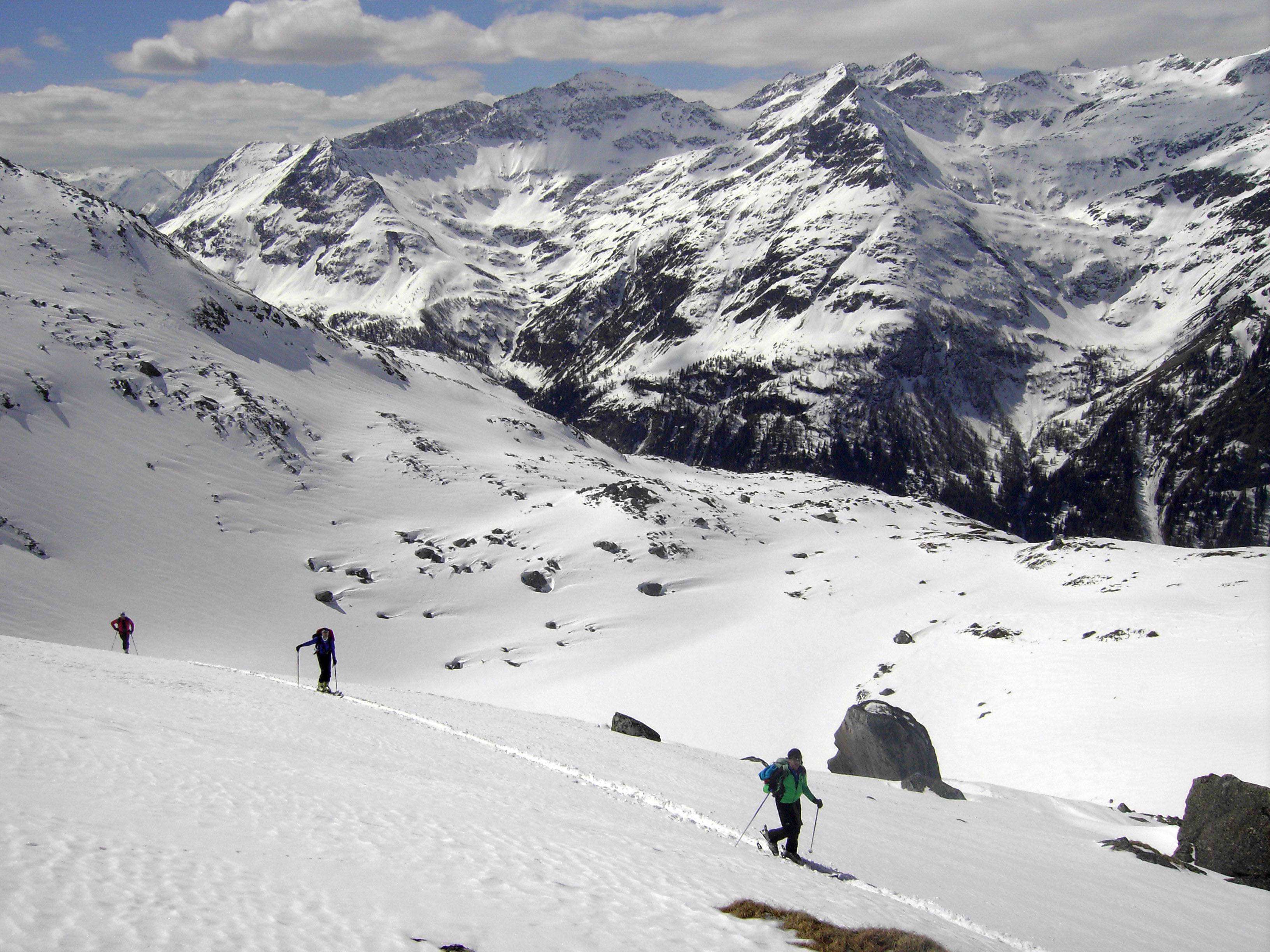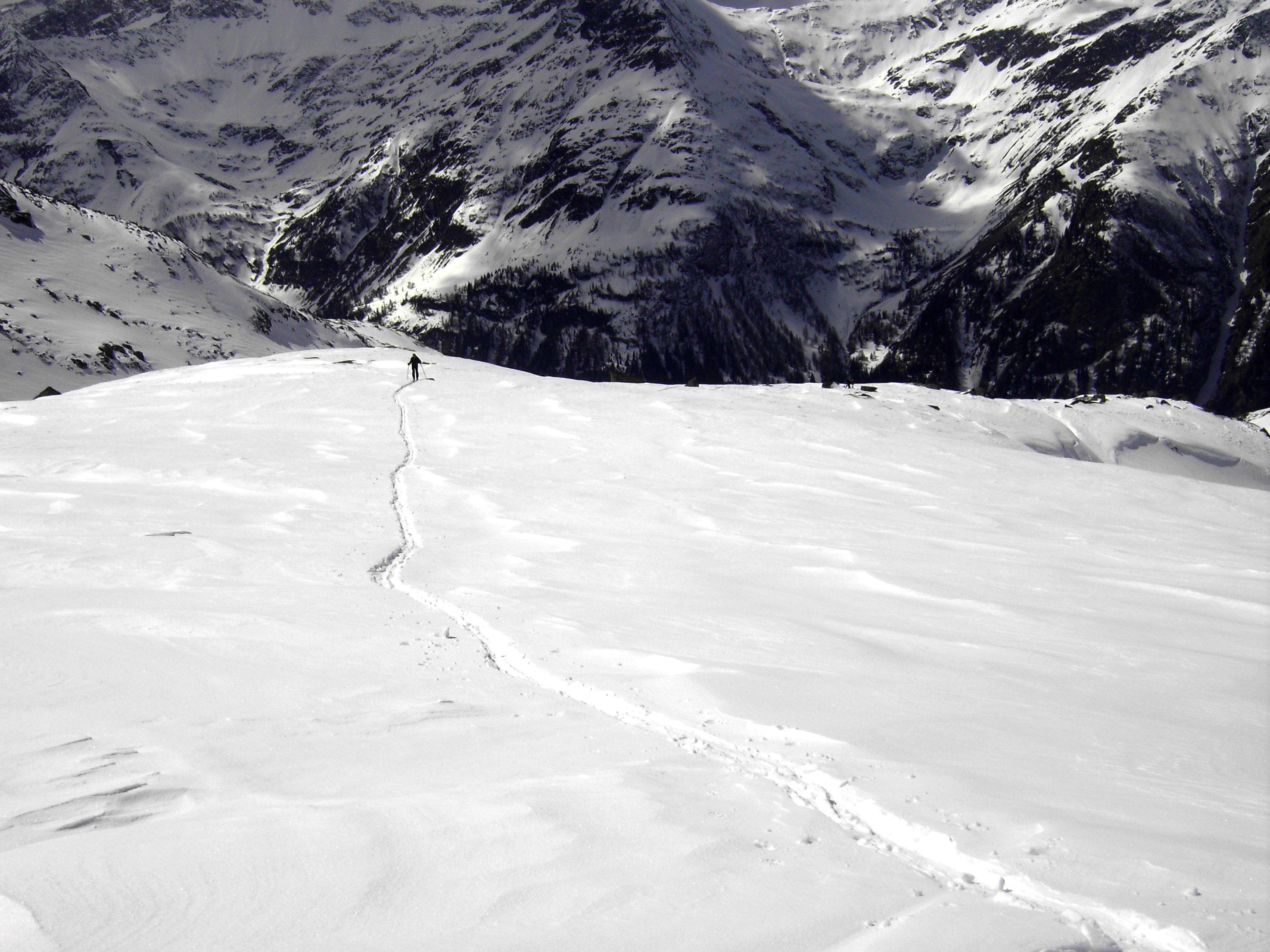 Vom Südportal des Felbertauerntunnels sind die Schi ca. 150 Höhenmeter zu tragen. Ab hier noch sehr gute Verhältnisse - oben Pulver, unten Firn