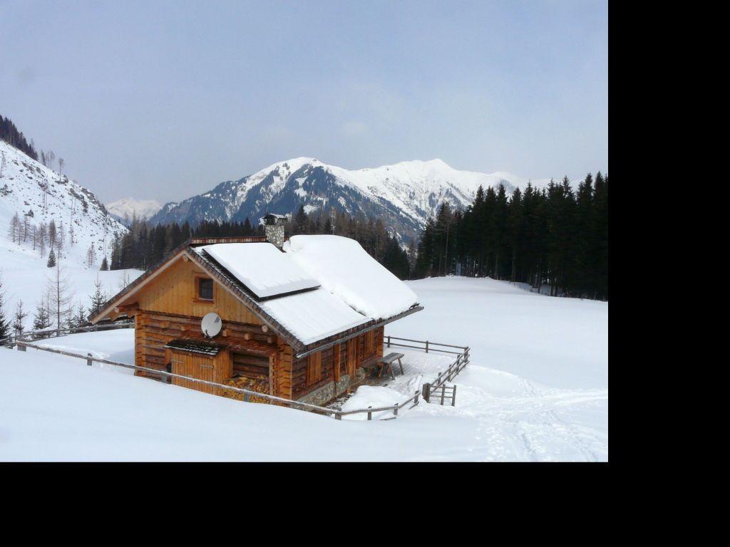 Außer einigen Schneeschuhgehern im Bereich der Alm menschenleer.