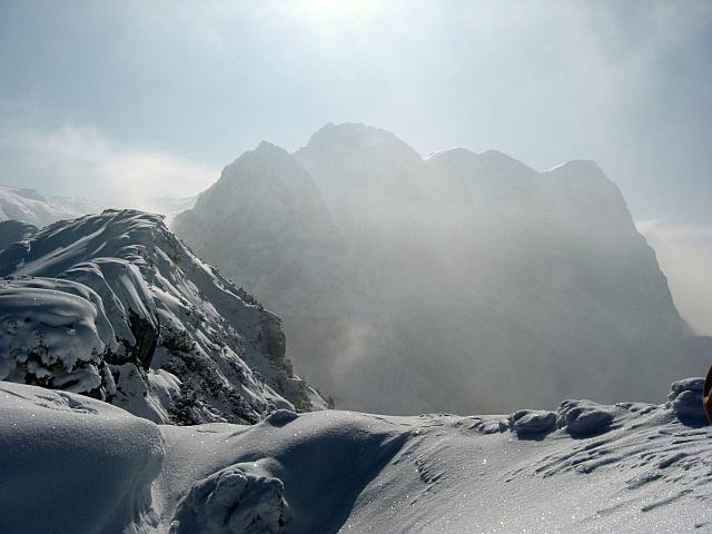 Richtung Wieselsteine waren ebenfalls Spuren vorhanden, von der Ofenrinne zum Niedertörl unserer Einschätzung nach noch eine relativ geringe Schneelage. Die Gipfel ziemlich abgeblasen.