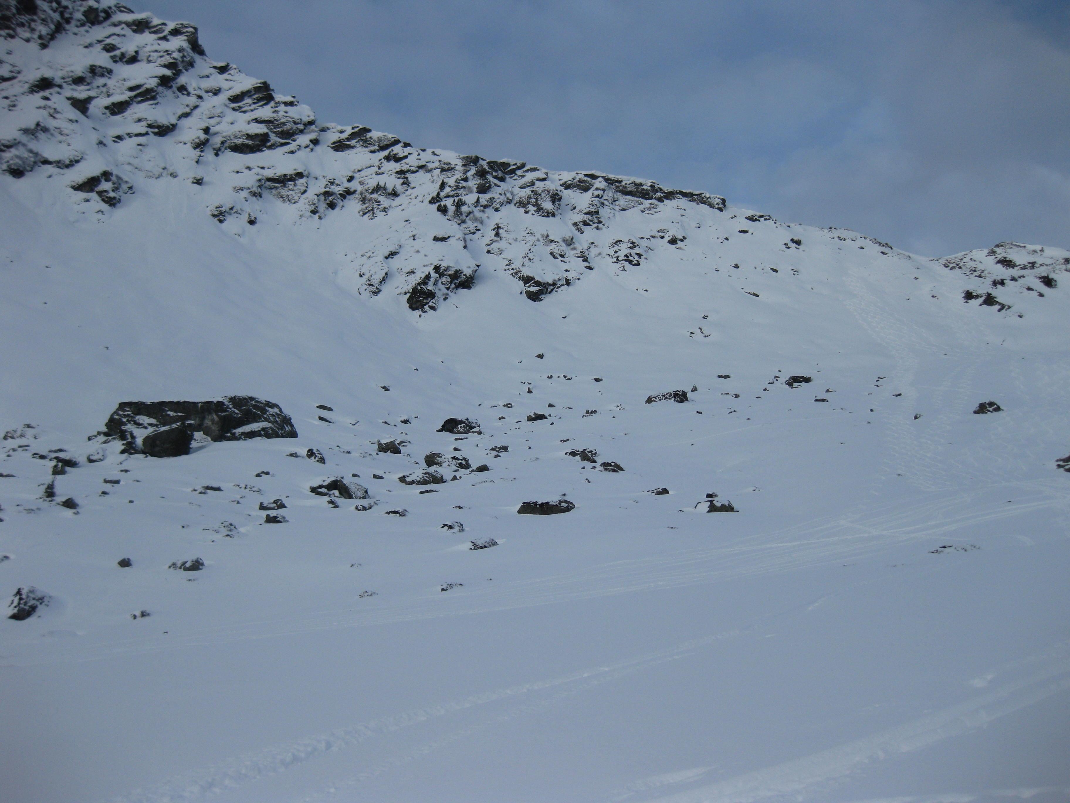 Abfahrt in den Henlabgraben bis auf 1400m, dann weiter auf Forstweg.