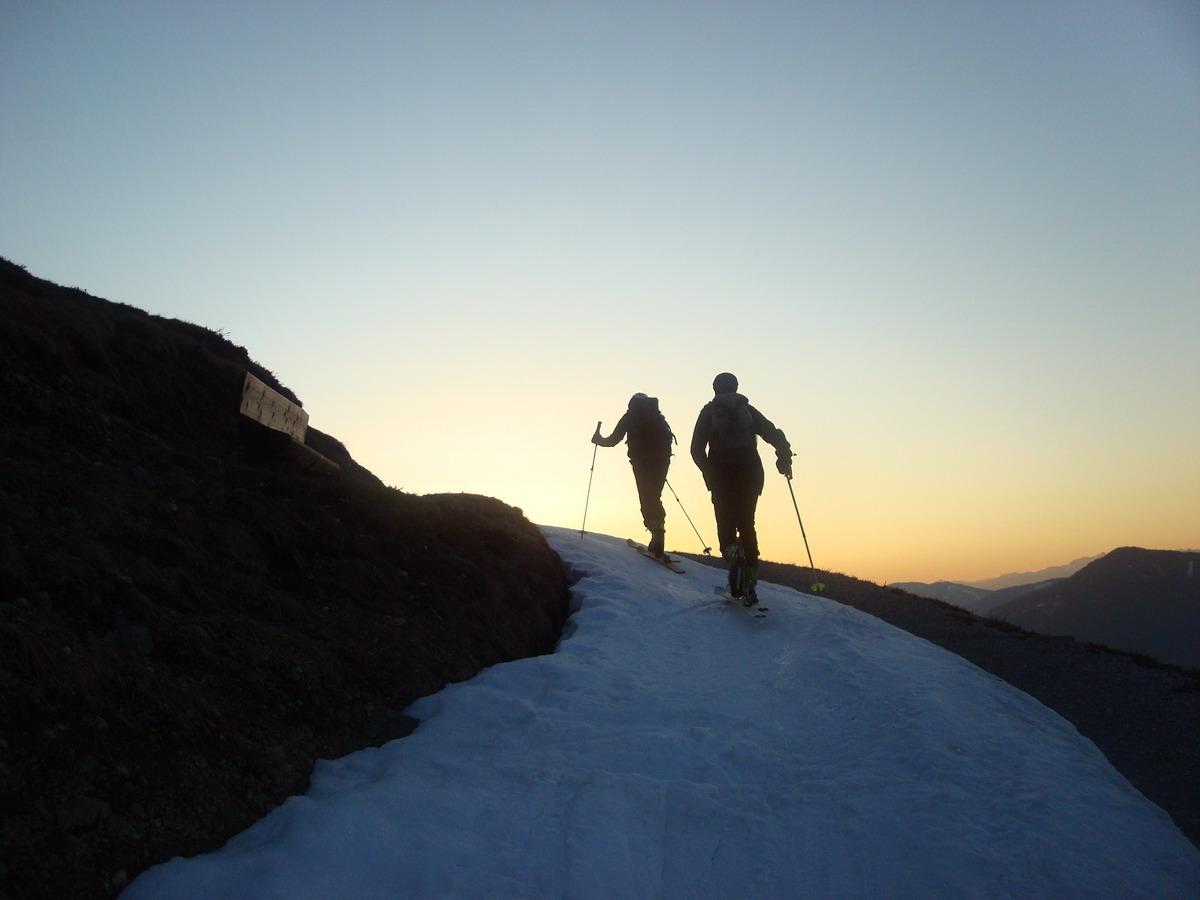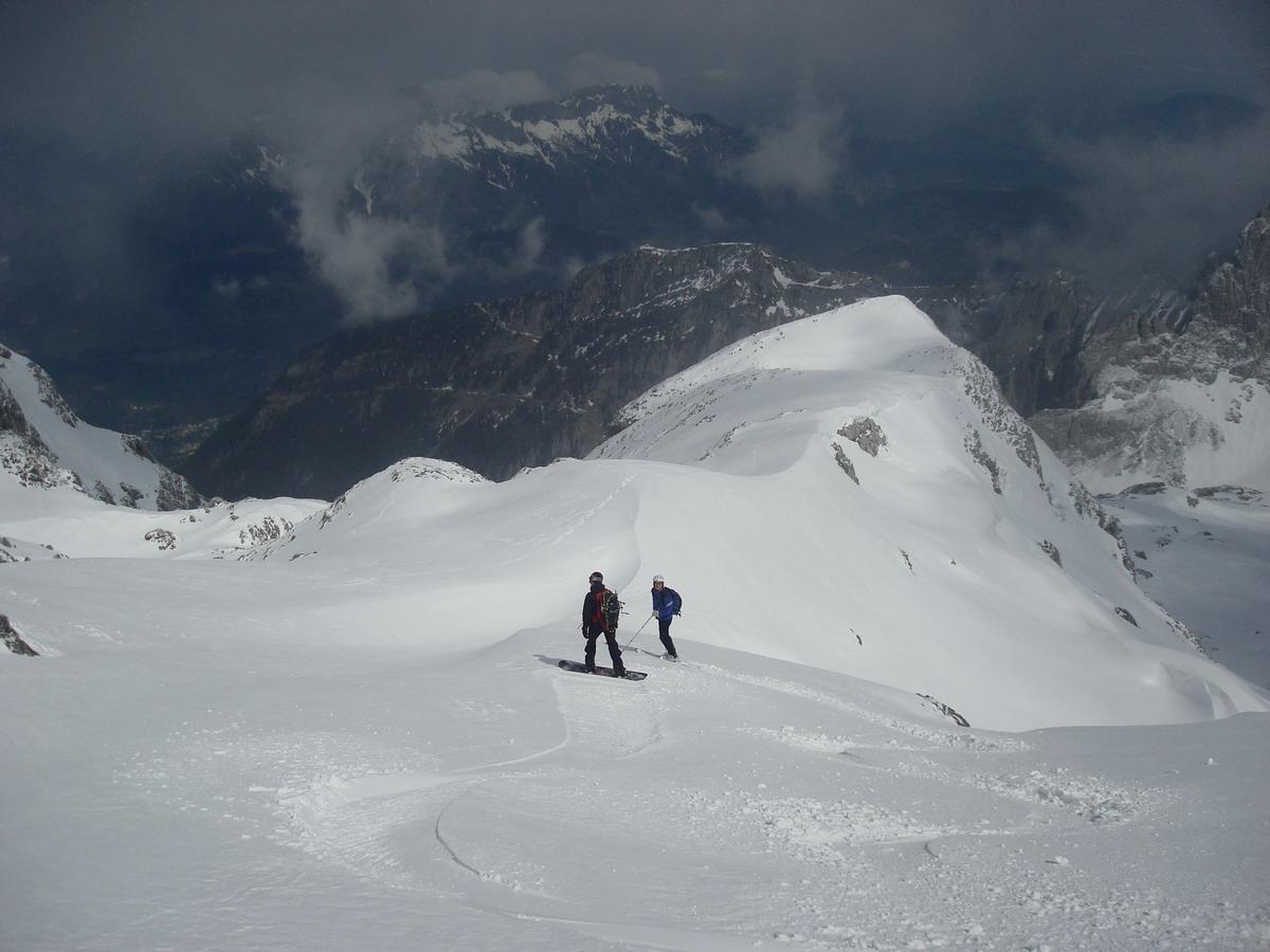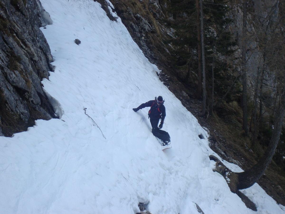 Problemloses Schitragen bis ca.50 HM oberhalb der seilversicherten Querung, danach harte Buckelpiste mit zarter Neuschneeauflage bis in die stürmischen Umgäng. Der Aufstieg von den Umgäng zum Hohen Brett war zwar teilweise eingeweht, aber die Neuschneemenge war relativ gering.