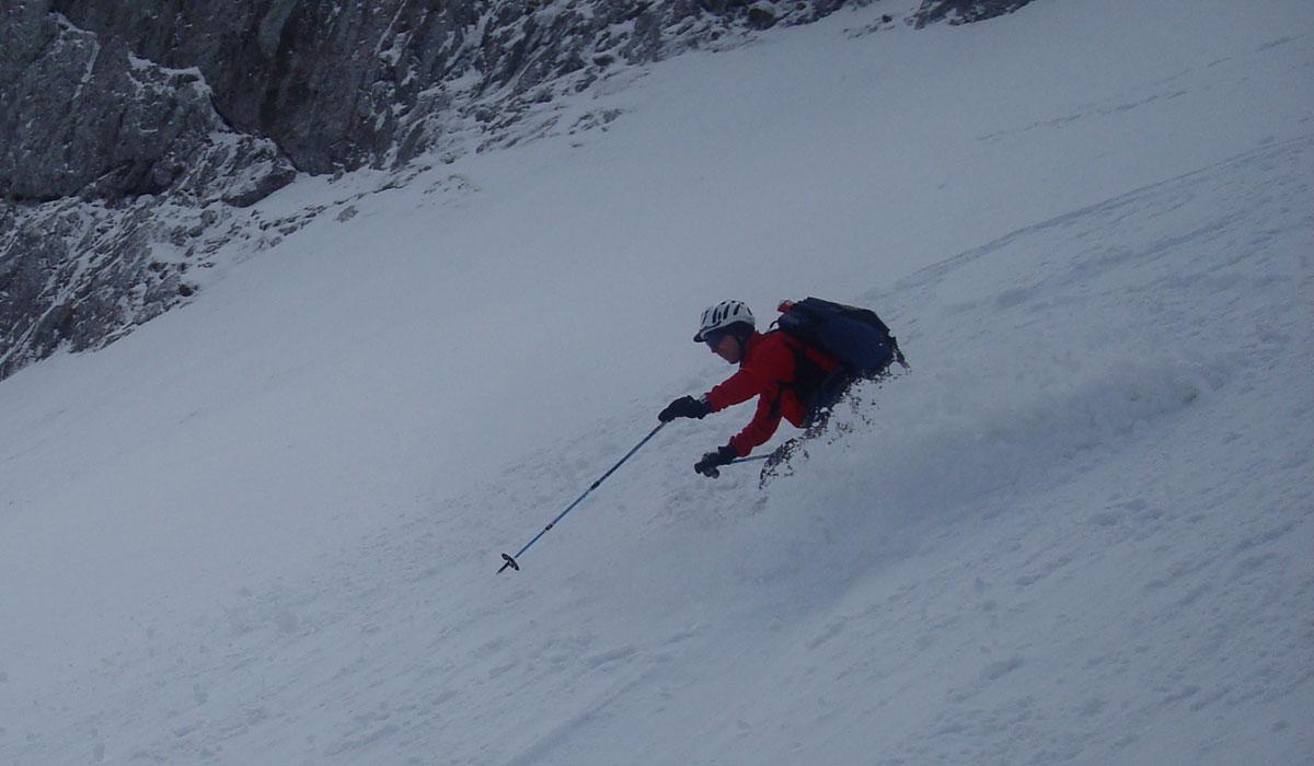 Gut durchgefrorene Schneedecke nach klarer Nacht; Weg zur Mitterfeldalm teilweise aper; Steinschlaggefahr aufgrund eines Felssturzes bei der Gaisnase beachten; optimale Abfahrtsbedingungen zwischen 10.00 h und 12.00 h