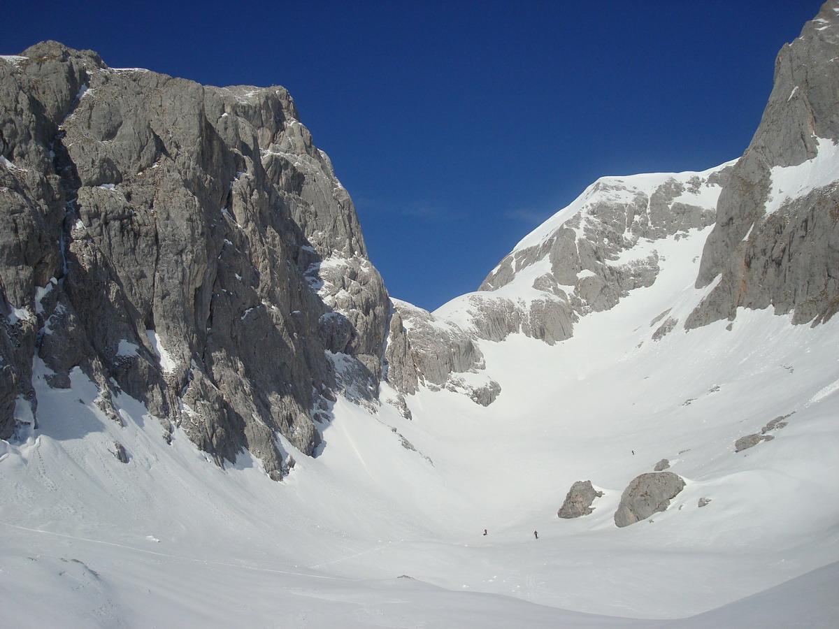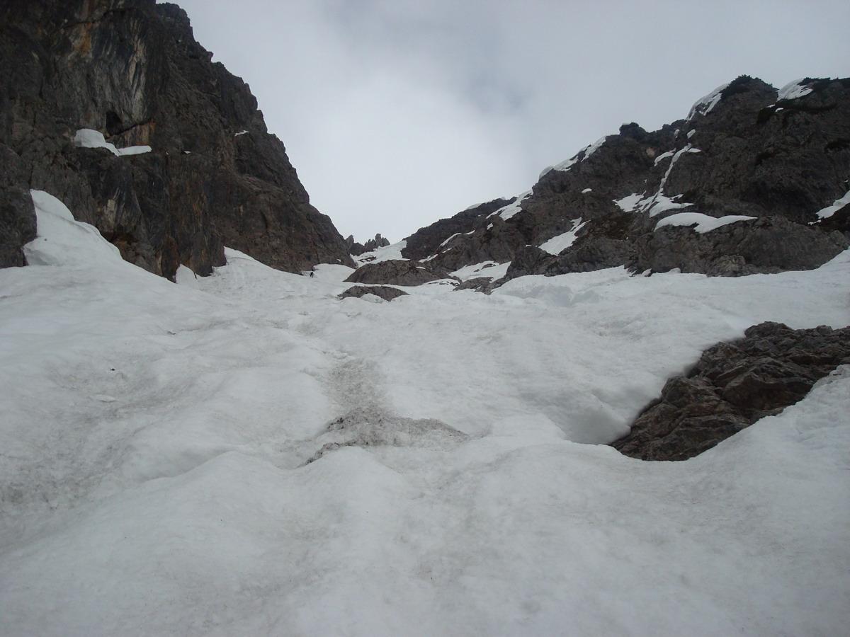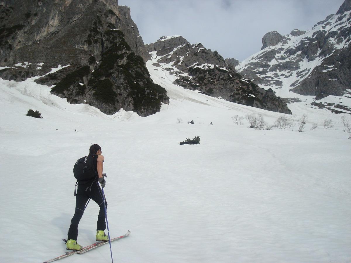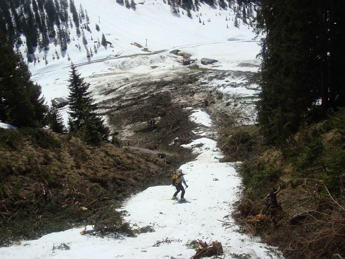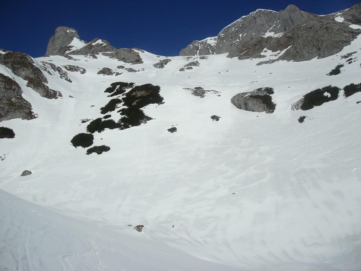 Verhältnisse im Birgkar/unterer Abschnitt und Seitenrinnen (26.4.):