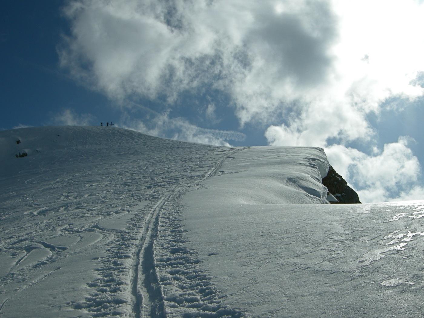 Das Nordwestkar hat leider noch Bruchharsch, und als Ausweichmöglichkeit Naßschneelawinenfelder.