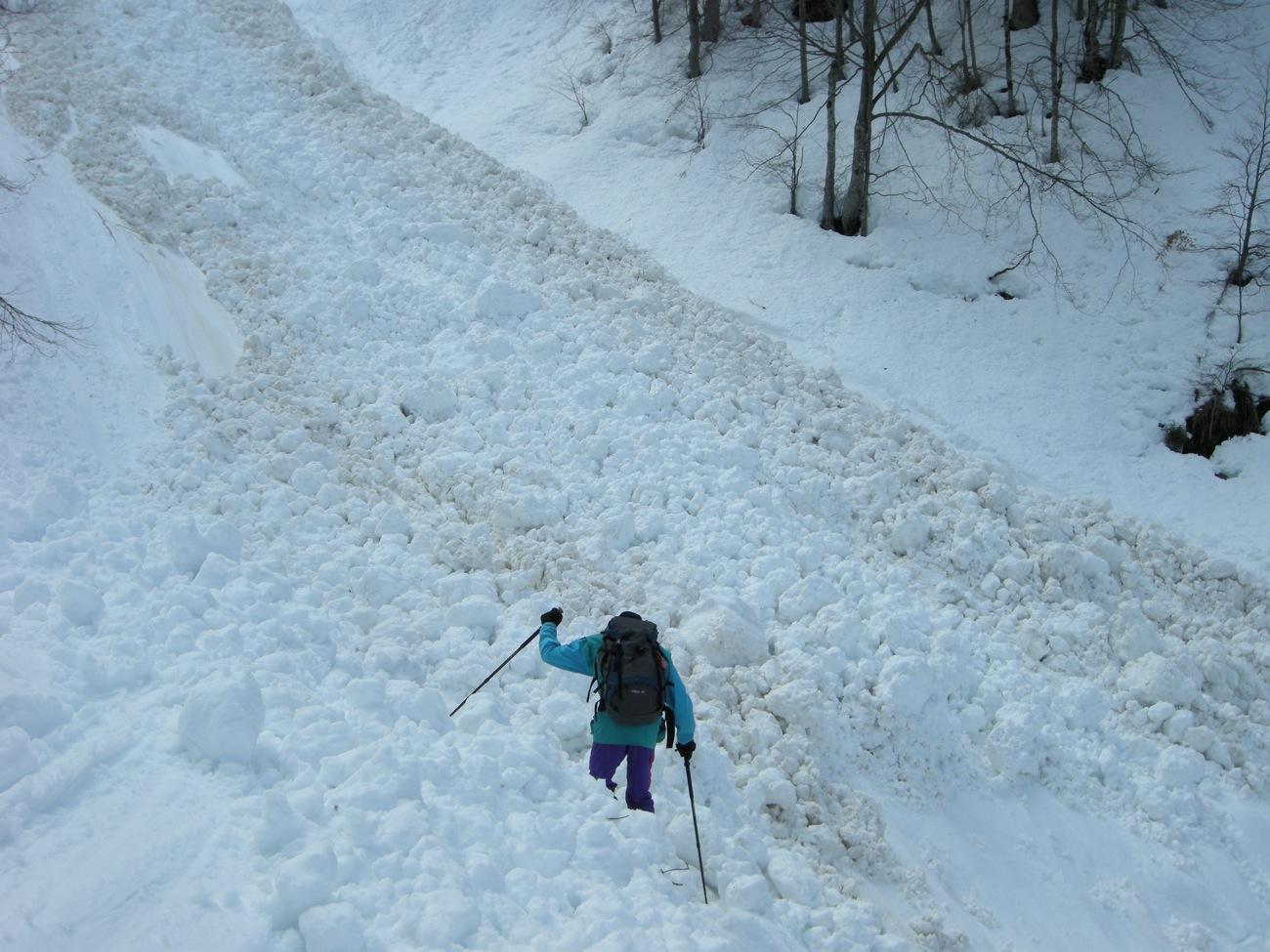 Nichts ist sicher: Sogar der Weg zu den Kallbrunnalmen ist von einem großen Schneerutsch überflossen worden, und das wahrscheinlich schon vor 12 Uhr mittags.