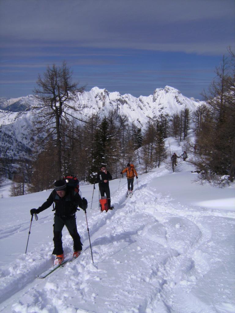 Gemeinschaftstour des DAV Tittmoning aufs Vorderberghörndl. Beste Verhältnisse vom Parkplatz bis Gipfel. Die Steilrinne im Wald pistenmäßig eingefahren, im Lärchenwald sowie am Gipfelhang jede Menge Neuschnee (geschätzt bis ca. 40 cm), keine Lawinenabgänge. Sittersbachtal wurde ebenfalls begangen, zwei einsame Abfahrtsspuren von Könnern am Steintalhörndl