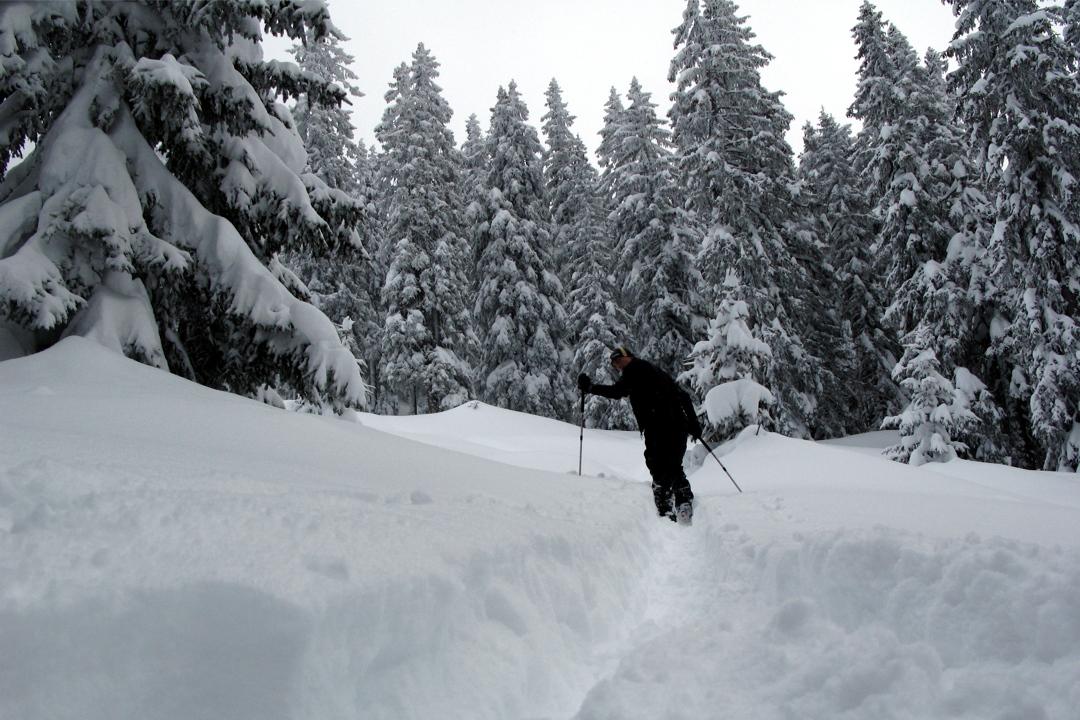 aufgrund des Geländes und der Schneemenge großteils nur in der Aufstiegsspur möglich